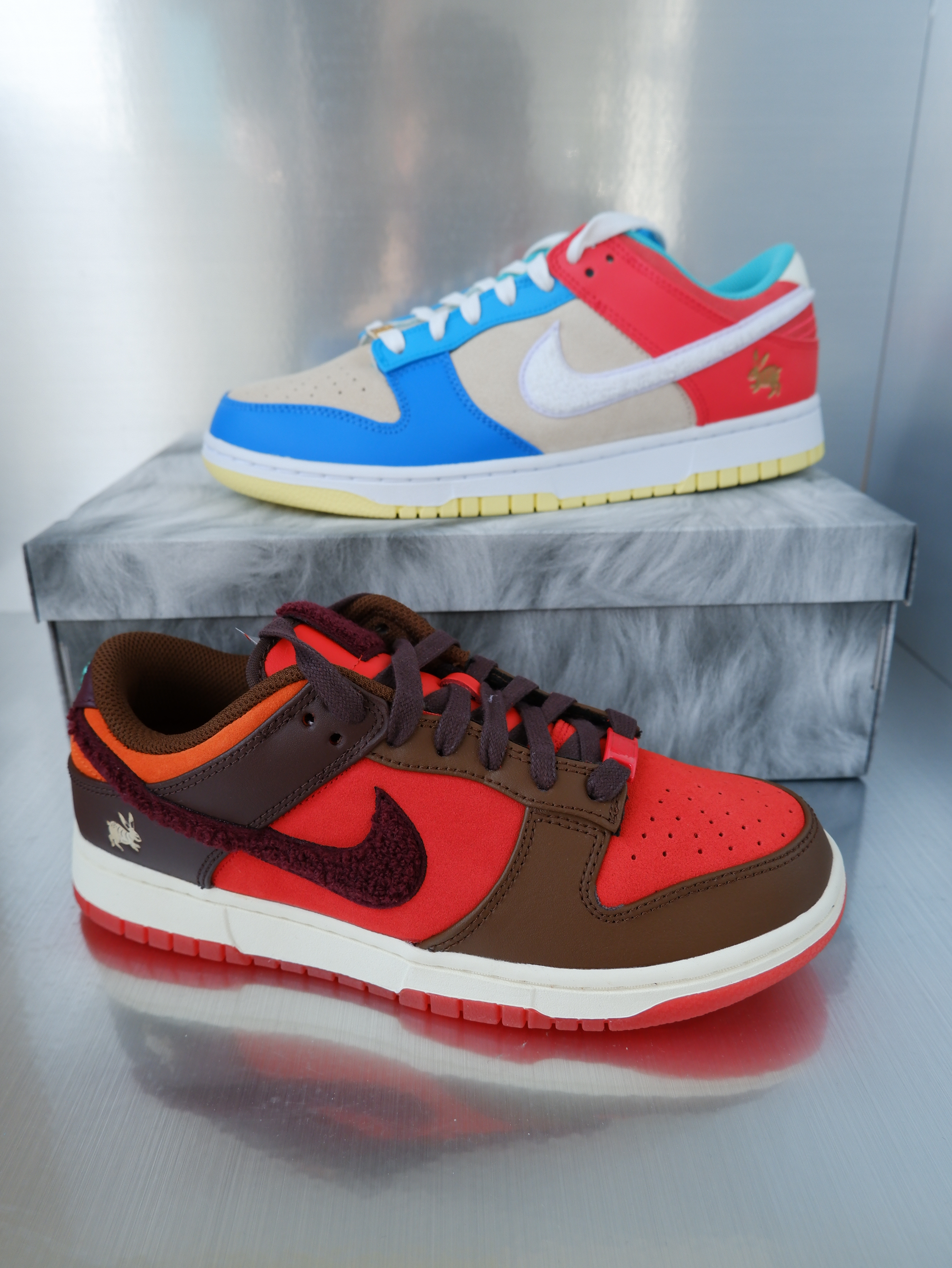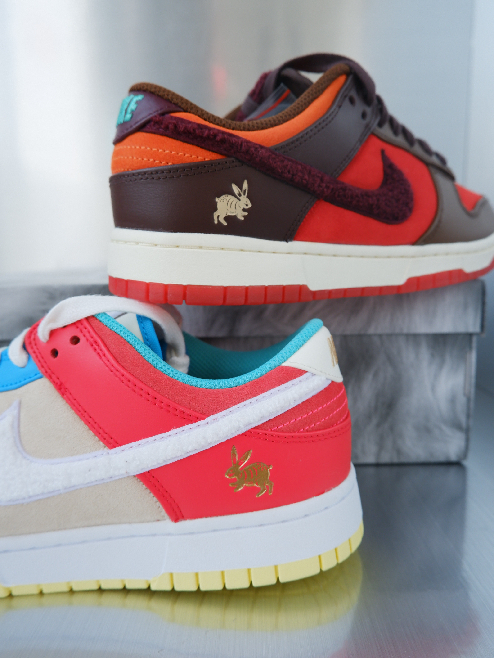 👟:dunk low 兔年限定 橙棕色 “川兔”采用配色浓烈的橙色与棕色交叠打造,以绒面革面料呈现橙色基底,搭配棕色覆盖层并一路延伸至鞋带、Swoosh 及鞋舌标签同步沿用雪尼尔面料呼应兔子的毛茸茸外观,并搭配复古泛黄中底及半透明橙色大底。另外还有 Tiffany Blue 的 Nike Logo 凸显配色对比,最后则提供双色鞋带及专属纪念鞋盒,别具兔年特殊意涵。 👟:dunk low 兔年限定...
