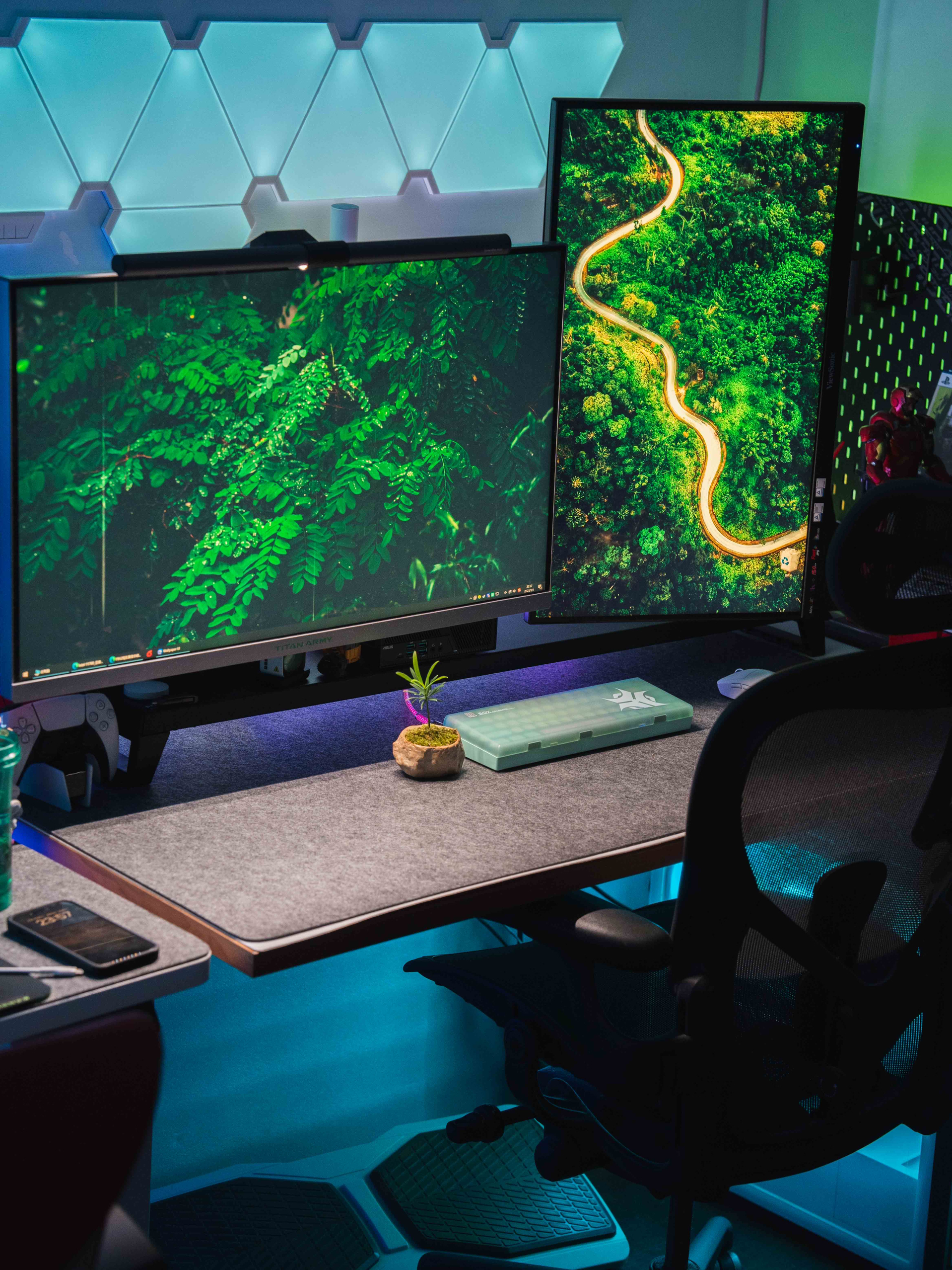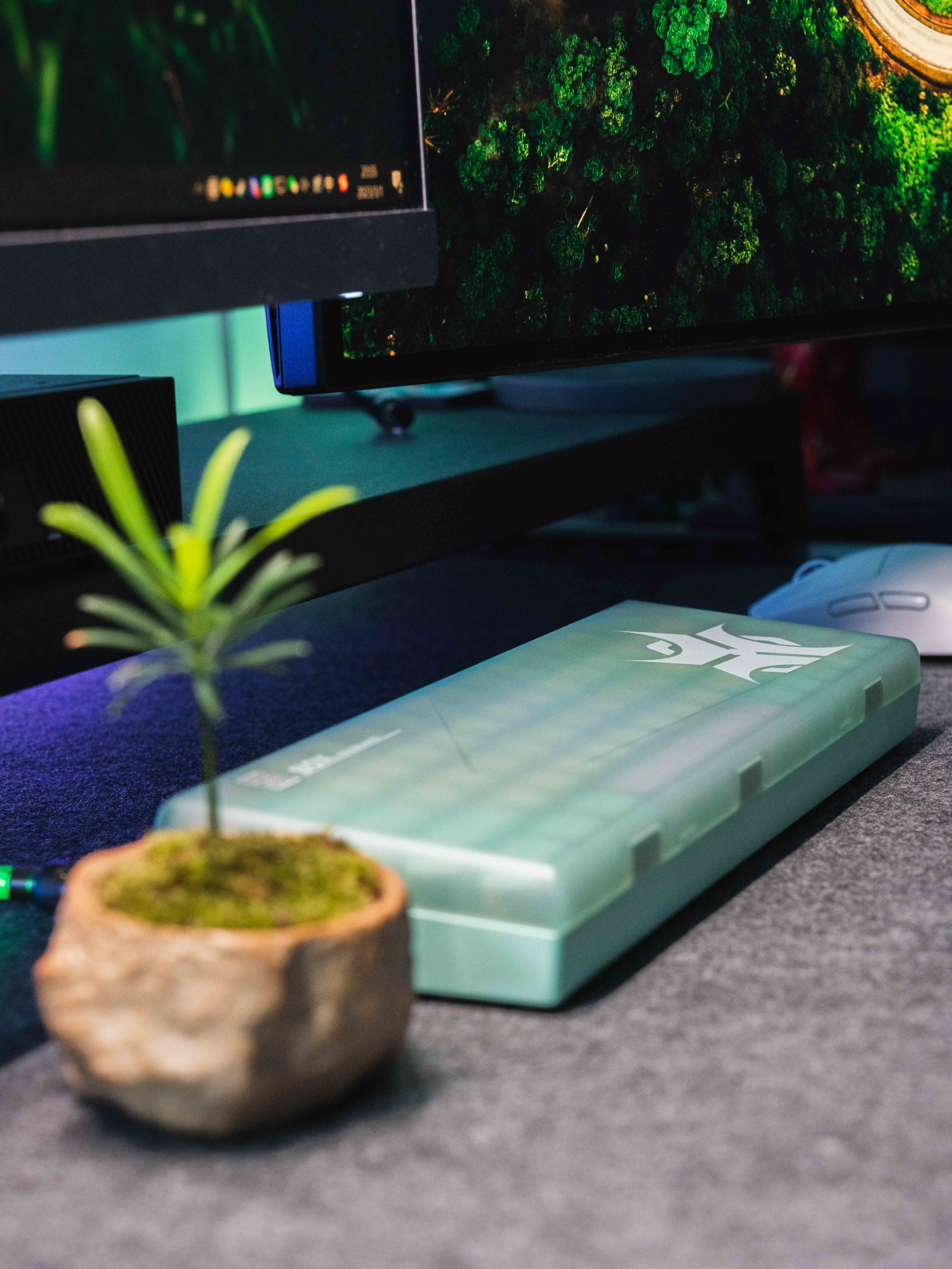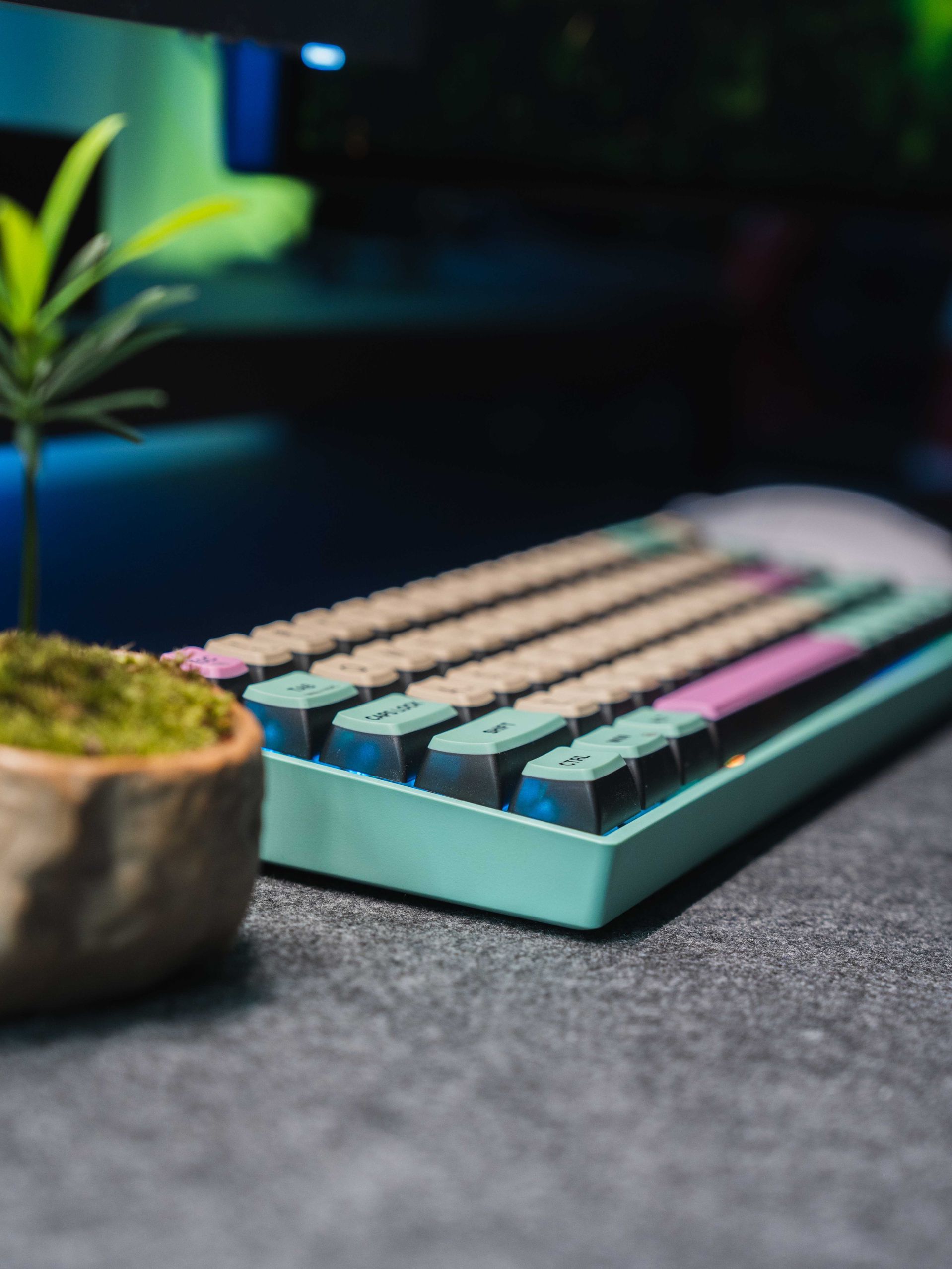 - 🔌桌搭就是折腾氛围 虽然很多桌搭玩家都用蓝紫色调,但蓝光看久了对眼睛有伤害,当然从灯光本身来说绿色也不一定健康,不过每晚在RGB氛围下游玩、办公、学习真的很快乐啊,一回家坐到半夜两点都不累。 桌搭的意义就是搭建一个放松解压或是高效办公的环境,有灯无灯,什么颜色,各种搭配,只要自己喜欢就好。 . 🔌心血来潮买了颗植物和蓝绿色键盘 偶然机会买到一颗小植物,突然觉得桌面上有一抹绿好可爱,恰好手边还一...