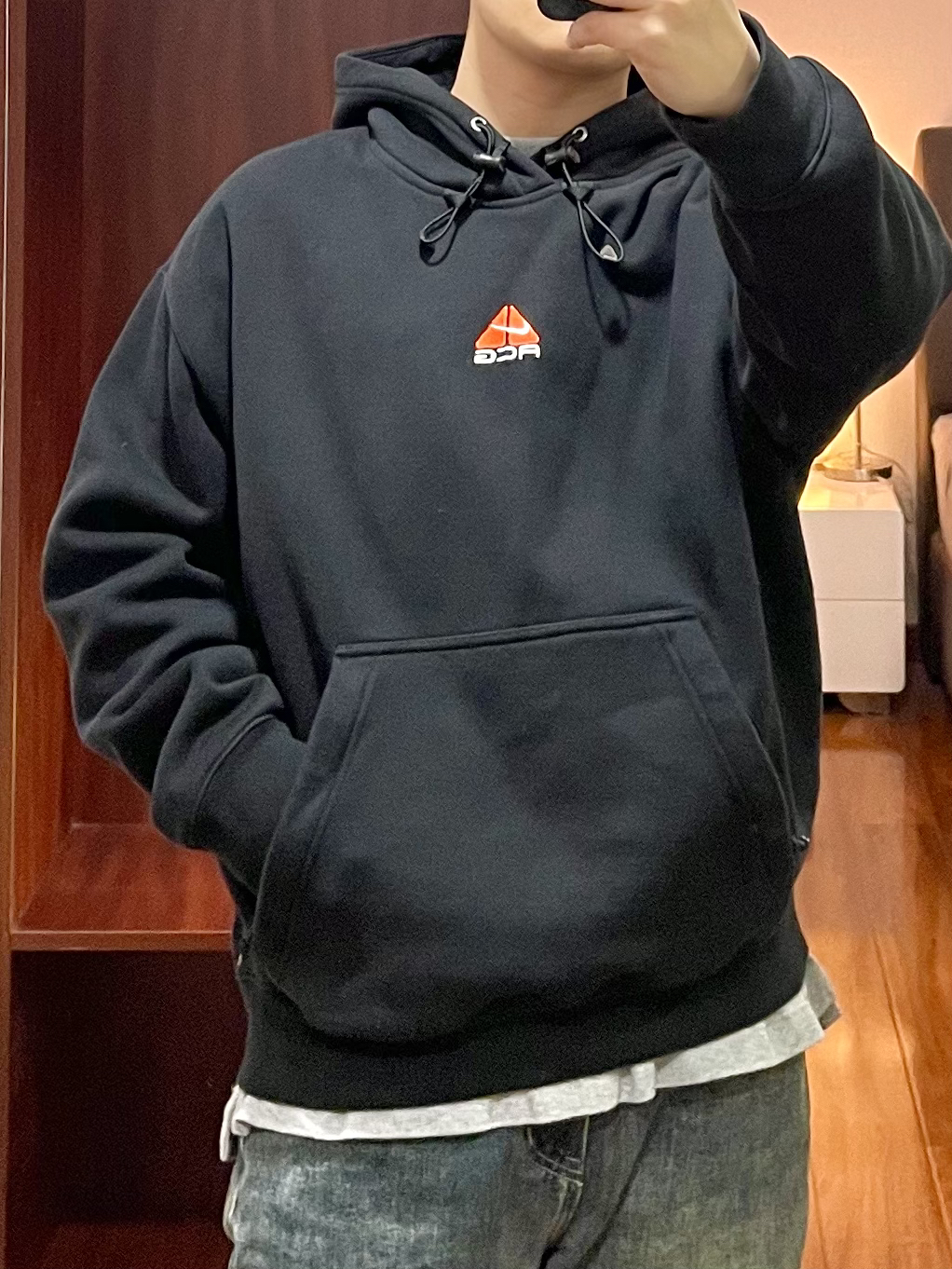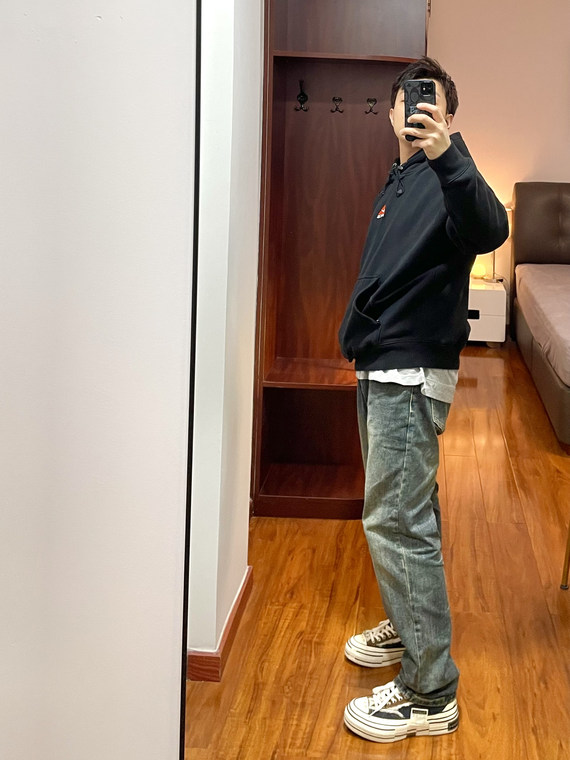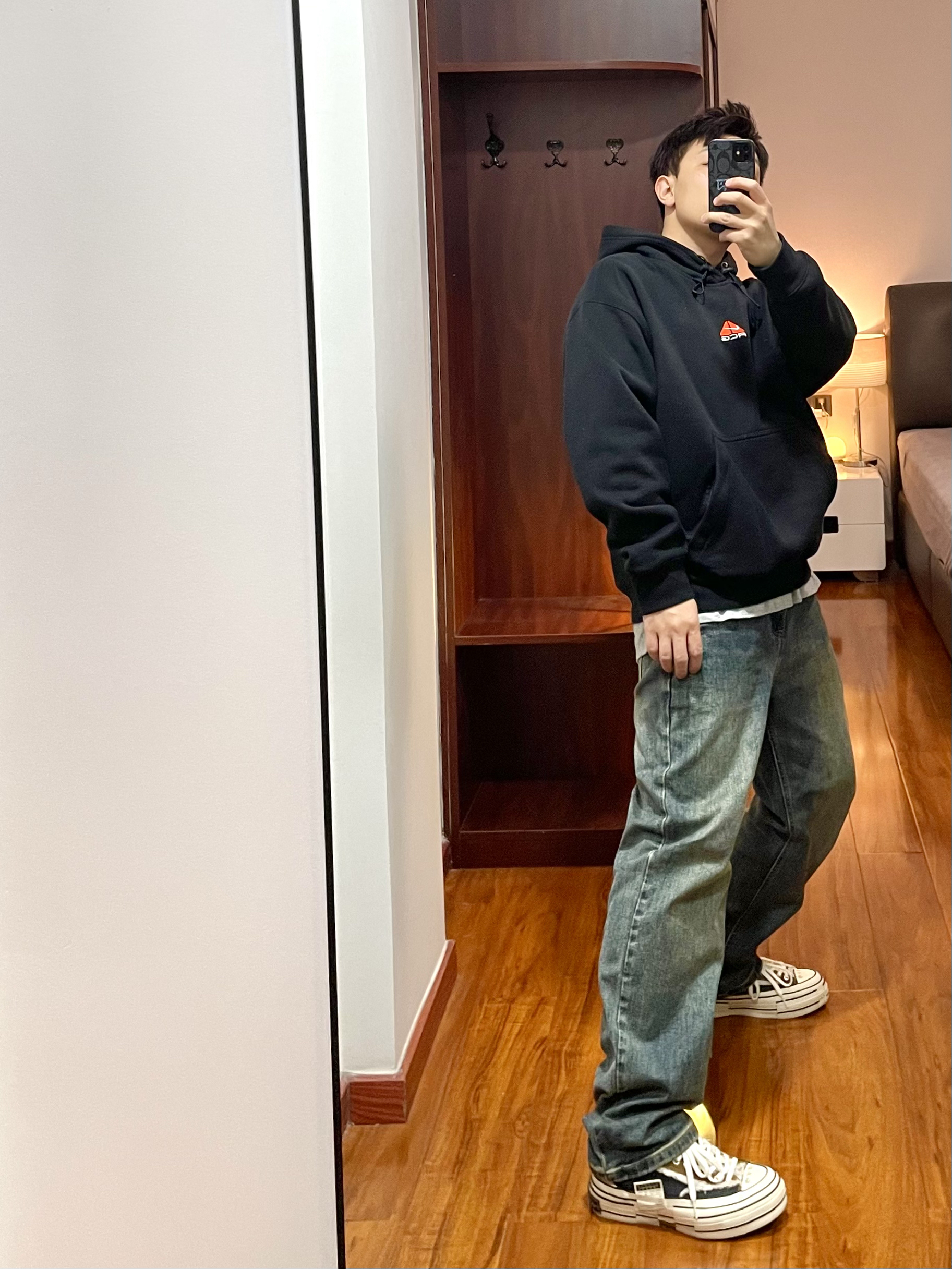 170/135斤 一个普通人的穿搭分享 👔:Nike acg卫衣 ACG卫衣防水透气可以快速排汗,日常简单的户外活动穿着合适,卫衣版型宽松偏厚有温度,春季早上夜晚穿着合适。 👖:复古牛仔裤 微黄做旧的配色,裤型宽松硬朗,裤脚处有依然的堆叠效果。 👟:xvessel 硫化鞋 厚底的硫化鞋,中底部分有软木塞材料,脚感软硬适中有回弹,配色为牛仔拼接。