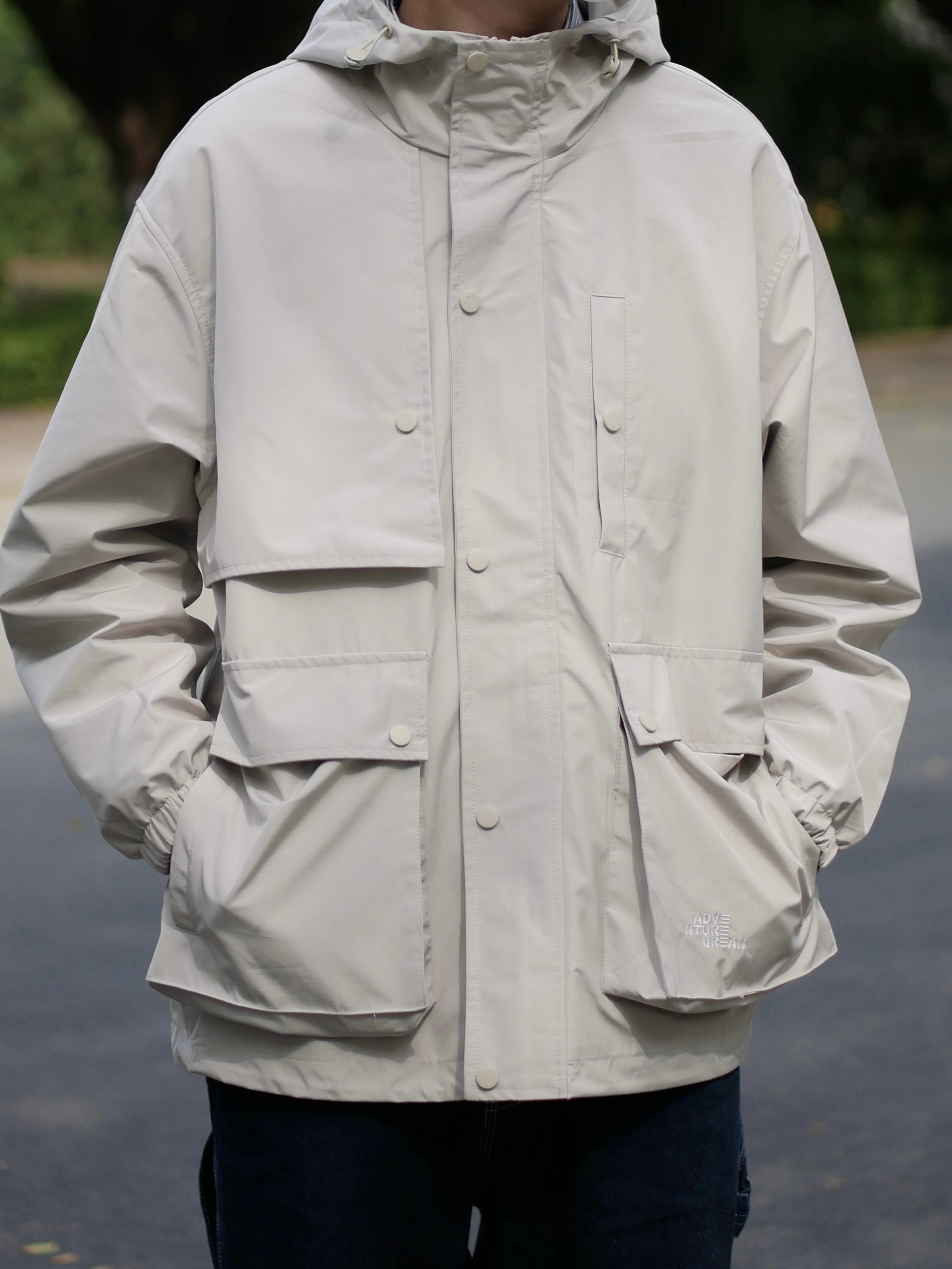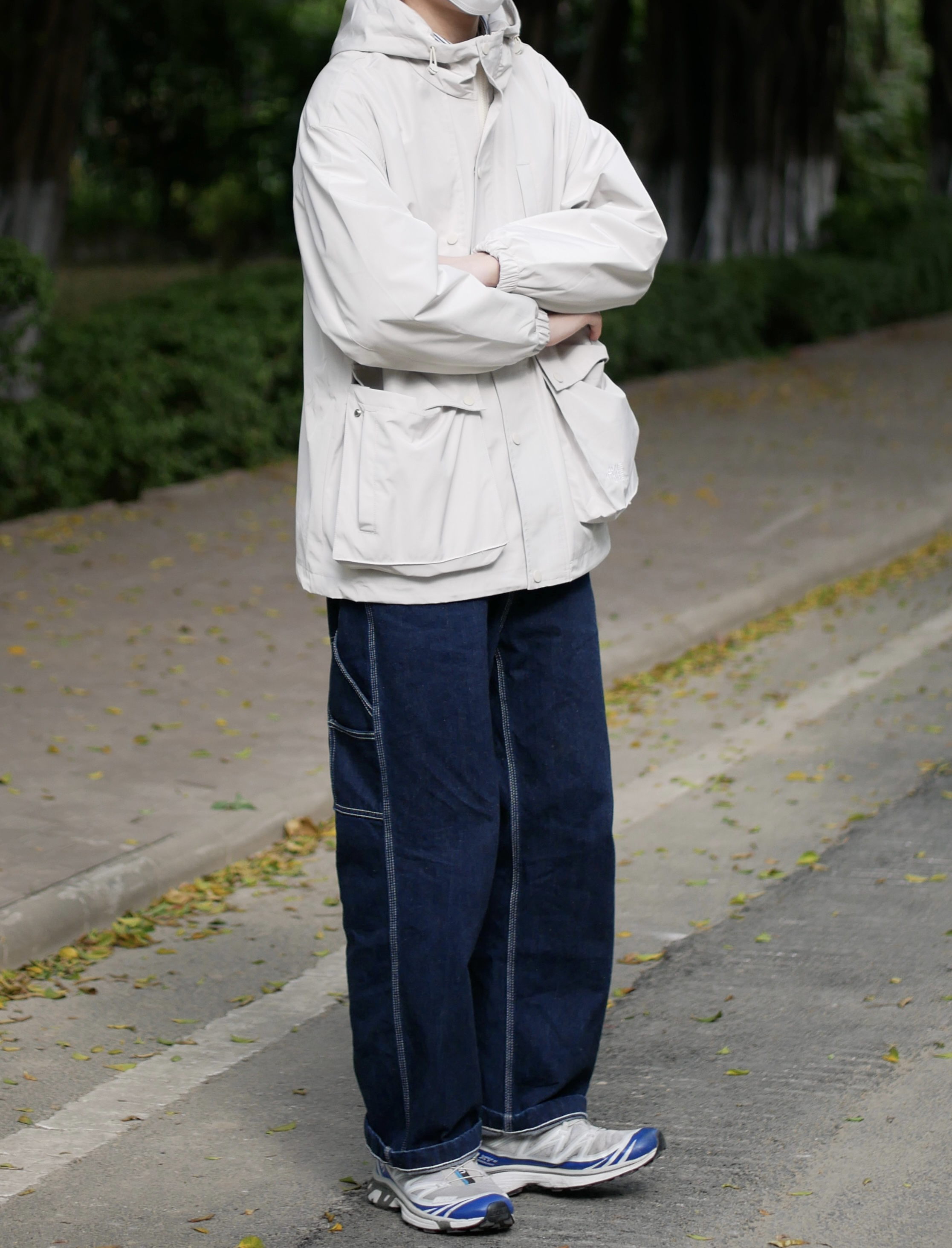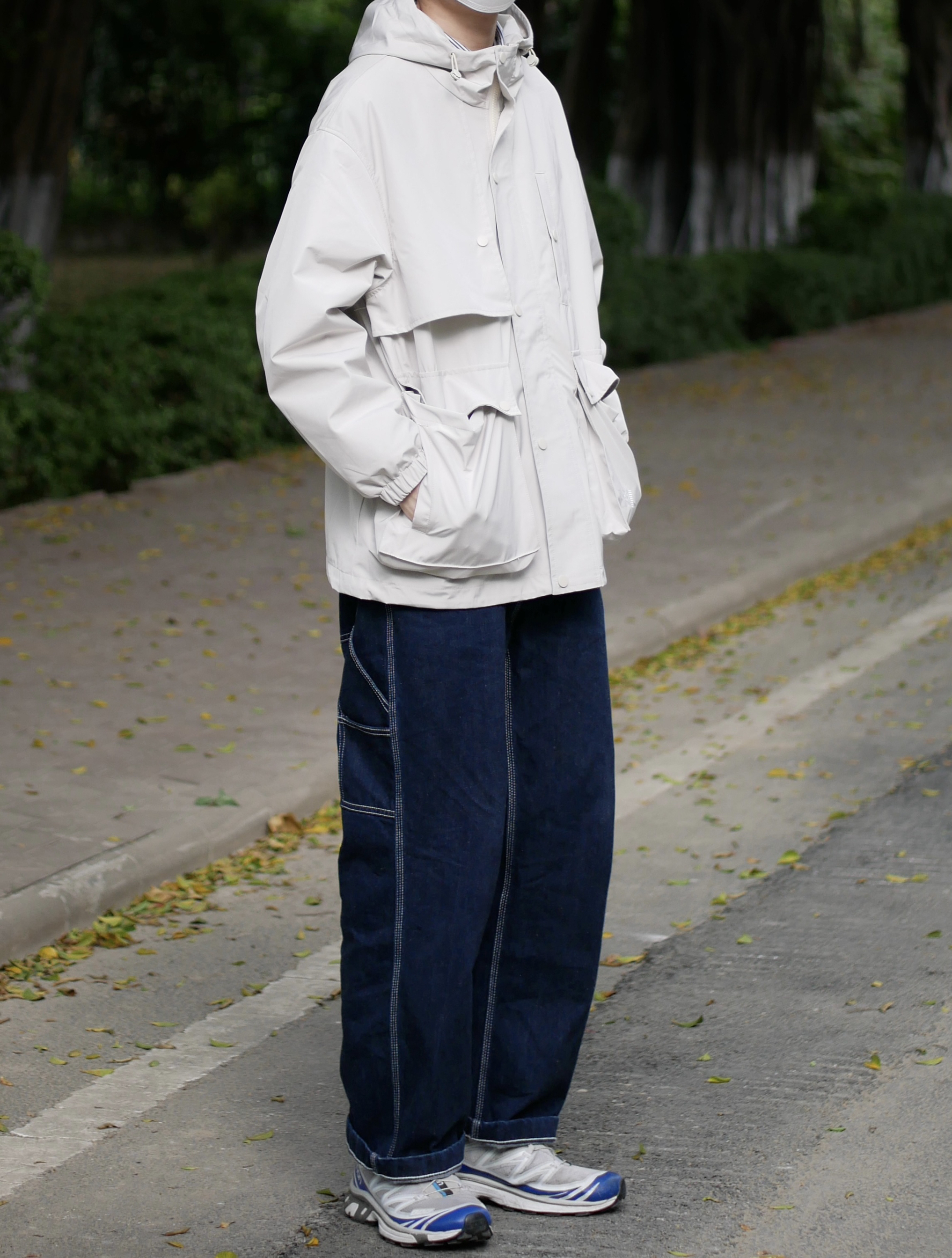 米白色太有质感了 懒人拒绝不了的多口袋外套 搭配直筒宽松牛仔裤~