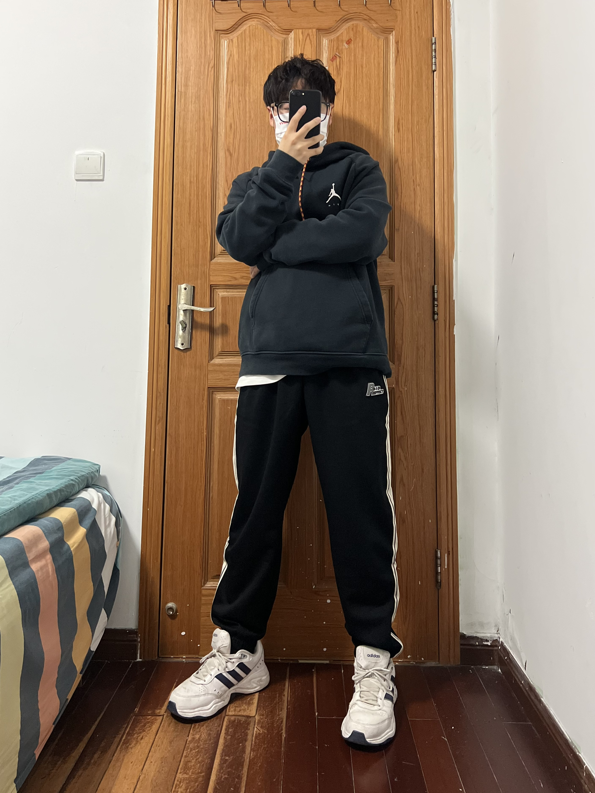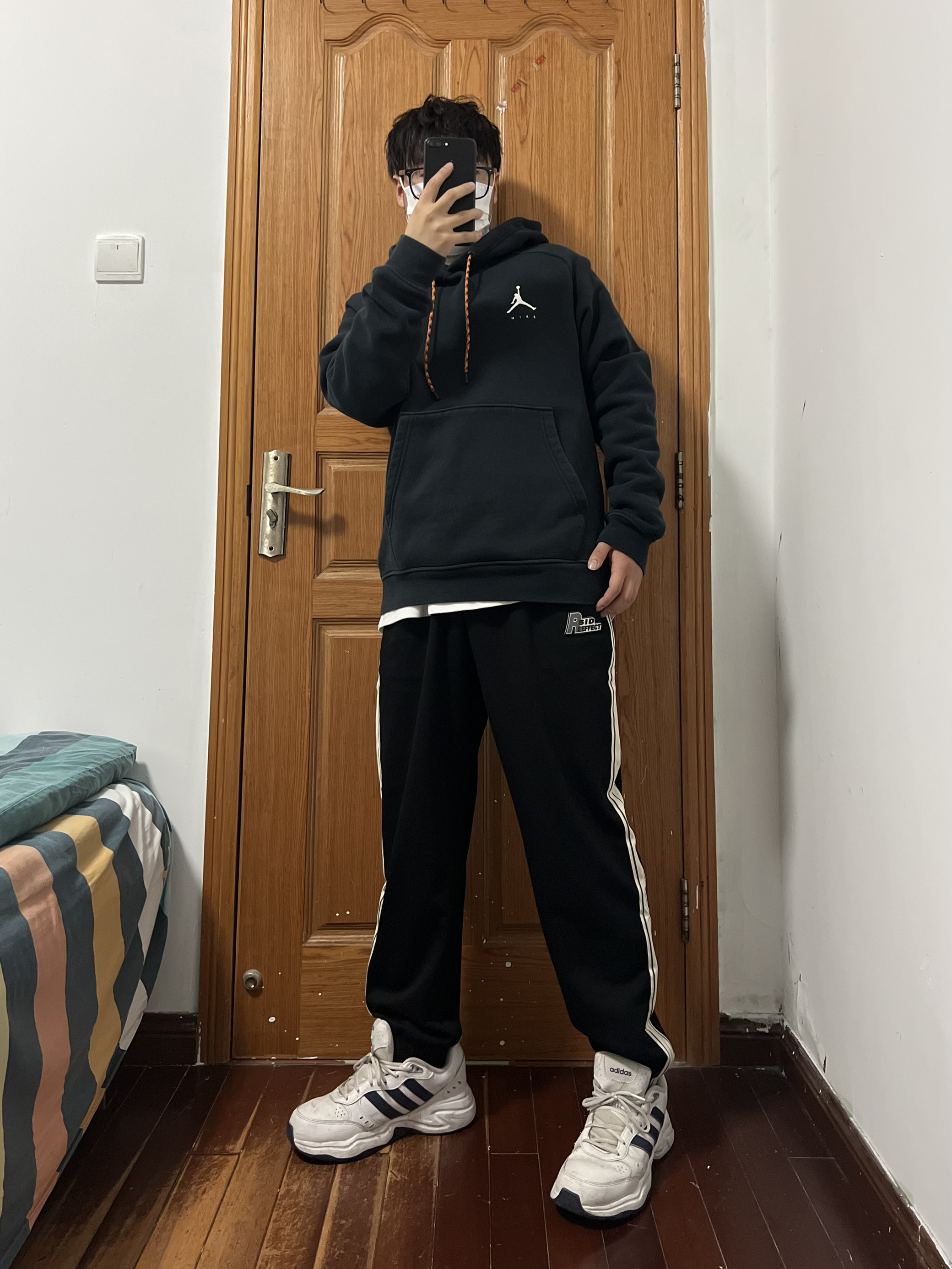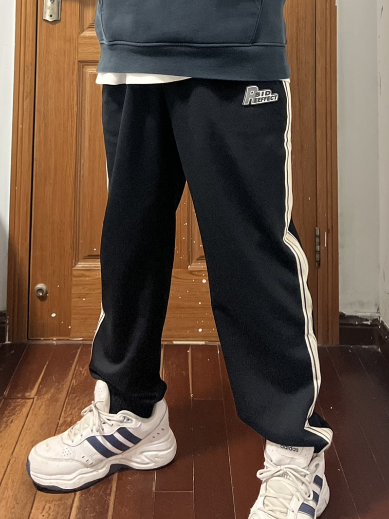 今日份穿搭分享🎉 上衣一件简单的黑色卫衣简单百搭人人爱 裤子是SIDEEFFECT 黑白条纹撞色束脚裤 运动裤那肯定是束脚的好啦,方便运动且修身喽 侧边黑白条纹的设计使得整体裤型更具有运动感 宽松的版型也对各种身材友好上身满满少年感❤️ 显瘦休闲俩不误,这种百搭的裤子怎么穿都帅气 秋冬卫衣外套都🉑️,春夏短袖长袖完美搭配❗️ logo设计是有质感的立体标哦,小细节超喜欢 搭配双阿迪运动鞋,整个就是...