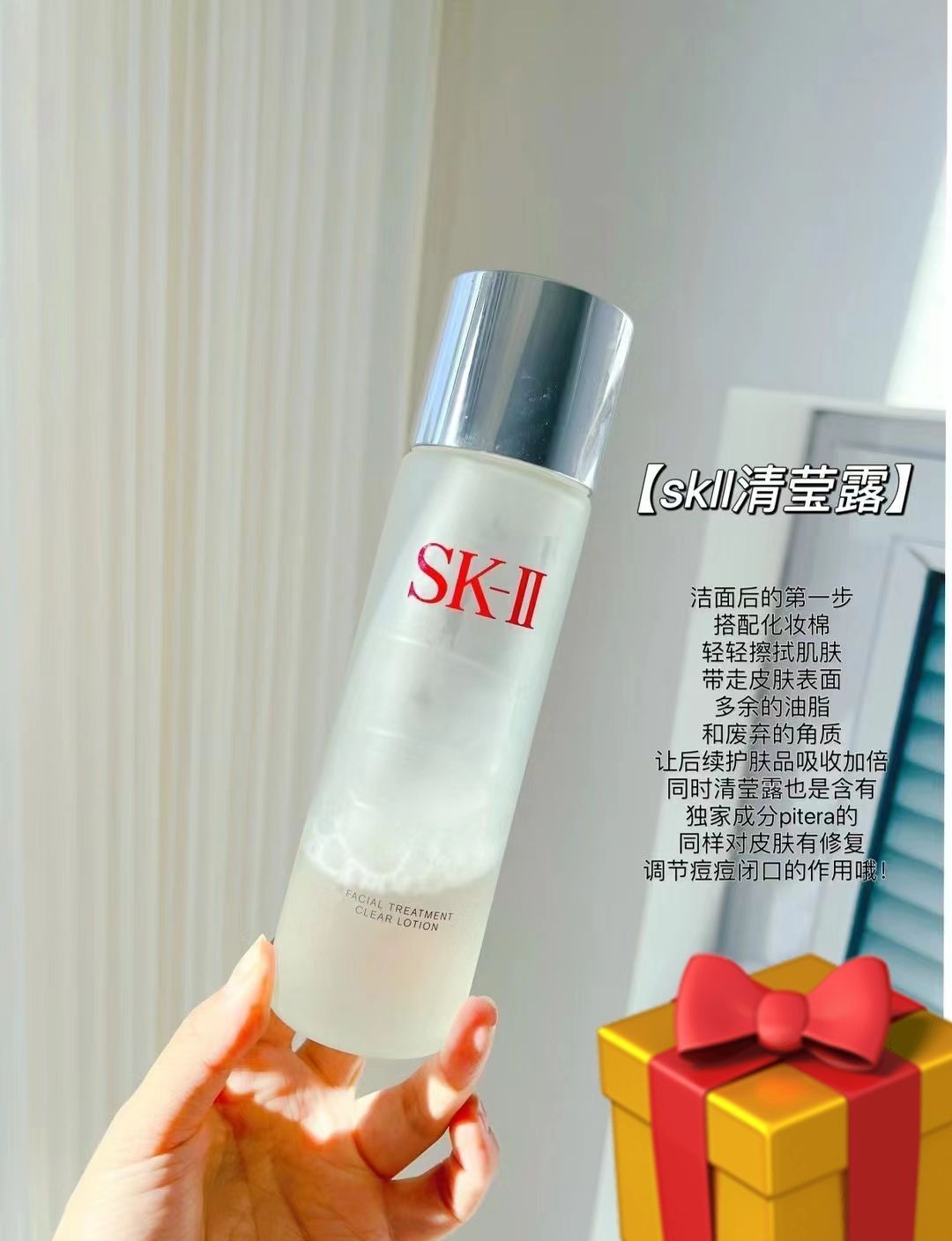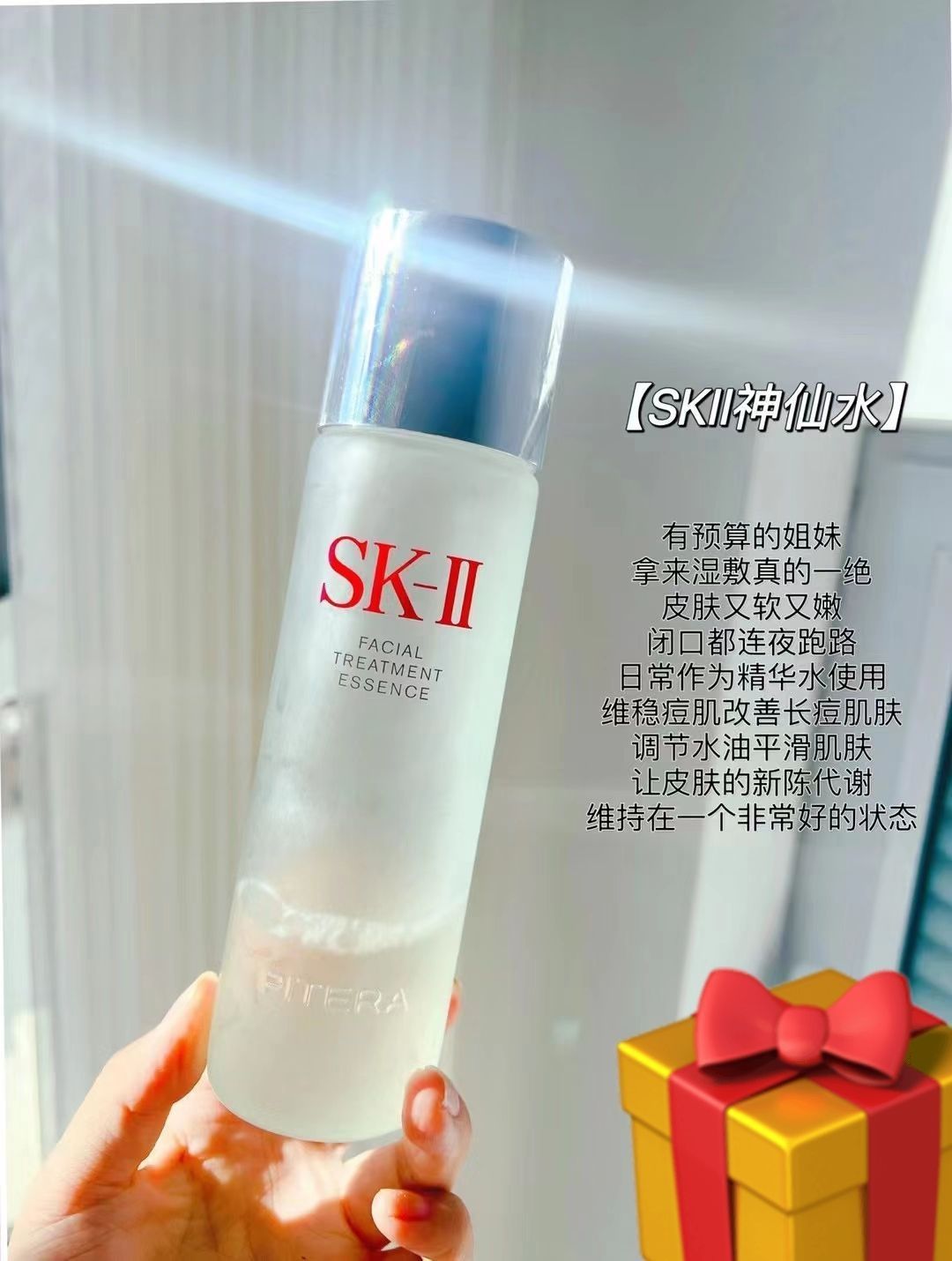 本篇笔记关联了SK-II 护肤套装【神仙水+清莹露】 补水保湿紧致抗老 神仙水230ml+清莹露230ml、【小样】SK-II 神仙水精华液 提亮水润 修护肌肤等商品,为用户提供真实的使用体验和购买参考。