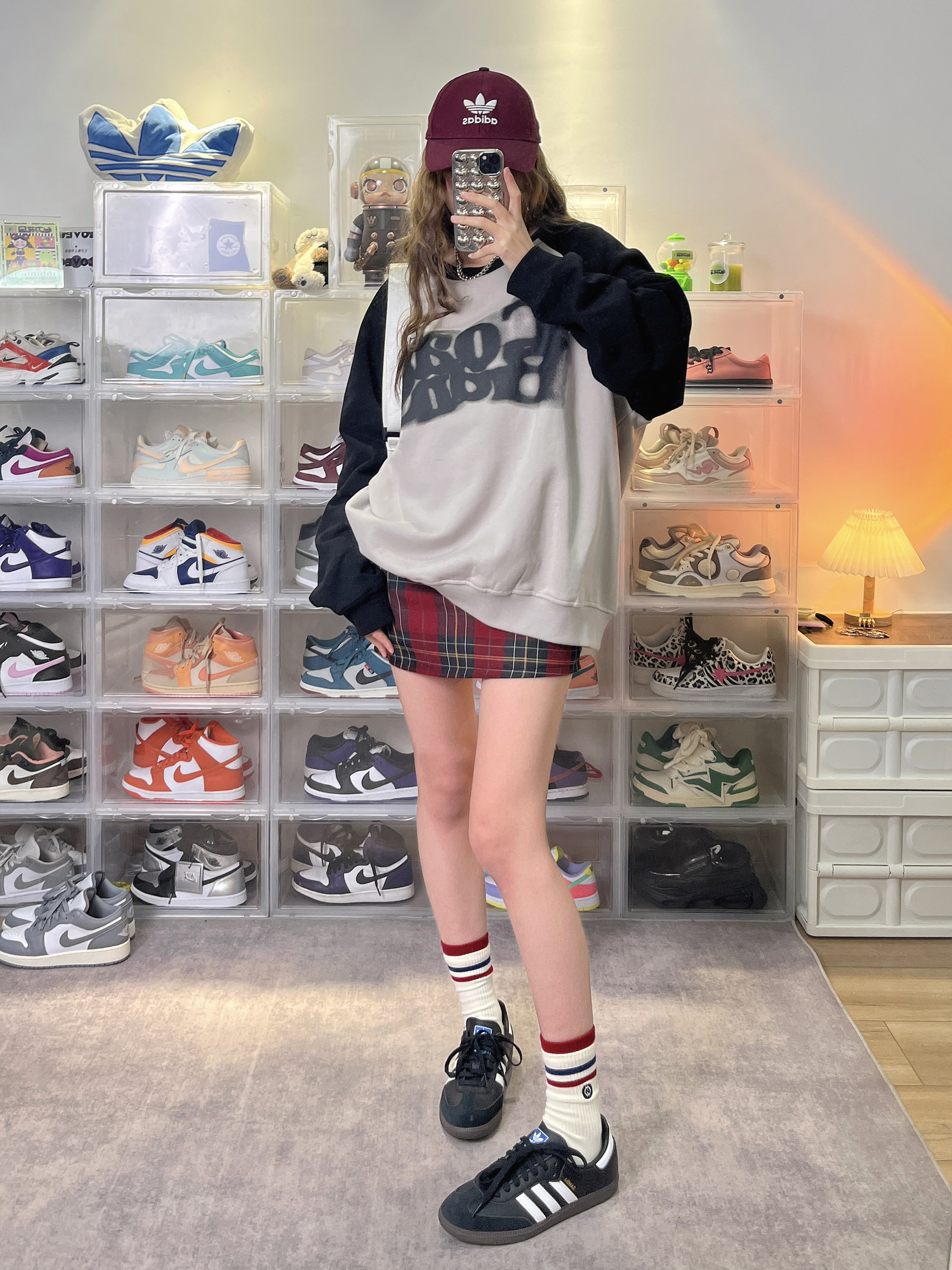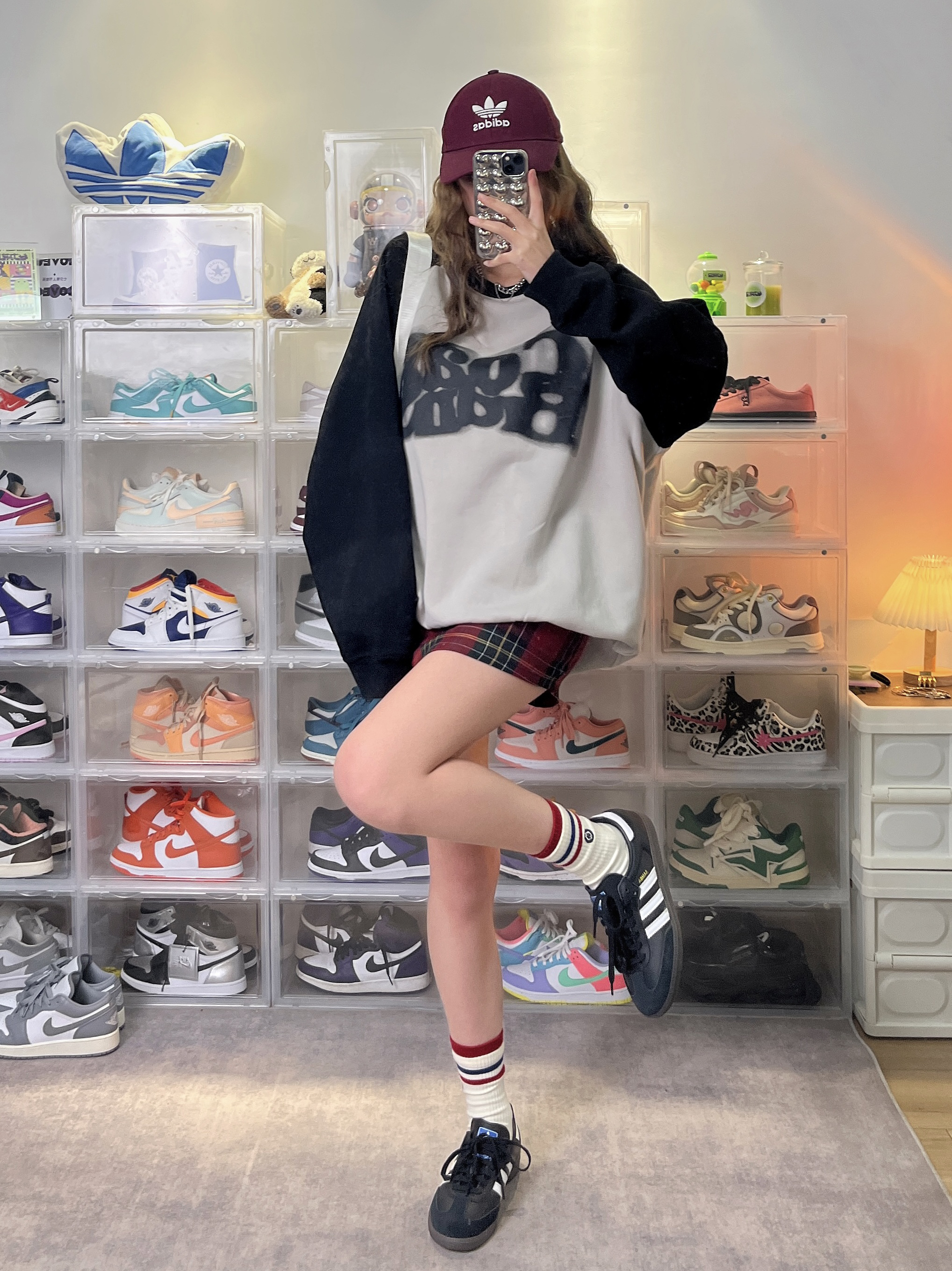 开春懒人搭配法则—— 鸭舌帽➕卫衣➕板鞋的组合不要太爱! 黑灰➕酒红色就很美式复古! 👟:adidas originals Samba OG 黑白