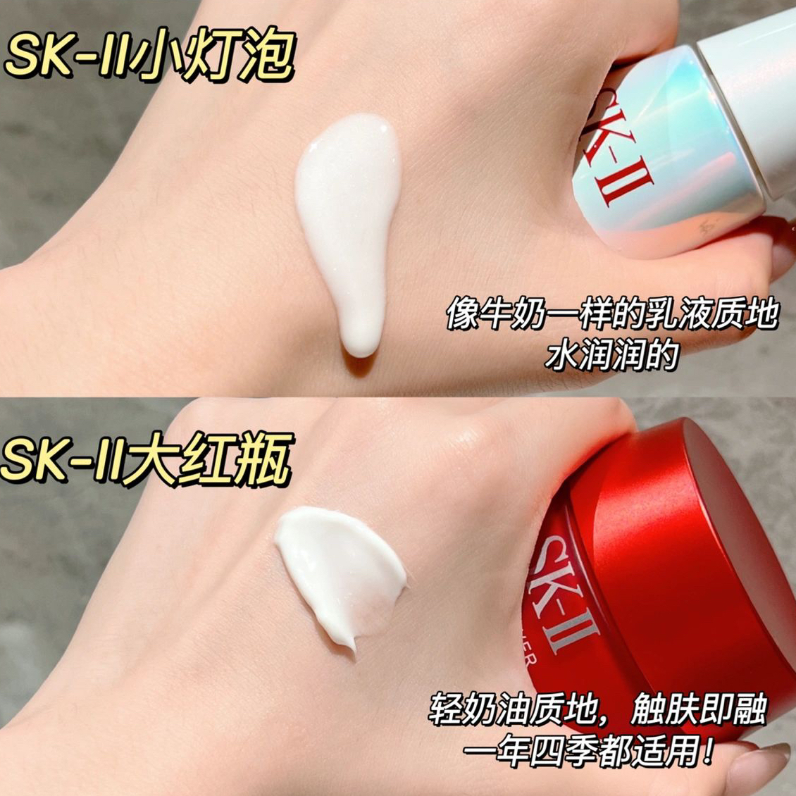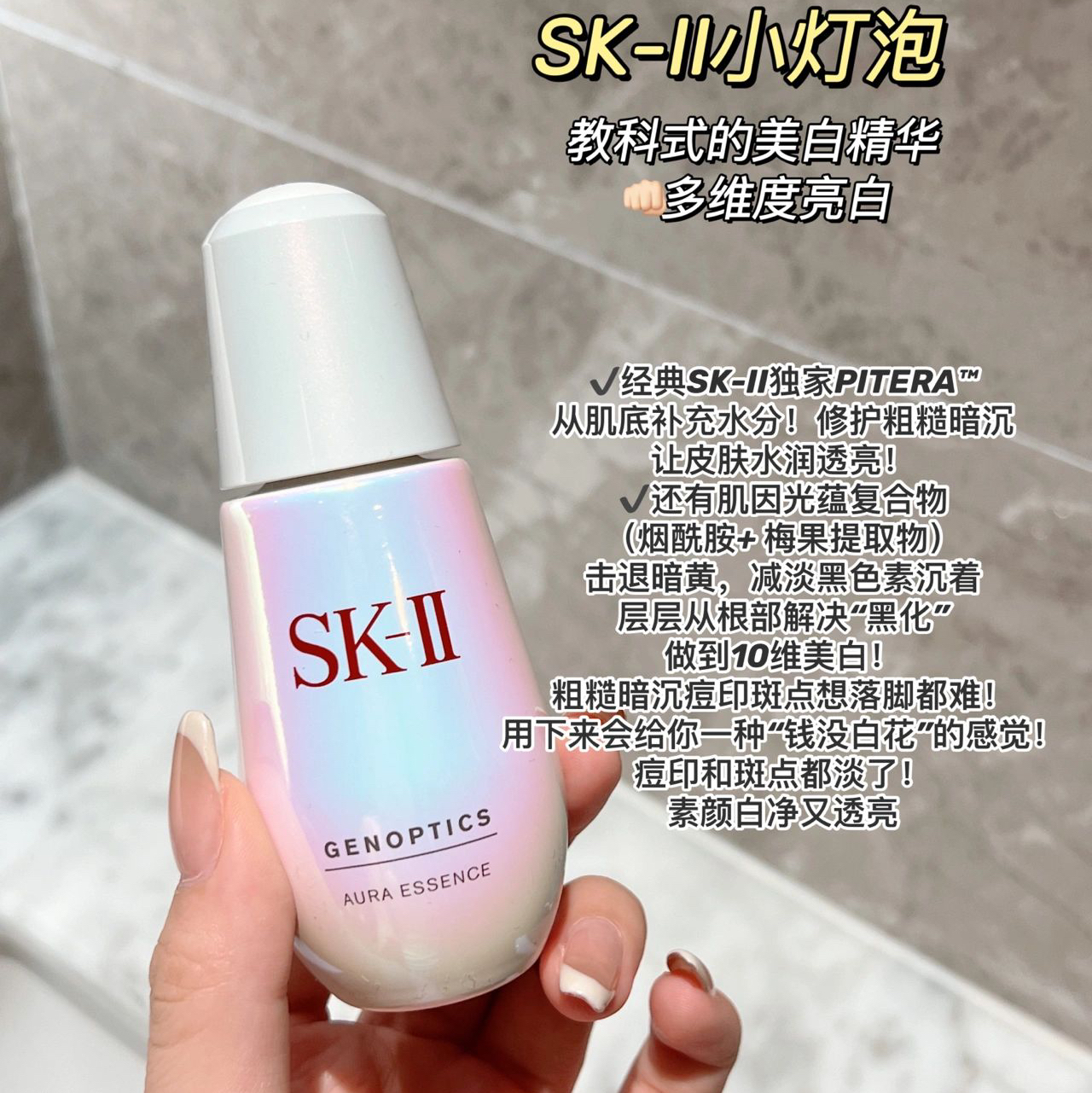 💁🏻♀️先介绍下本人肤质 典型的外油内干,再加上工作熬夜加班太凶 曾经粗糙暗黄/疙疙瘩瘩/皮肤松垮常年伴随我 如果有什么会一直回购的护肤品 我会说一定是SK-II三件套 👉🏻小灯泡+大红瓶面霜 平衡水油,美白,抗老统统拿捏 能把我从一个油痘肌调理成健康的中性皮 它必须是大功臣! 🟠 SK-II小灯泡! 教科式的美白精华,找不到平替 能改善痘印斑点等10种常见的暗沉问题 像我之前的痘印和脸颊莫名长...