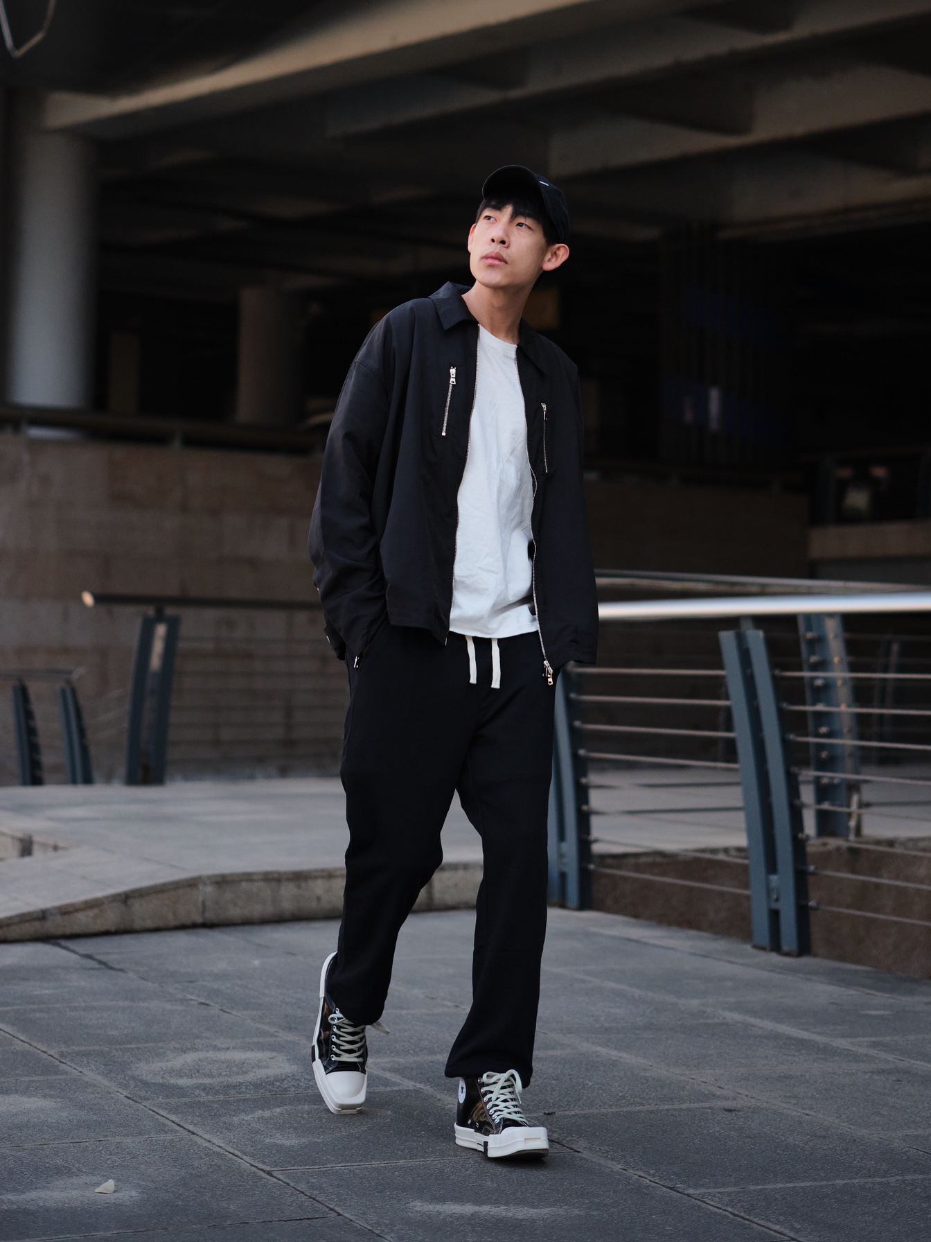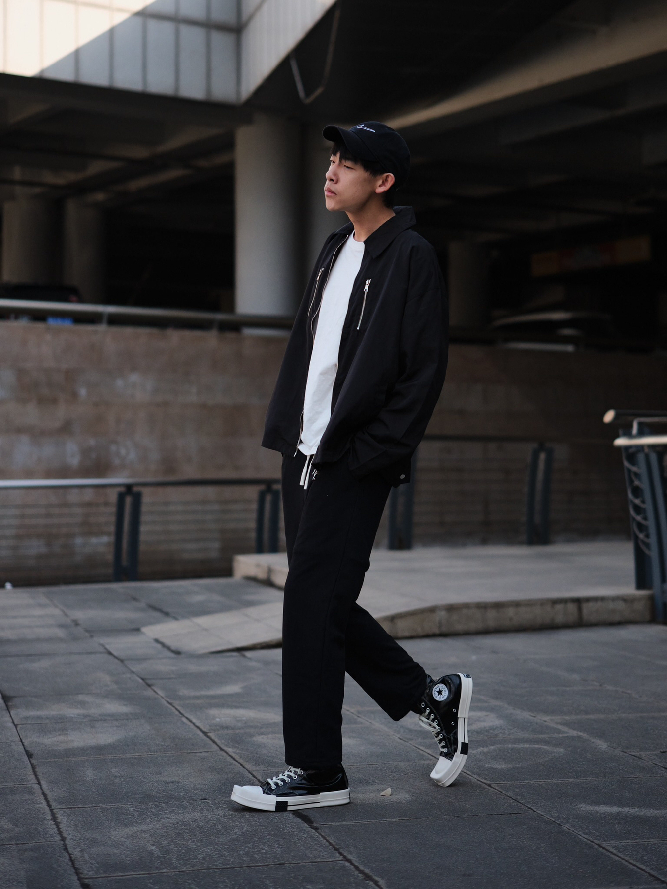 哟!wassup!大家好!春日出街怎么穿?简约又 帅气的cleanft穿搭来啦~快来一起看看吧~ 上半身搭配一件白色T恤打底,选择一件黑色的拉链款外套,简约干净不失帅气,而且拉链的点缀也 可以凸显小细节~ 裤子则是这款来自 CASTERWEAR 的黑色宽松 版型直筒裤,不得不说这条裤子版型还是蛮显腿直的,搭配性也不错,cleanft穿搭利器~ 最后上脚这双方头的RO × 匡威联名鞋款,让整 体简约...