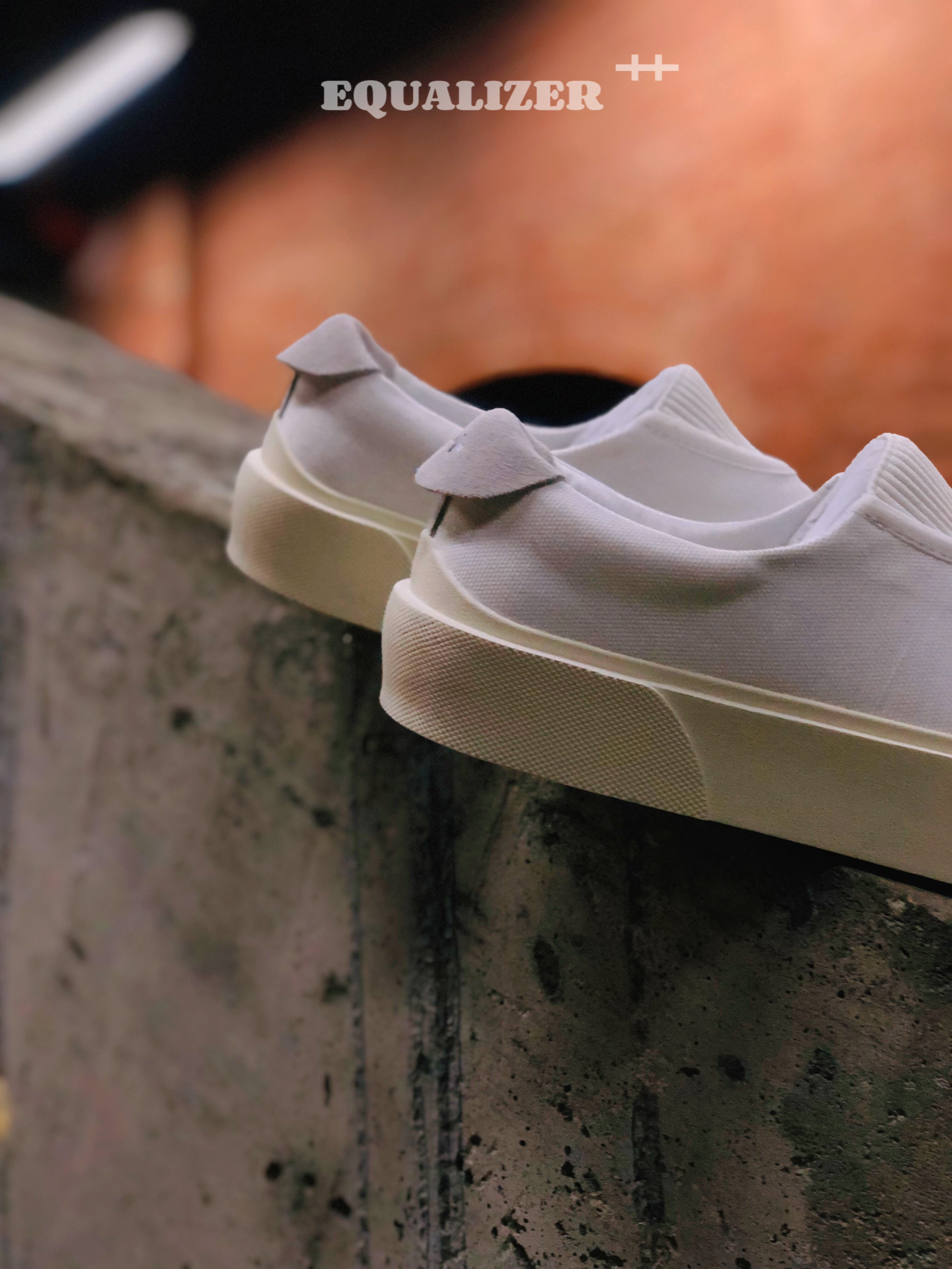 小白鞋 的规格 应该没什么朋友会抗拒吧 此次以 一脚蹬设计 让穿着更加便捷 (特别是和我一样不想绑鞋带的) 帆布材质 帮面 内部却是 皮革用料 包裹舒适 透气兼并 一体式反硫化橡胶底 防滑耐磨舒适 尺码偏大 入手注意下买小点