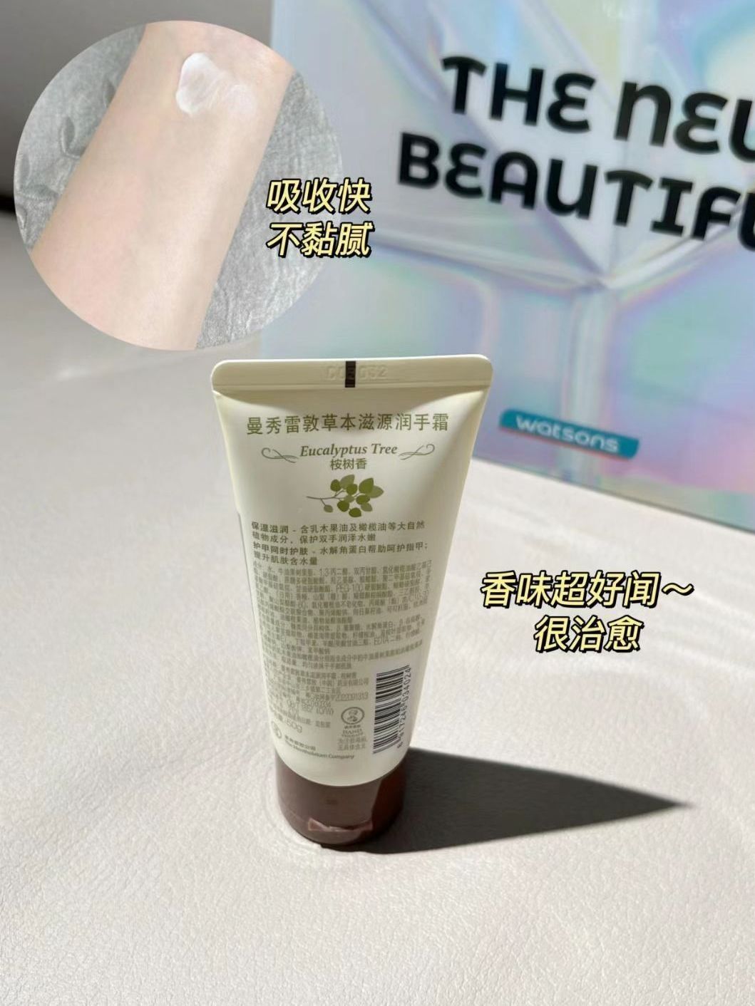 ❤️一到秋冬都能用空几管护手霜 对我来说 护手霜必须 平价,曼秀雷敦草本滋源润手霜桉树味道的护手霜是我没想到的,太好闻了,谁 用谁知道🐴 这个是在男朋友车上扔了一支 单看颜值就没抱多大希望 谁知道一用 简直好用极了 完全符合我对护手霜的要求一点都不黏腻 很好推开 超级好吸收 抹完玩手机也不沾 不油 香味是淡淡的桉树香不廉价(每次男朋友见我都拉着我手闻)男朋友很识趣的又给我屯了一箱 使用感:易推开 ...
