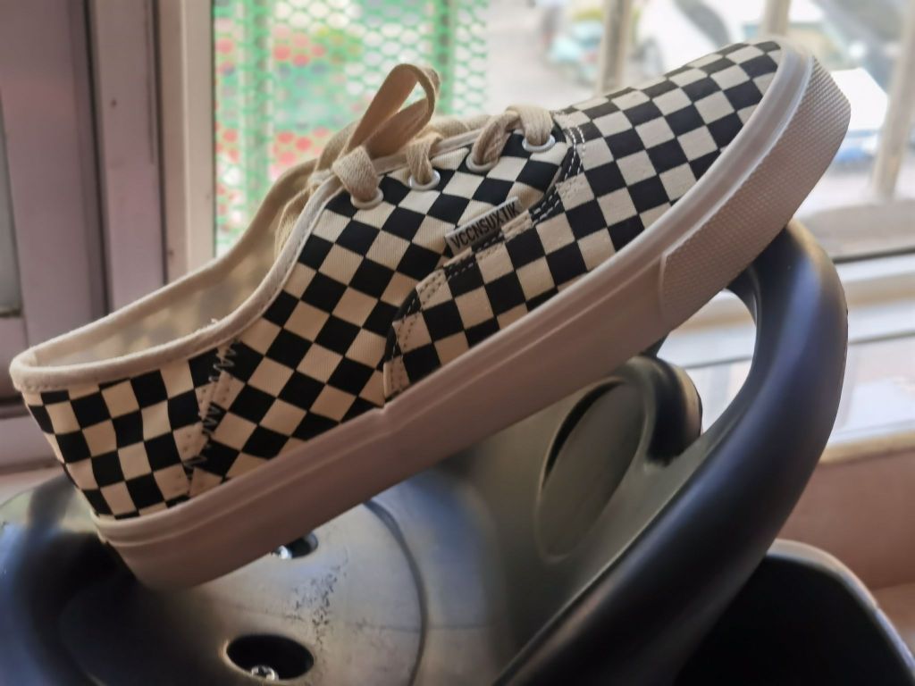 帆布鞋大家还是忘不了这款Vans 棋盘格还是经典款好看些,整个色调和鞋带搭配很复古,感觉更百搭。搭配短裤裙子可以穿个小长袜,搭配长裤的话个人觉得隐形袜更合适些。尺码就买常规码啦,