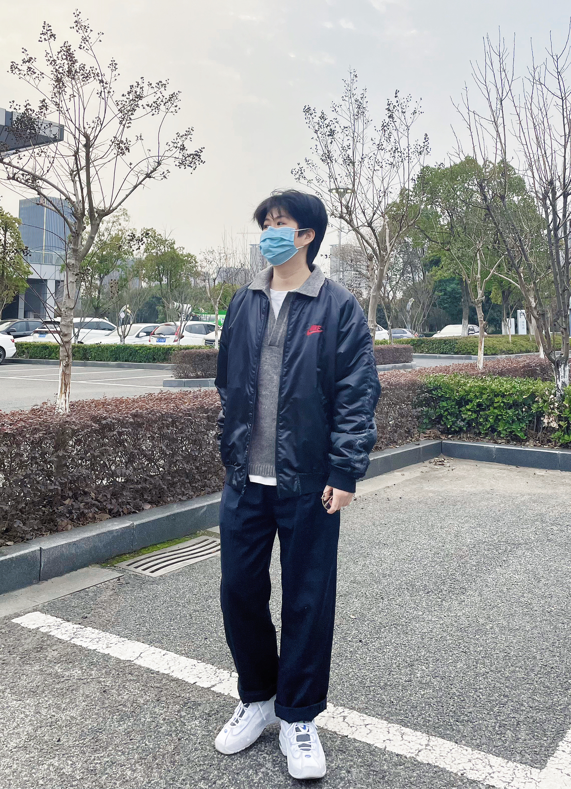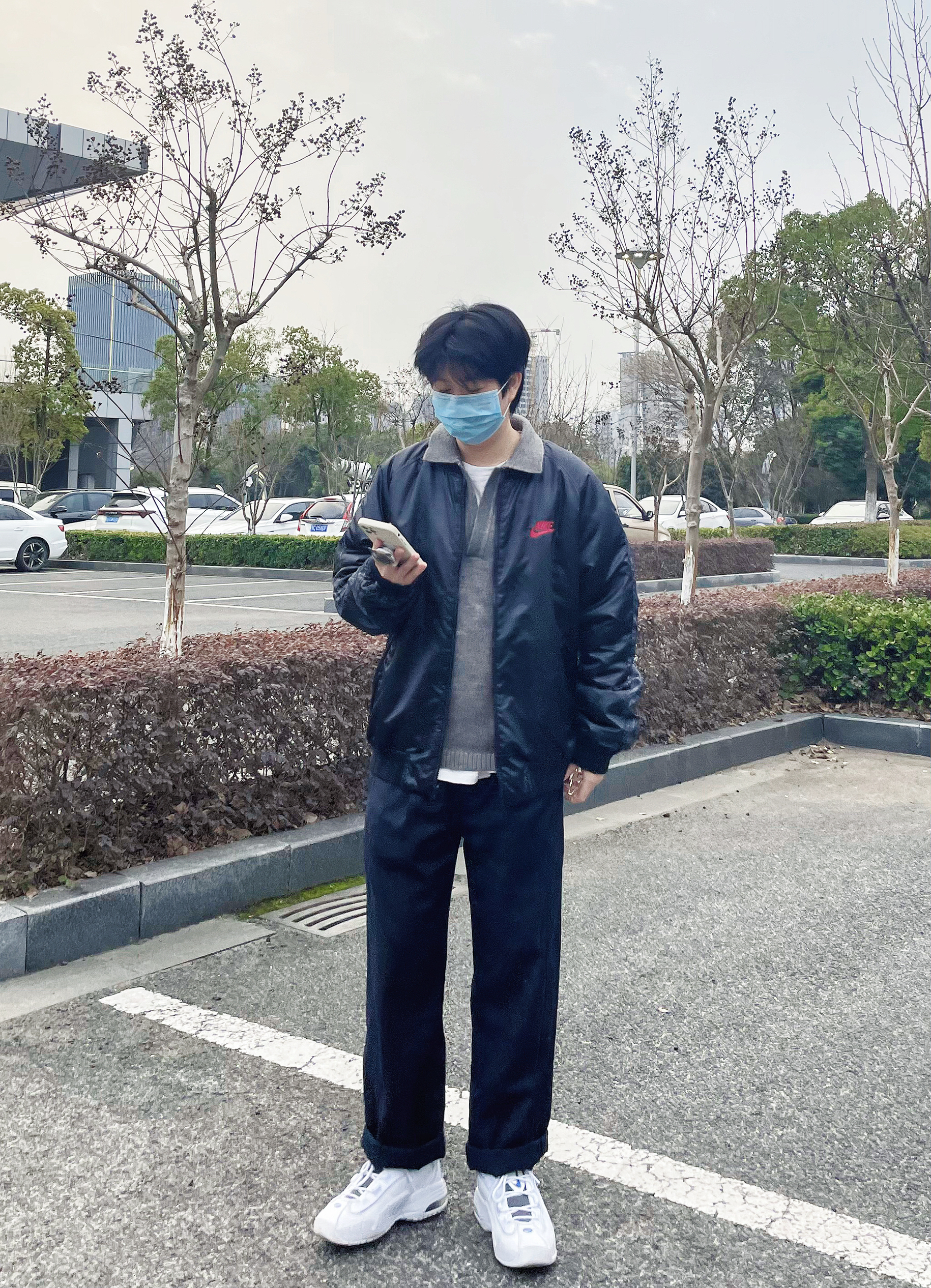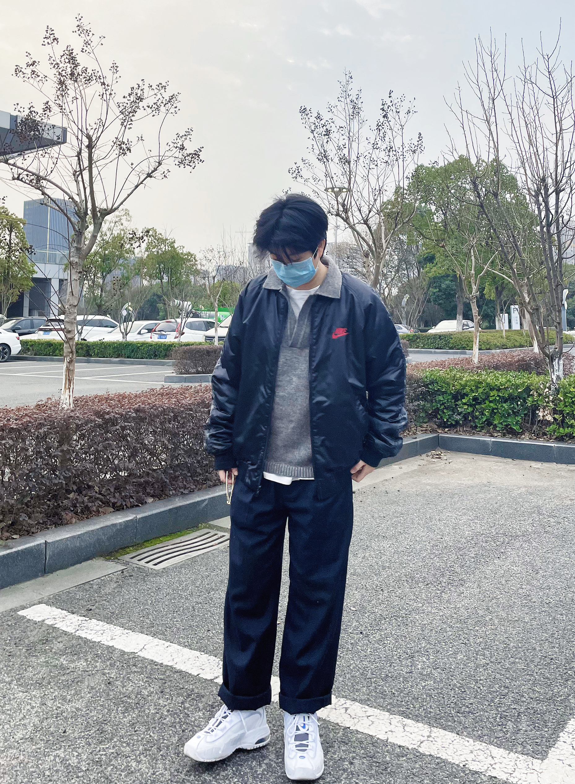 ✨黑灰色系的搭配 👔 nike的双面穿夹克/ 灰色毛衣 👖黑色西装裤 👟选择了白色篮球鞋 —————————————————— ✨不简单工装风|黑色夹克春季穿搭|灰色毛衣穿搭|黑色西装裤穿搭|白色篮球鞋搭配|ivy|每日穿搭|日常休闲风