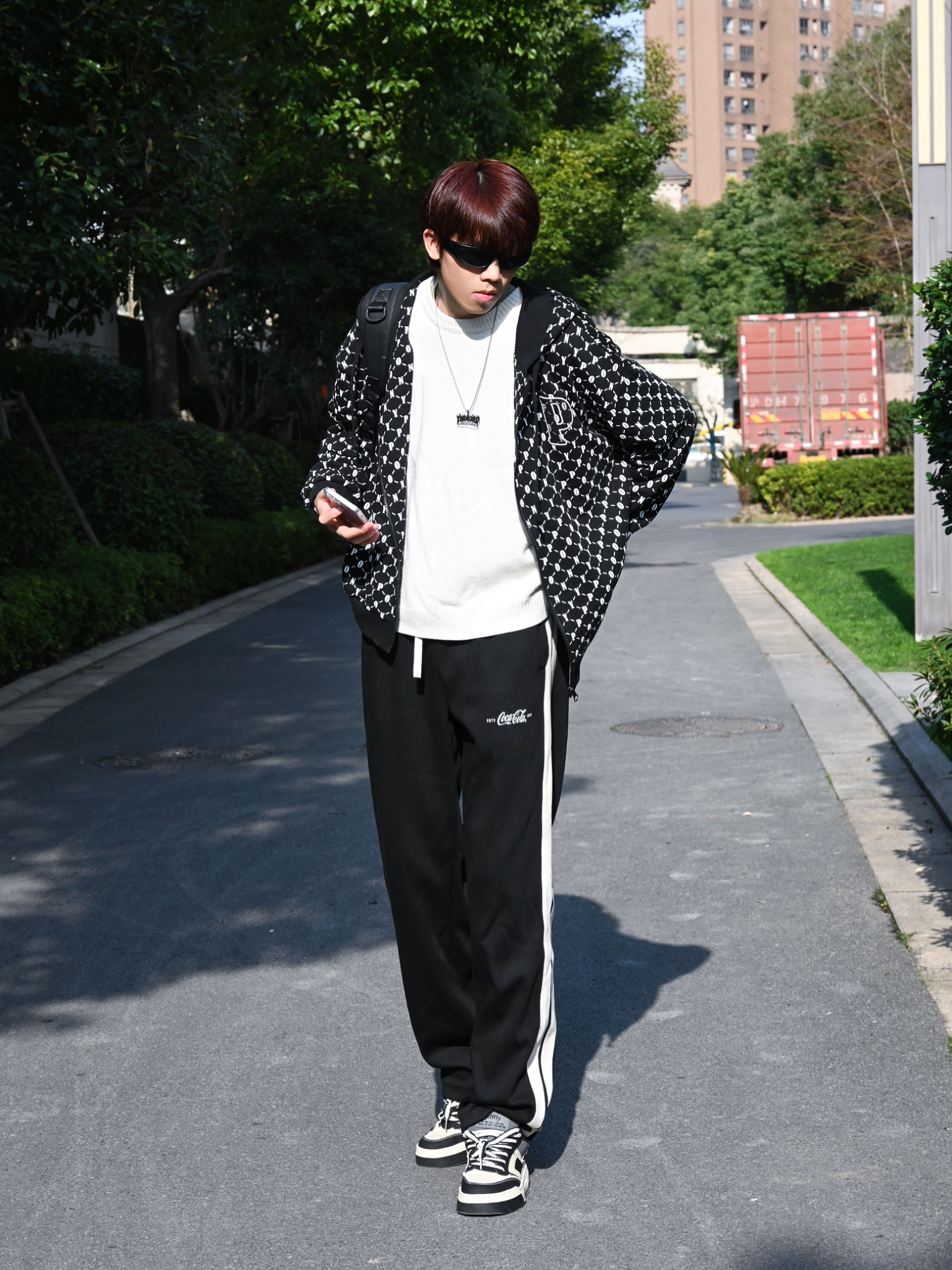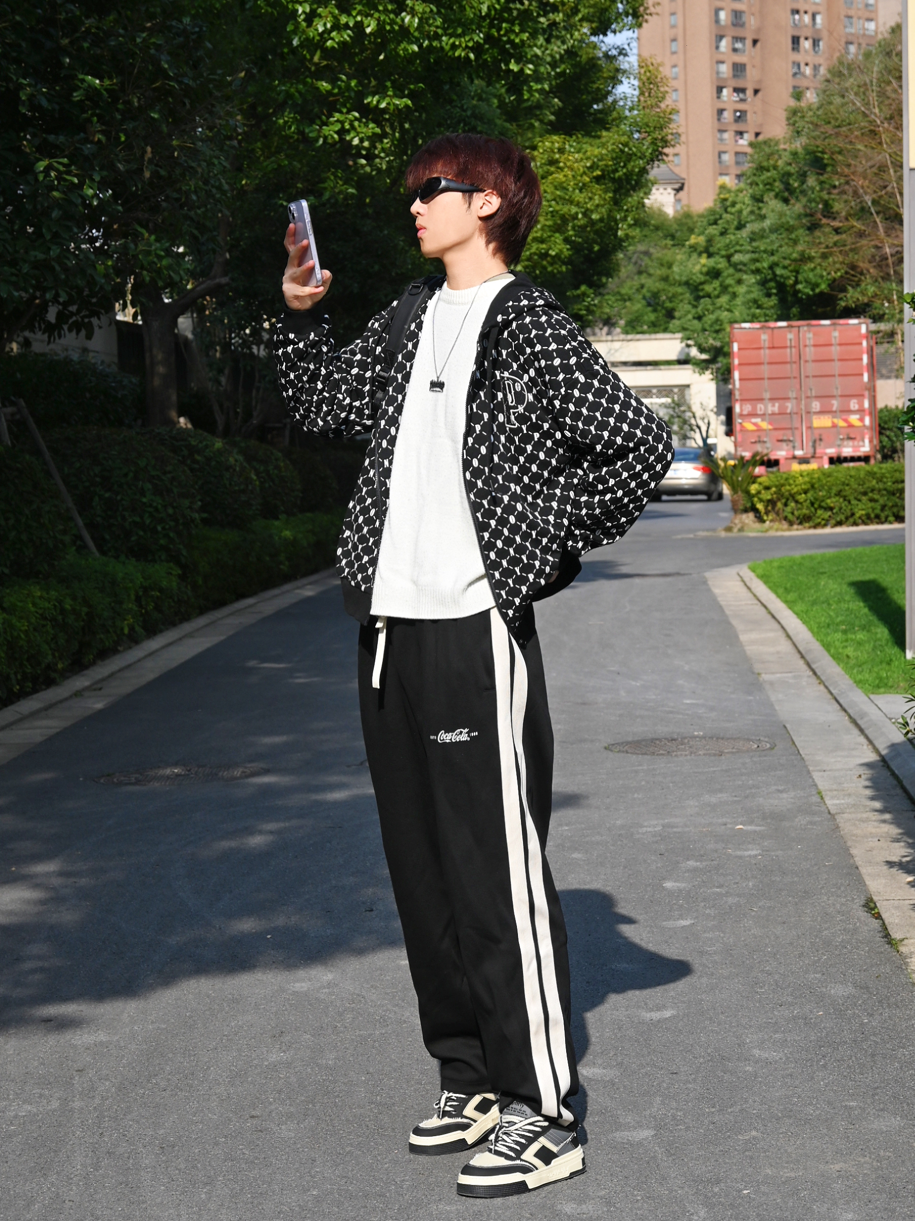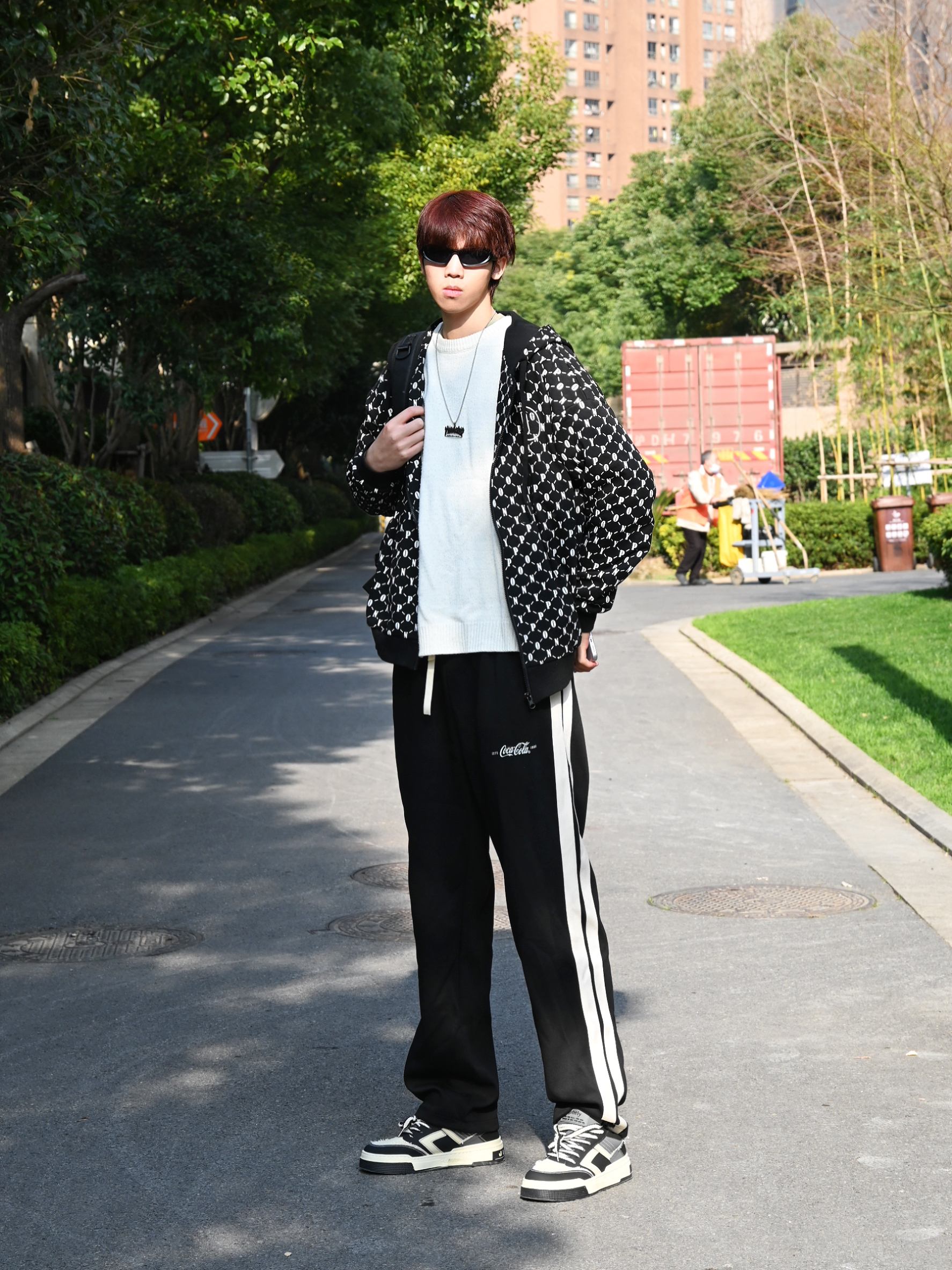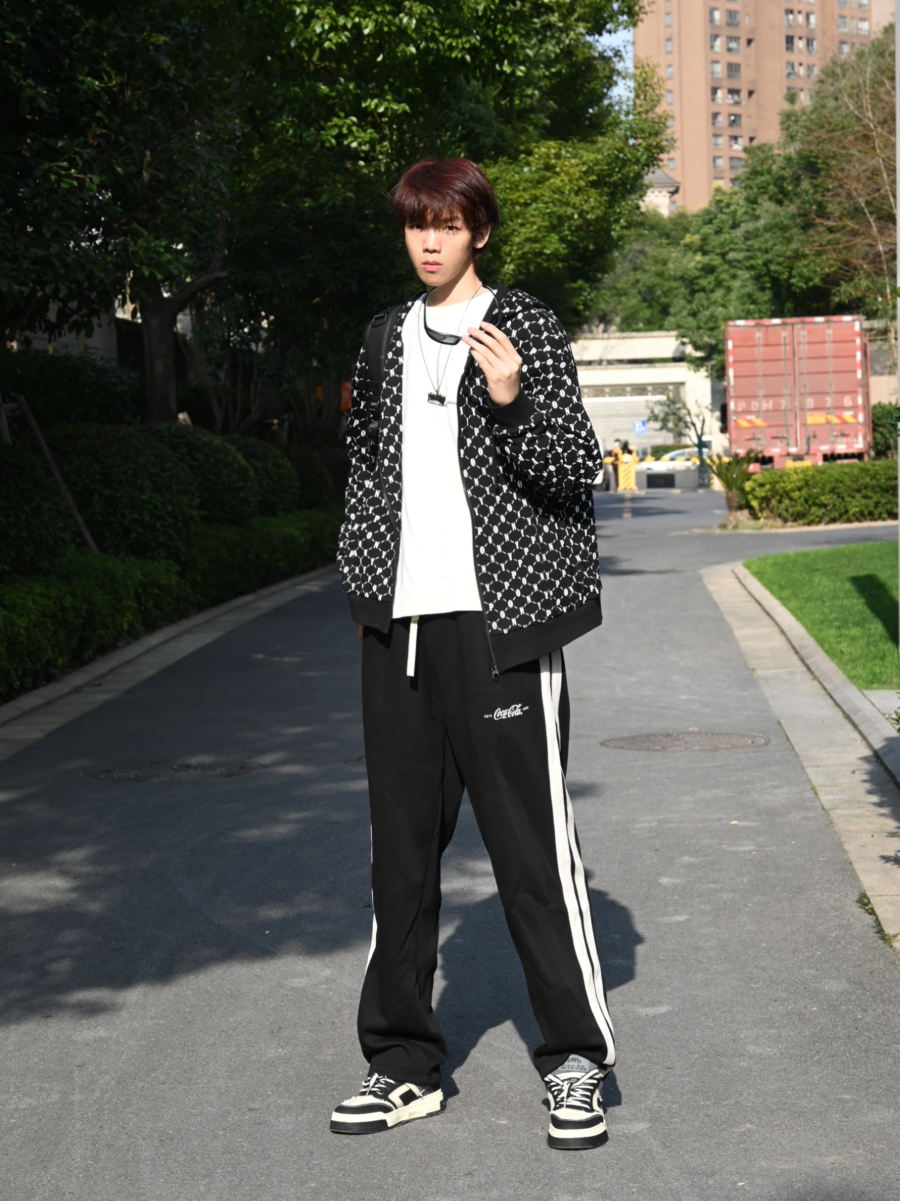 如果平时不太会穿搭的话那么首先就是黑白色系哦! 今天这套超级适合学生党的日常通勤穿搭😜 不要再选择那种没有设计的大众款黑色外套了🧥 满印外套真的高级不失搭配感! 裤子的话选择了可口可乐的百搭卫裤 这个款式和版型我真的超爱 180左右选择xl就足够了 鞋子🥿是jifffly新出的套装 如果喜欢这个造型也可以入哦 脚感还不错啦 内搭的毛衣是十九秋的百搭白色卫衣 最为内搭最百搭的就是这款 比黑色更...