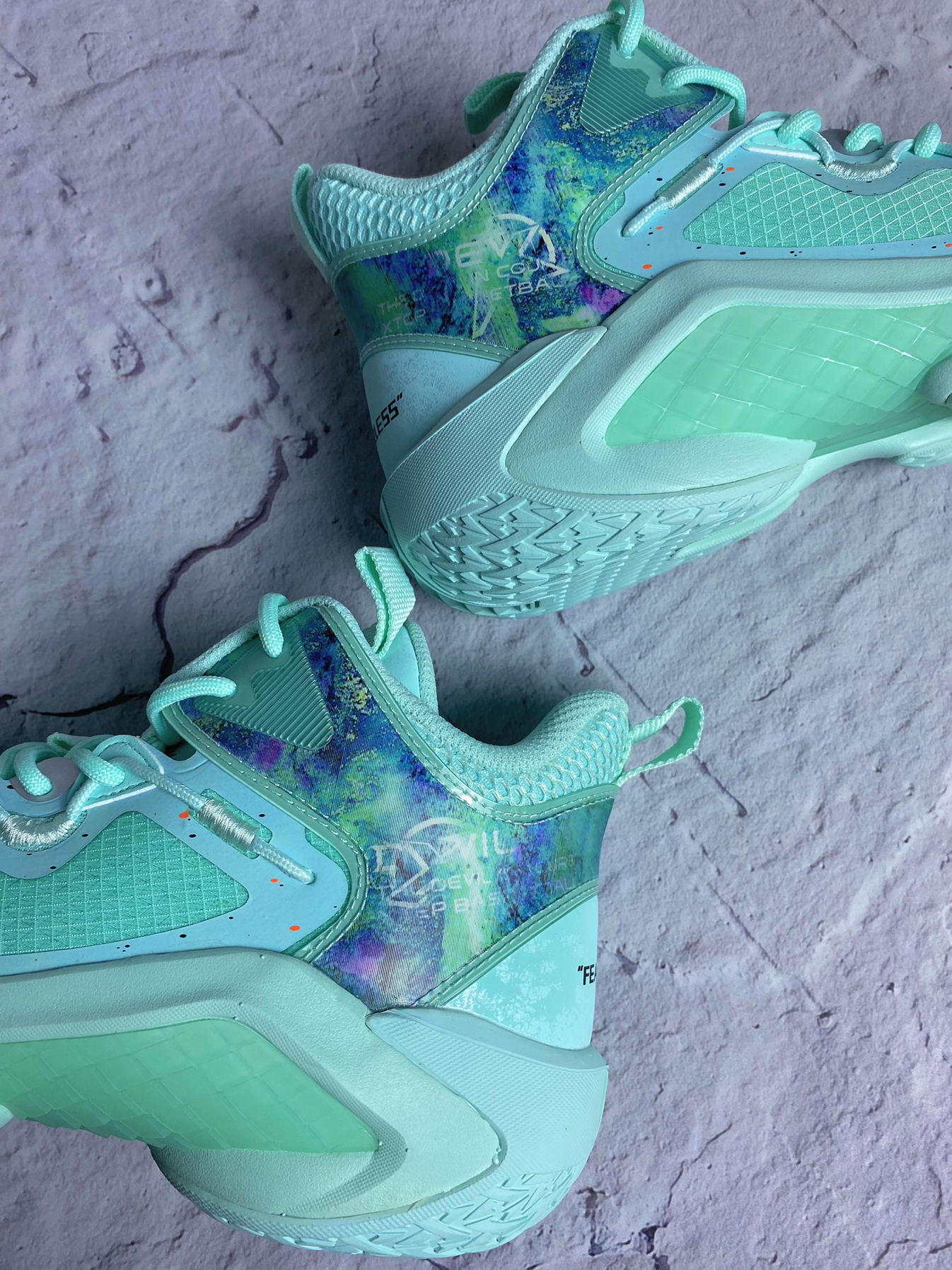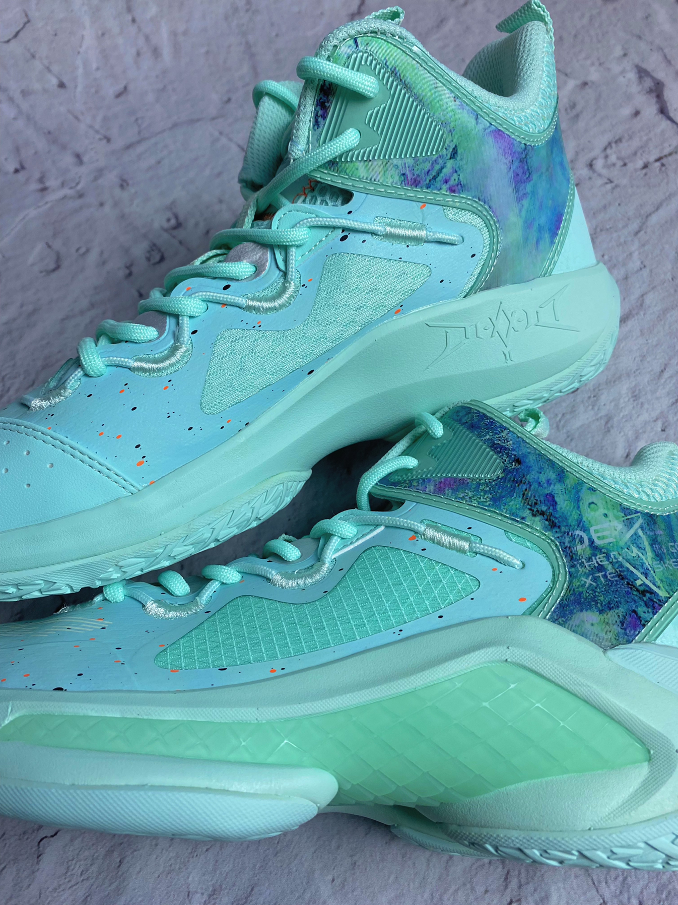 📮今天给大家分享一下特步的这双中高帮篮球鞋👈 🎨球鞋整体采用蒂芙尼绿的配色设计,鞋身有点墨、logo图案以及文字修饰,整体颜值还是可以的。 🔎性能配置 💡鞋面采用热熔压胶加网纱的材质,鞋头处还有革物加固,鞋面强度还是比较好的。 💡后跟填充物很厚实,加上是中高帮的设计,上脚包裹感很好。 💡鞋外侧的防侧翻角做得也比较到位,足弓处还有大块TPU延伸到外底,球鞋的防侧翻和抗扭转性能还是可以的。 💡这双...