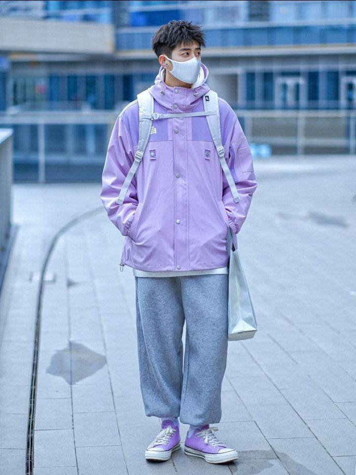 ◆答应我!一定要试一试“紫灰”撞色搭配! ◆真的没想过“紫色”的冲锋衣可以这么帅气!关于 春日出游穿搭,选择一件薄薄的冲锋衣,就可以搭 配出一套帅气的少年感穿搭! 正...... 本人身高|体重:176CM|63KG 参考) 今日份色彩搭配:“紫灰”双色搭配 【香芋紫】拼接冲锋衣,春天就是应该来一 件“薄外套”,不管是工作日通勤穿搭还是周末穿 搭,都是不错的选择!t 2:自【灰色】运动卫...