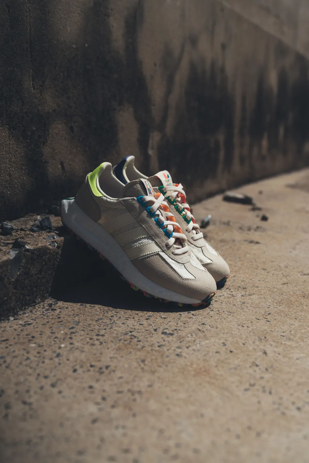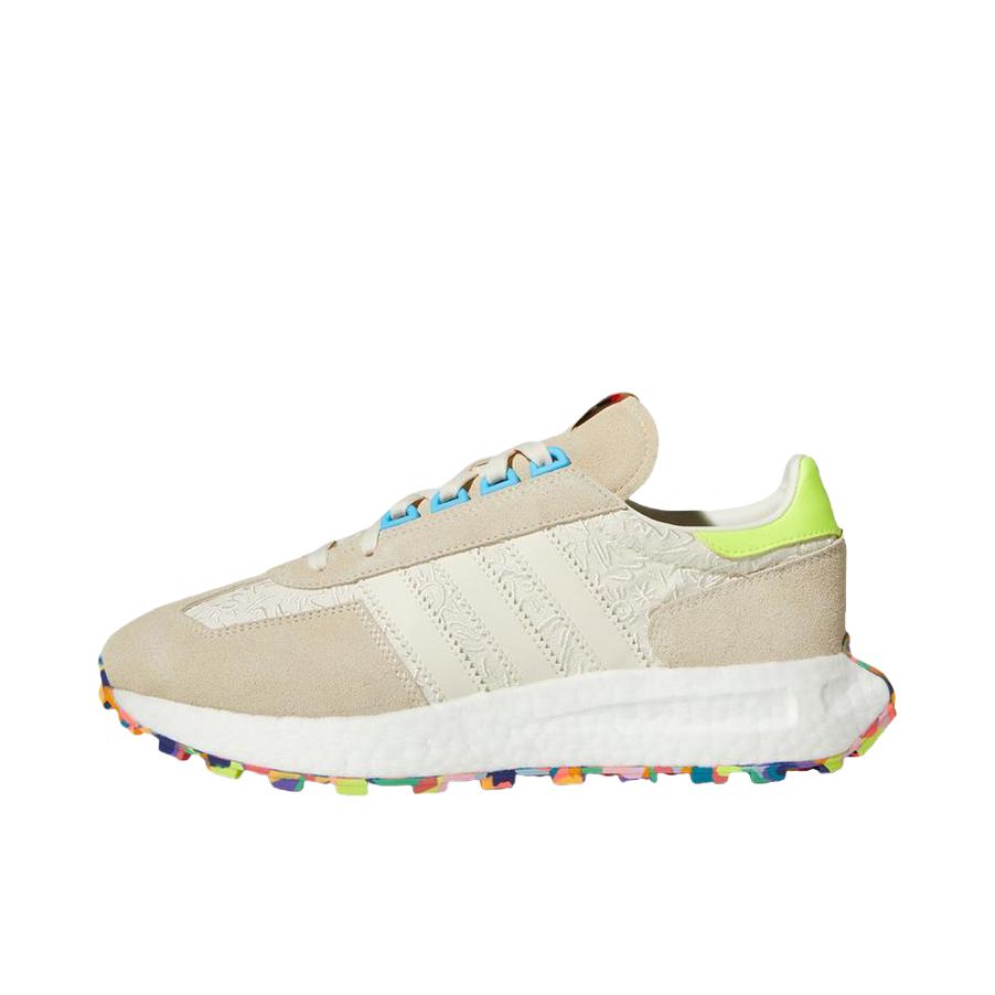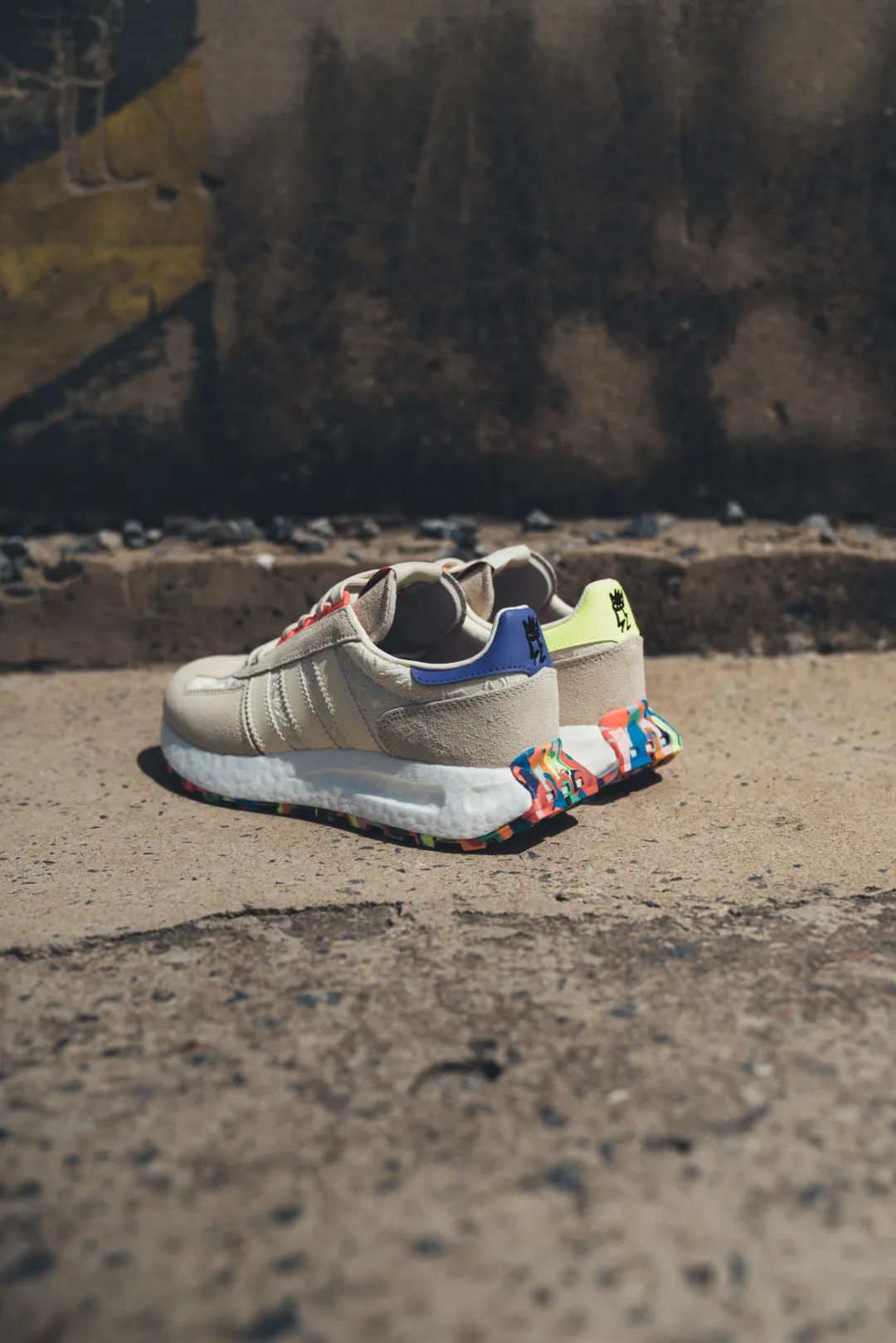 爱让我们相遇相识然后 有了那些故事Retropy E5 Pride,伴你骄傲出行。采用干练的皮革鞋面,缀彩色细节。以经典跑鞋造型为蓝本,搭载Boost技术辅以抢眼的彩色外底,旨在向爱致敬。此次 Retropy E5 推出全新配色,在经典外观基础增添了彩色外底元素,鞋跟印有卡通标识,鞋舌上 LOVE 也在点明本次以爱为灵感的主题。