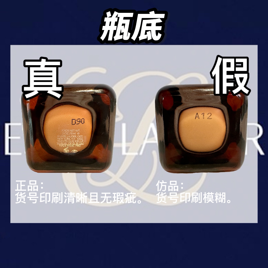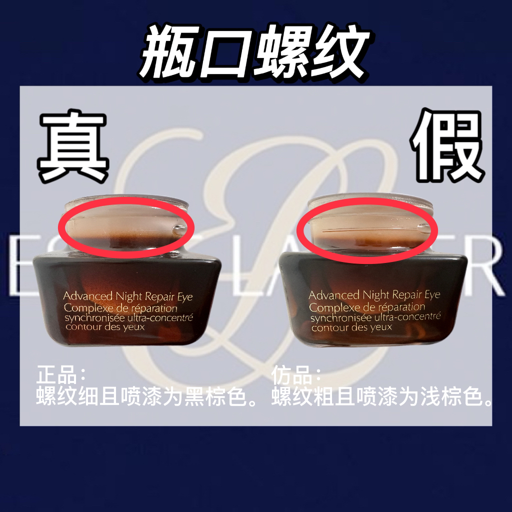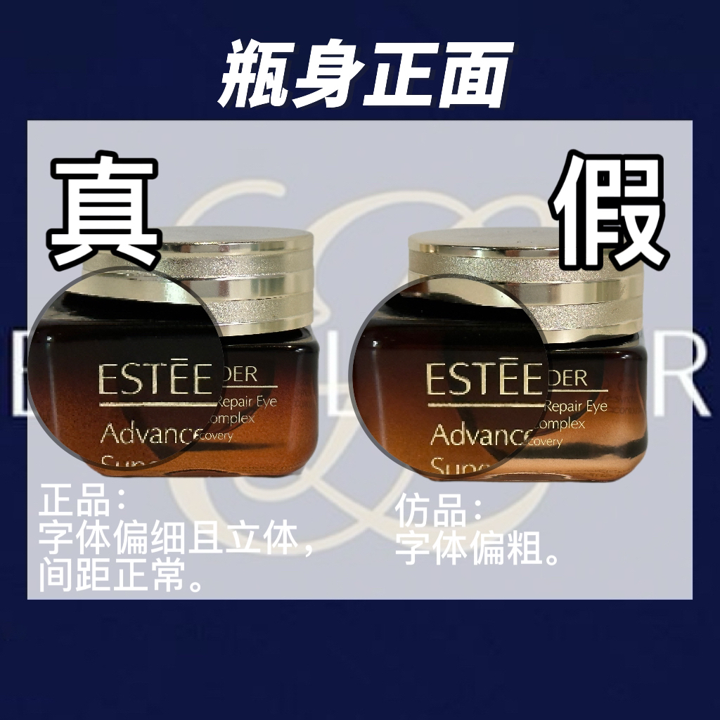 雅诗兰黛小棕瓶眼霜作为大牌眼霜,含有美国专利成分技术——律波肽,可以更精准的淡褪黑眼圈,无论是自用还是送给长辈亲戚都是不错的选择。通过识货购买可享受全网最低价,同时正品有保障,安心购假一赔三。本期正品君就带来一期雅诗兰黛小棕瓶眼霜真假对比!小伙伴们可以跟着正品君一起学习鉴别小棕瓶眼霜。 ①、瓶身正面 ♥正品:字体偏细且立体,间距正常。 ♠仿品:字体偏粗。 ②、瓶底 ♥正品:货号印刷清晰且无瑕疵...