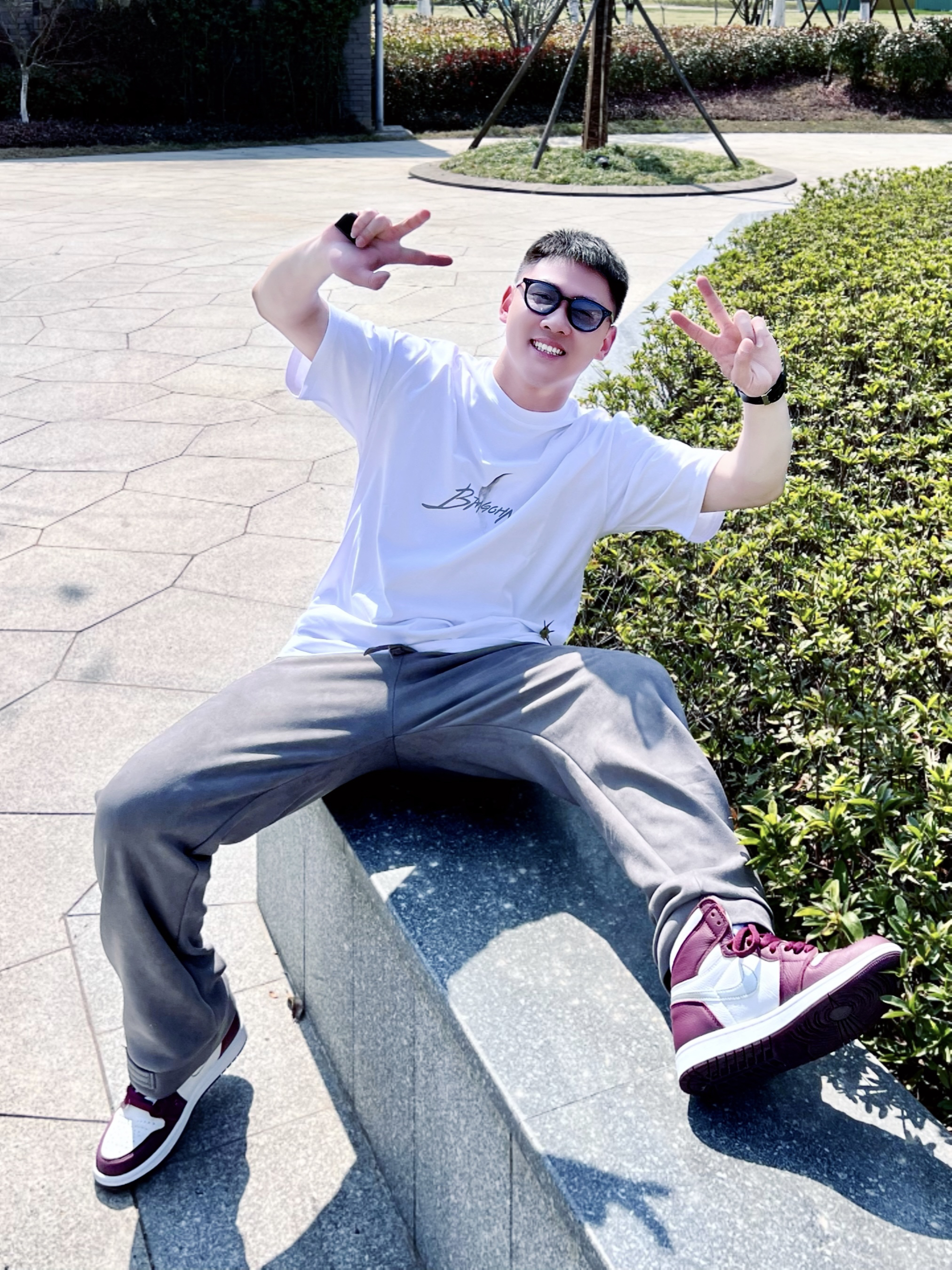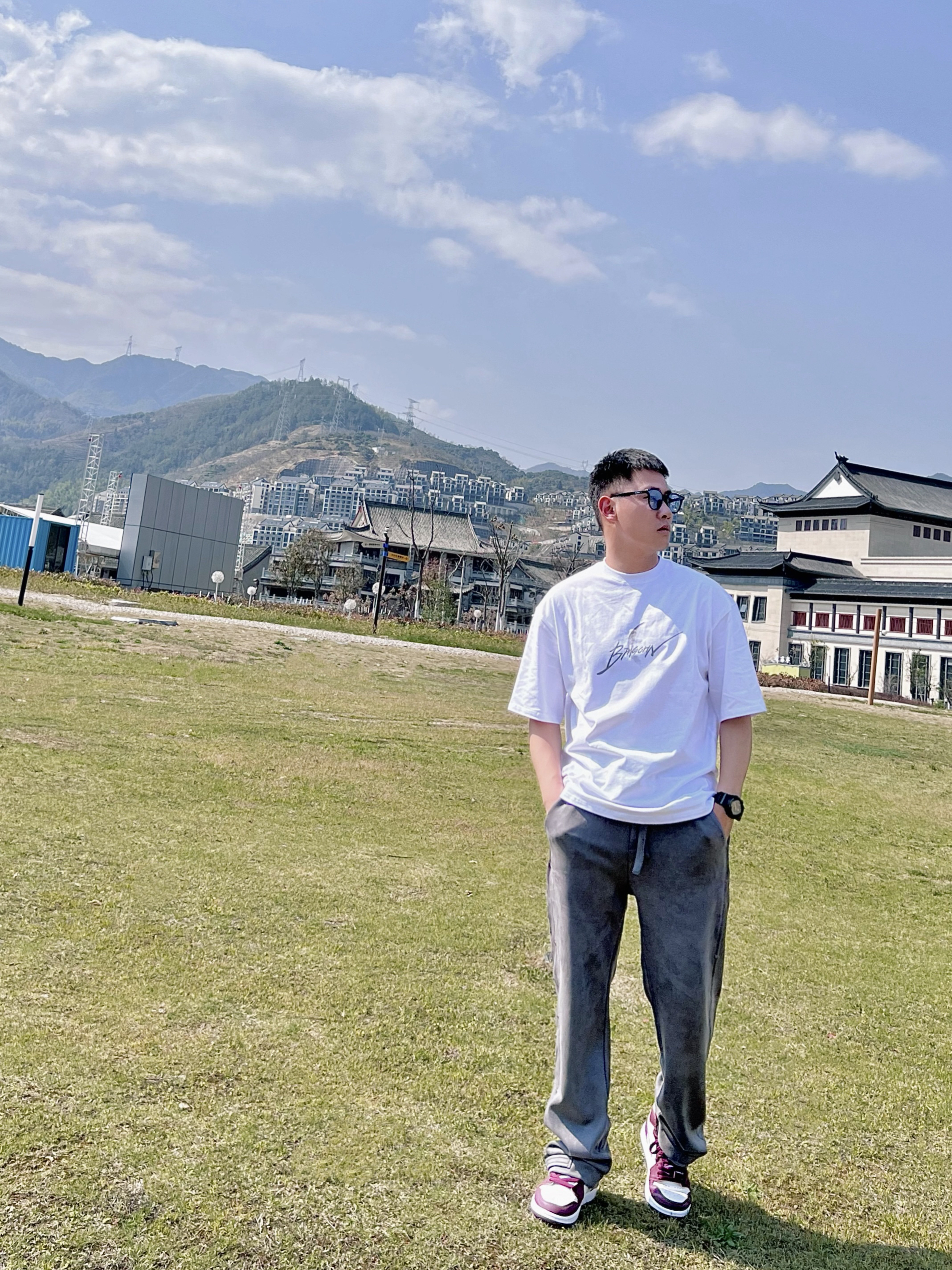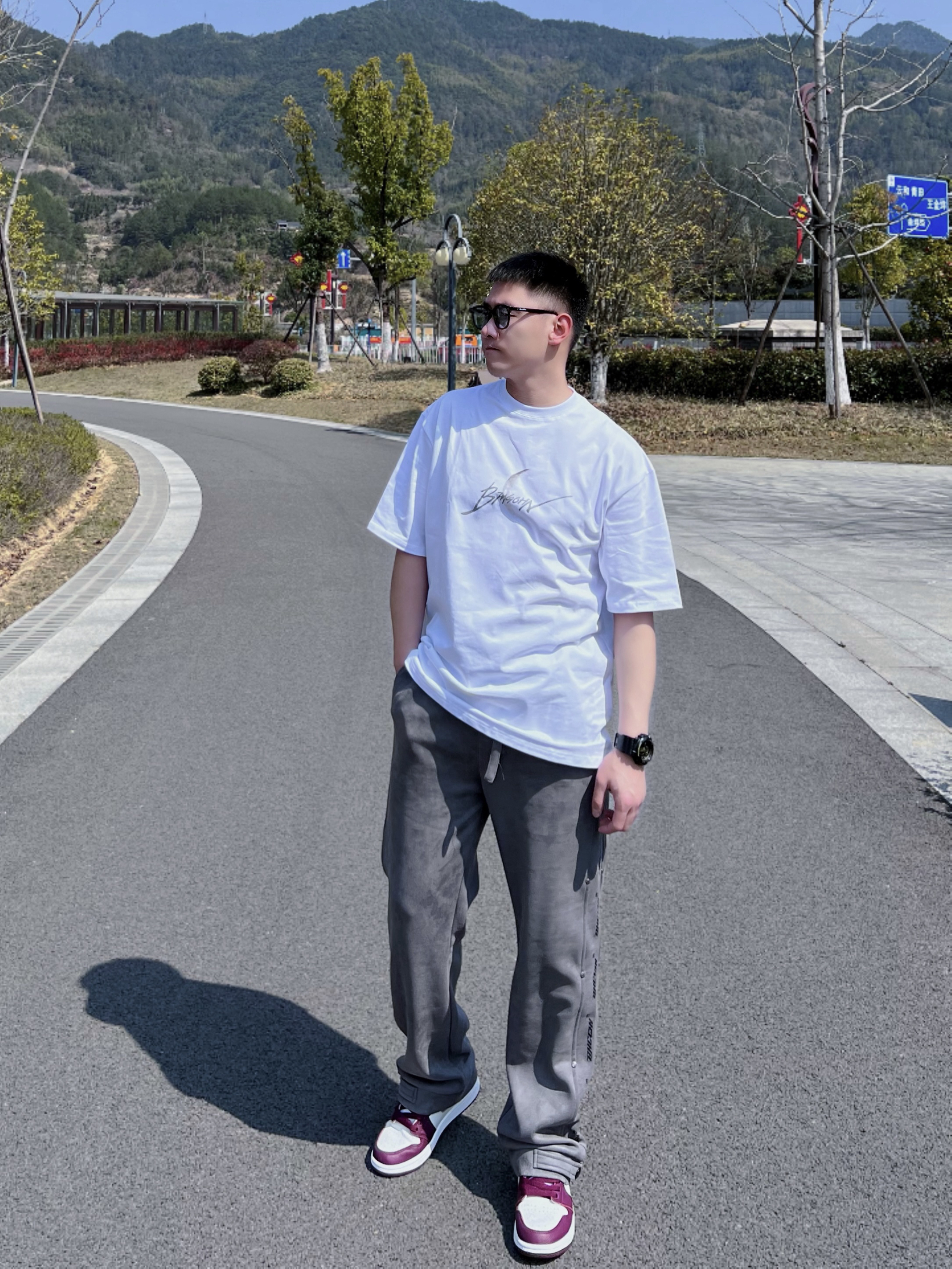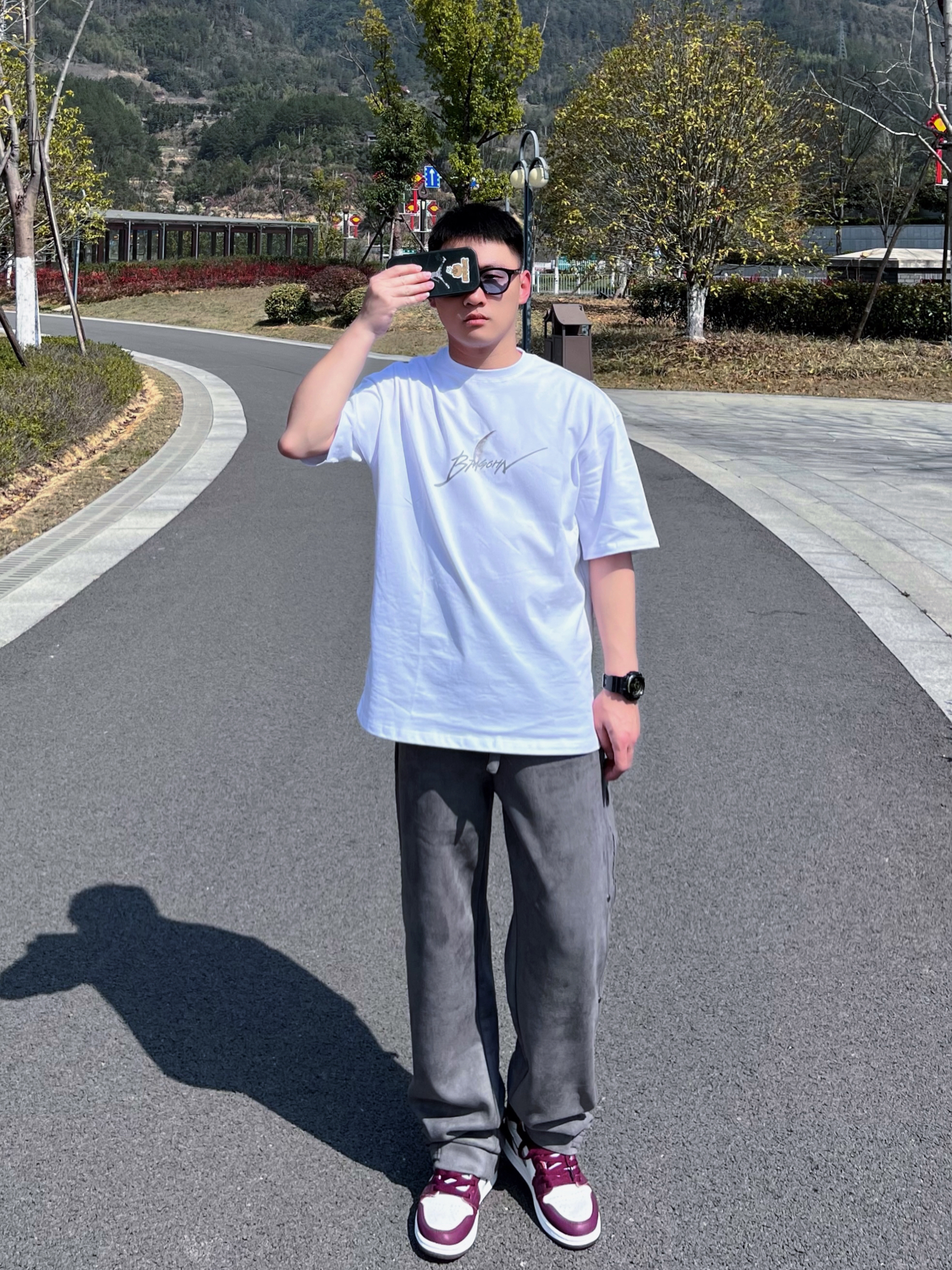 这天气☀️一言不合就是28度,这哪儿顶得住~所以,必须来点短袖了~盯着大太阳🌞就要做阳光男孩是不?一起康康👀吧! ✔️搭配颜色/单品:白色印花短袖/灰色麂皮长裤/暗红色球鞋。整体是灰白色系的搭配,但是因为是麂皮的长裤为了更显质感所以搭配了暗红色的球鞋。 ✔️特点:白色T恤月球印花潮流感偏向比较重的,印花灰色刚好衬托一下麂皮长裤的铅灰。裤子侧边铆钉也是一个特点比较街头气息。 ✔️尺码参考:17...