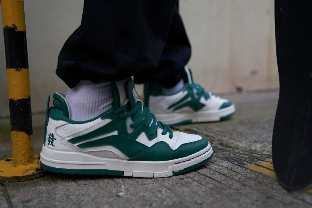 “發” LI-NING SKATEBOARDING 以「發」为创意灵感 将中国传统麻将中的「發」 新年美好祝福的「發」 恭喜发财的「發」一并融合 推出惟吾PRO「發」特别版本 寓意在街头的玩家们 新年在「發」的路上,意气风「發」 设计方面,鞋款以大面积白色与绿色皮革为主调,细节处注入工程网面,在鞋跟处特别加入刺绣的「發」,为新年送上美好祝福。