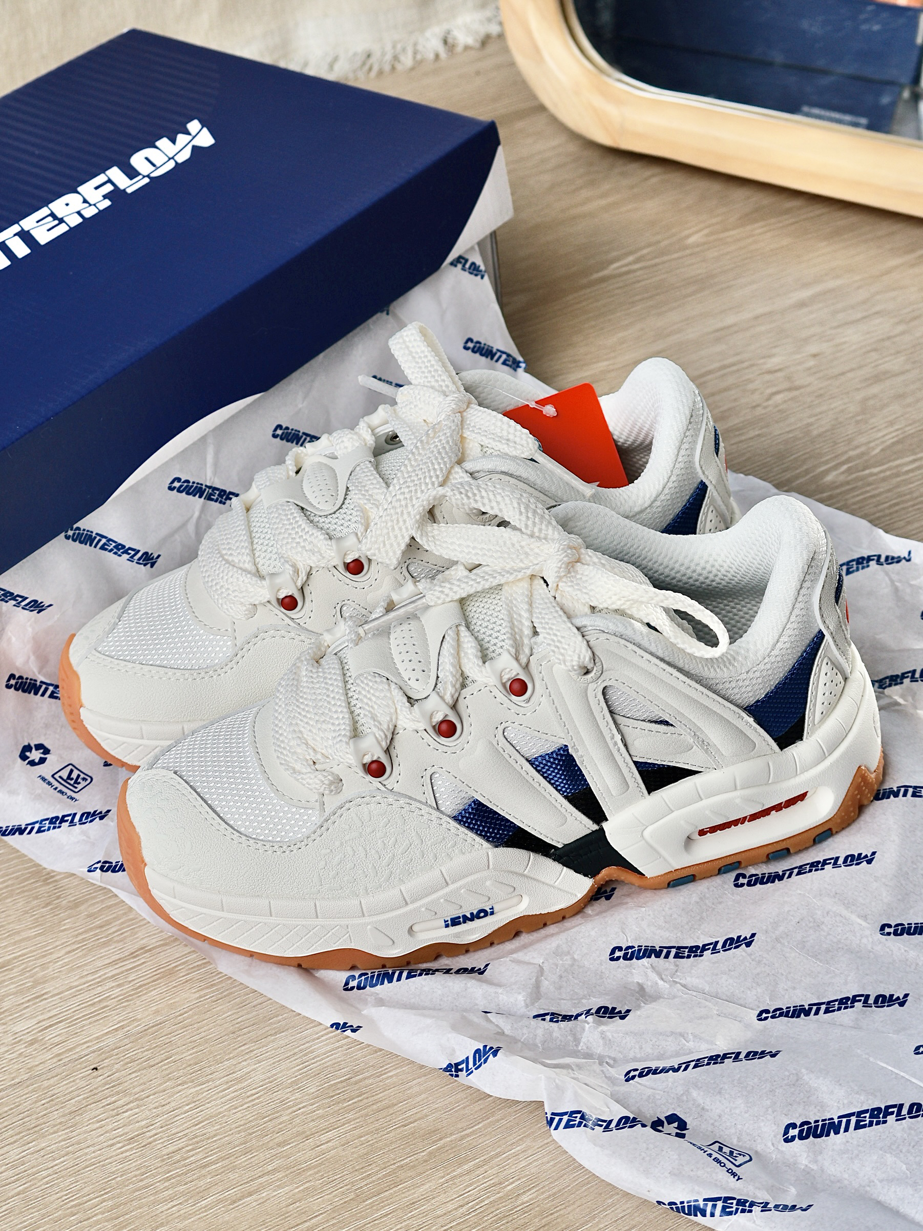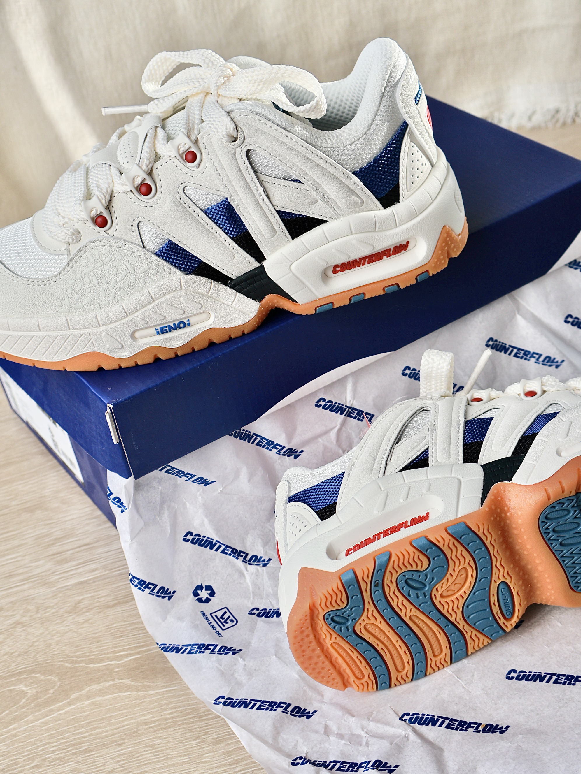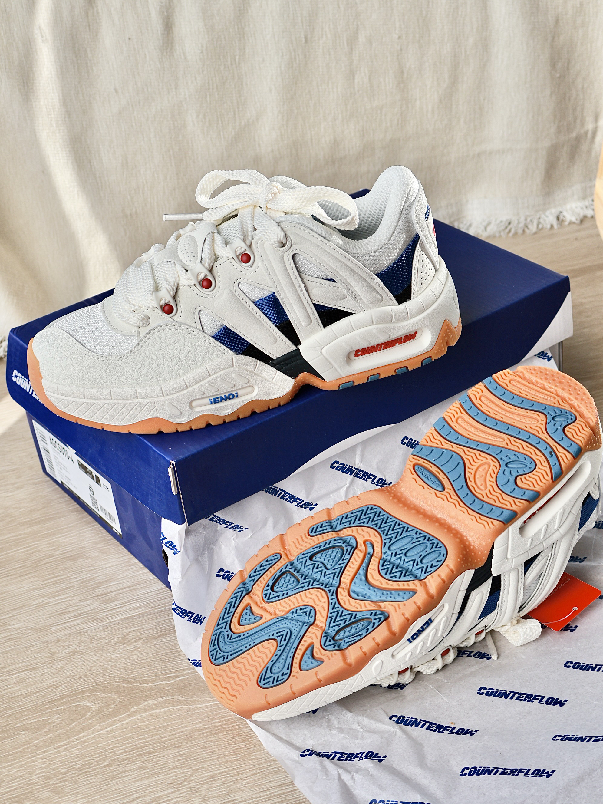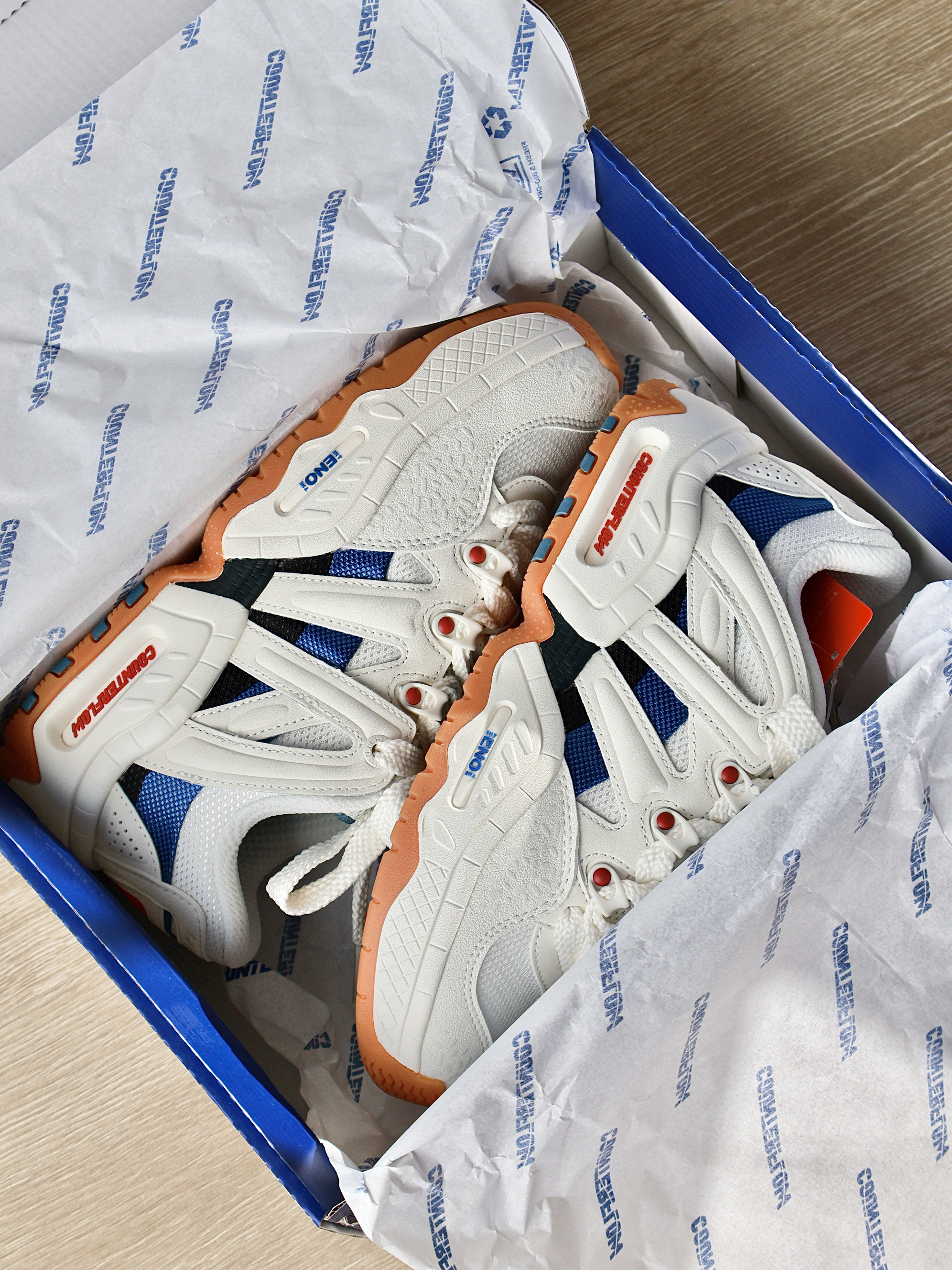 这双是真的有少年感在身上阿! 配色就是清爽又阳光的感觉 鞋型胖乎乎的很可爱!就连鞋底都很出挑阿! 能穿很久很久很久很久!