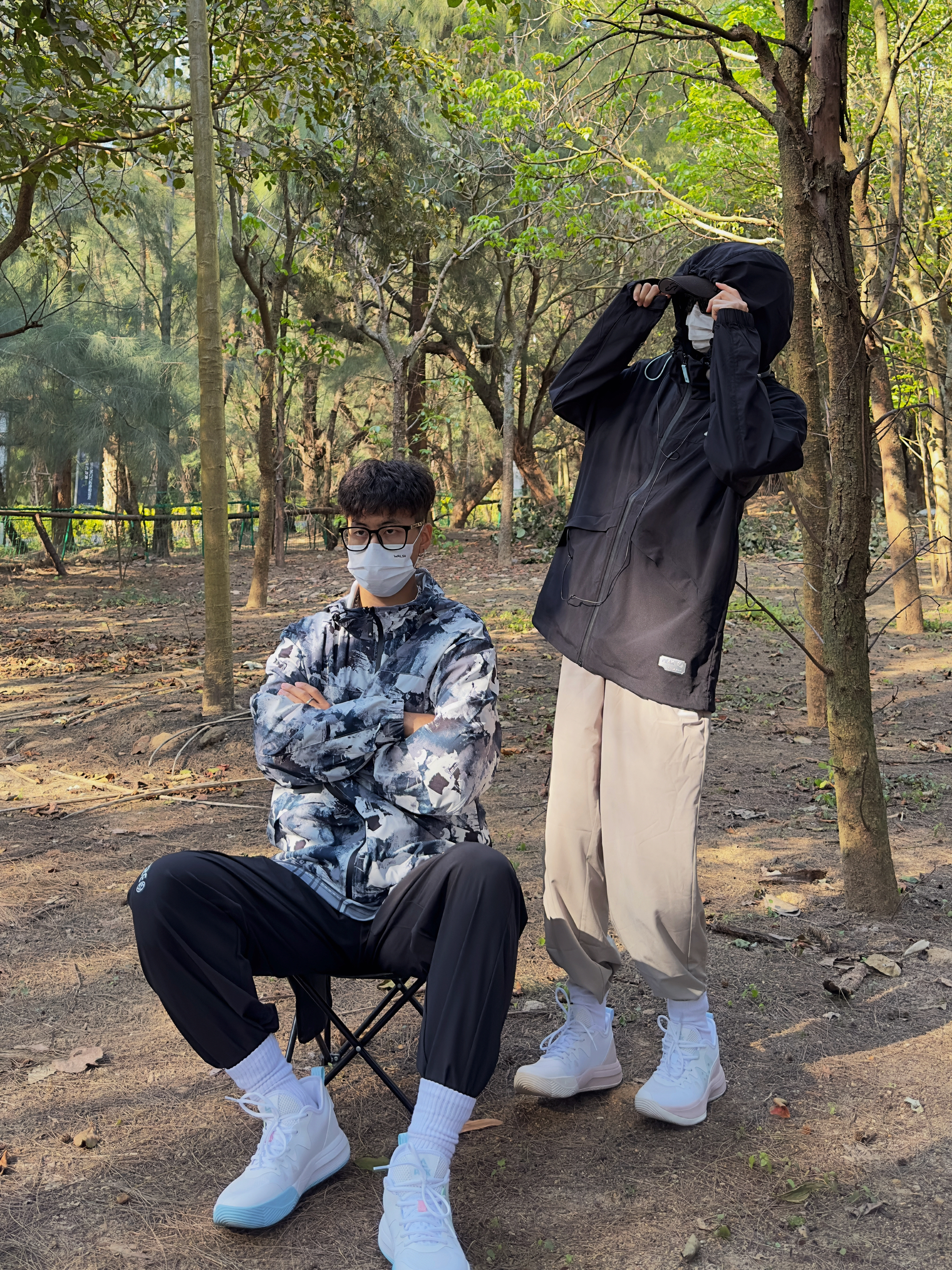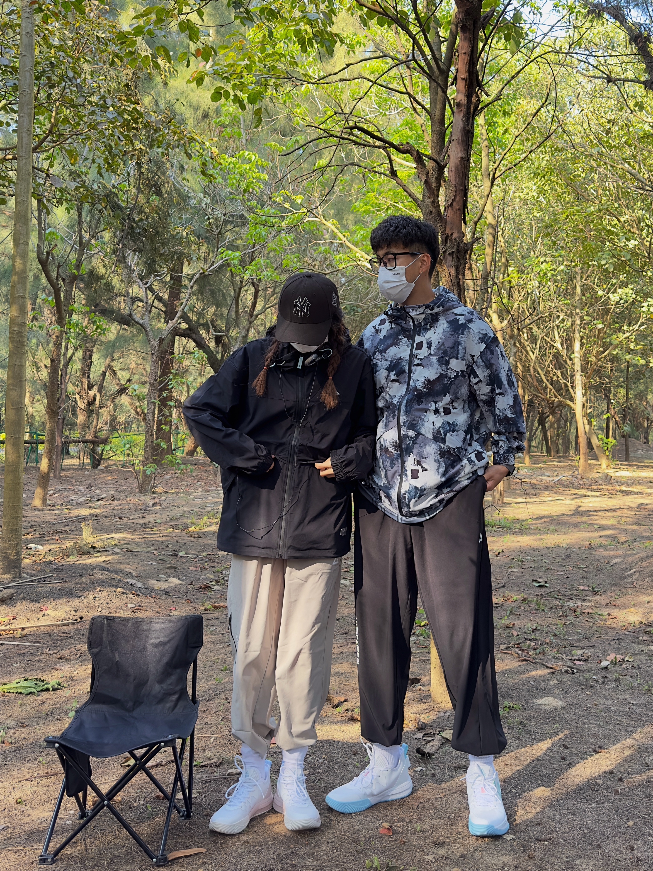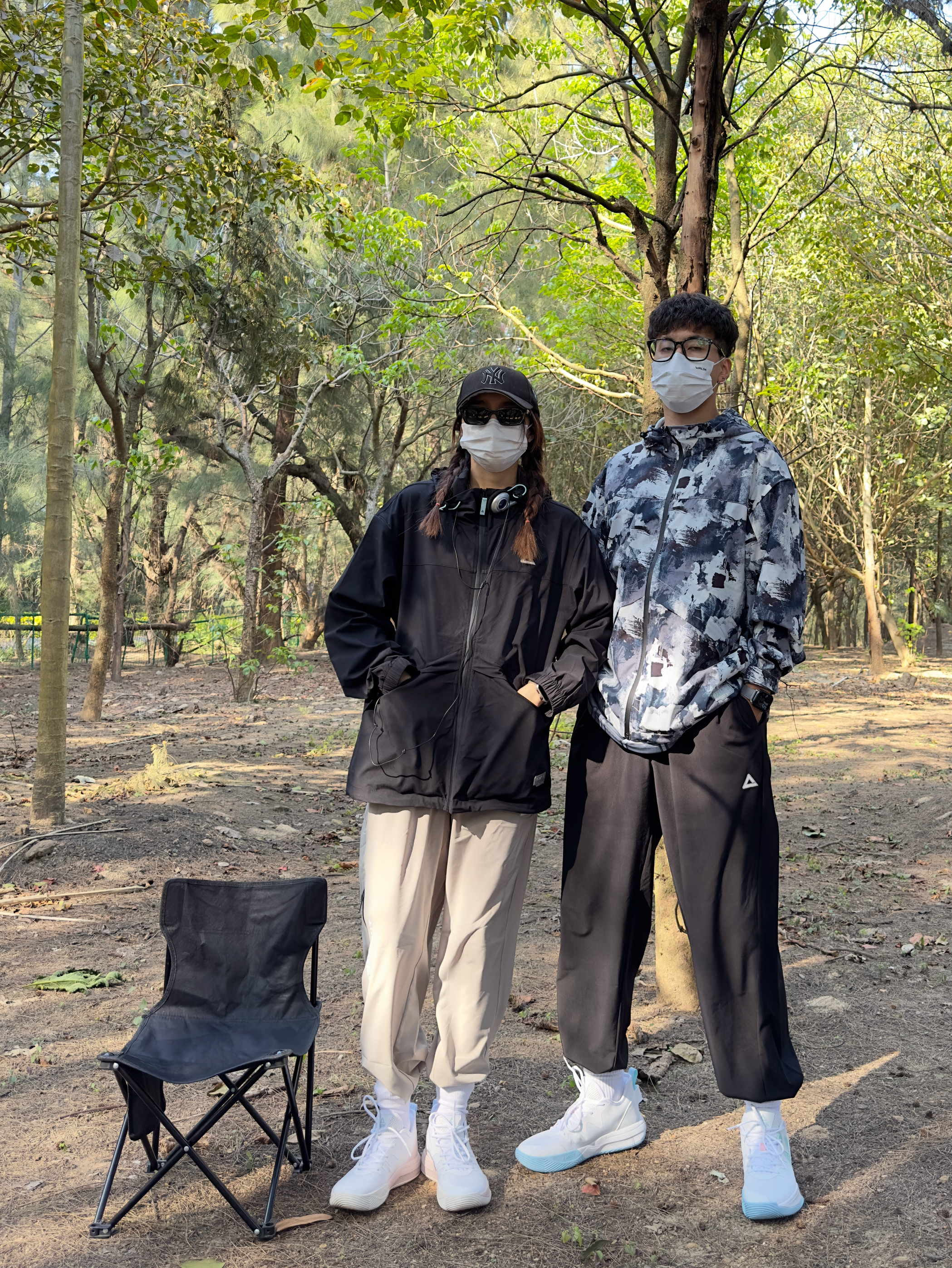 欢迎大噶来到我们情侣穿搭频道📺 👧:168/44 👦:182/70 因为冲锋衣爱上了去户外hhhhh! 春秋两个季节穿的频率最高就是冲锋衣了 黑色🖤的hin 🆒 搭配浅色的运动裤 宗宗穿的是满印的~介个颜色更适合他 搭配了黑色的运动裤 和我的上衣呼应~ 一起穿了情侣球鞋 一整套好喜欢耶 很山系 趁周末有空,一起去户外吸氧吧🌲🌲🌲