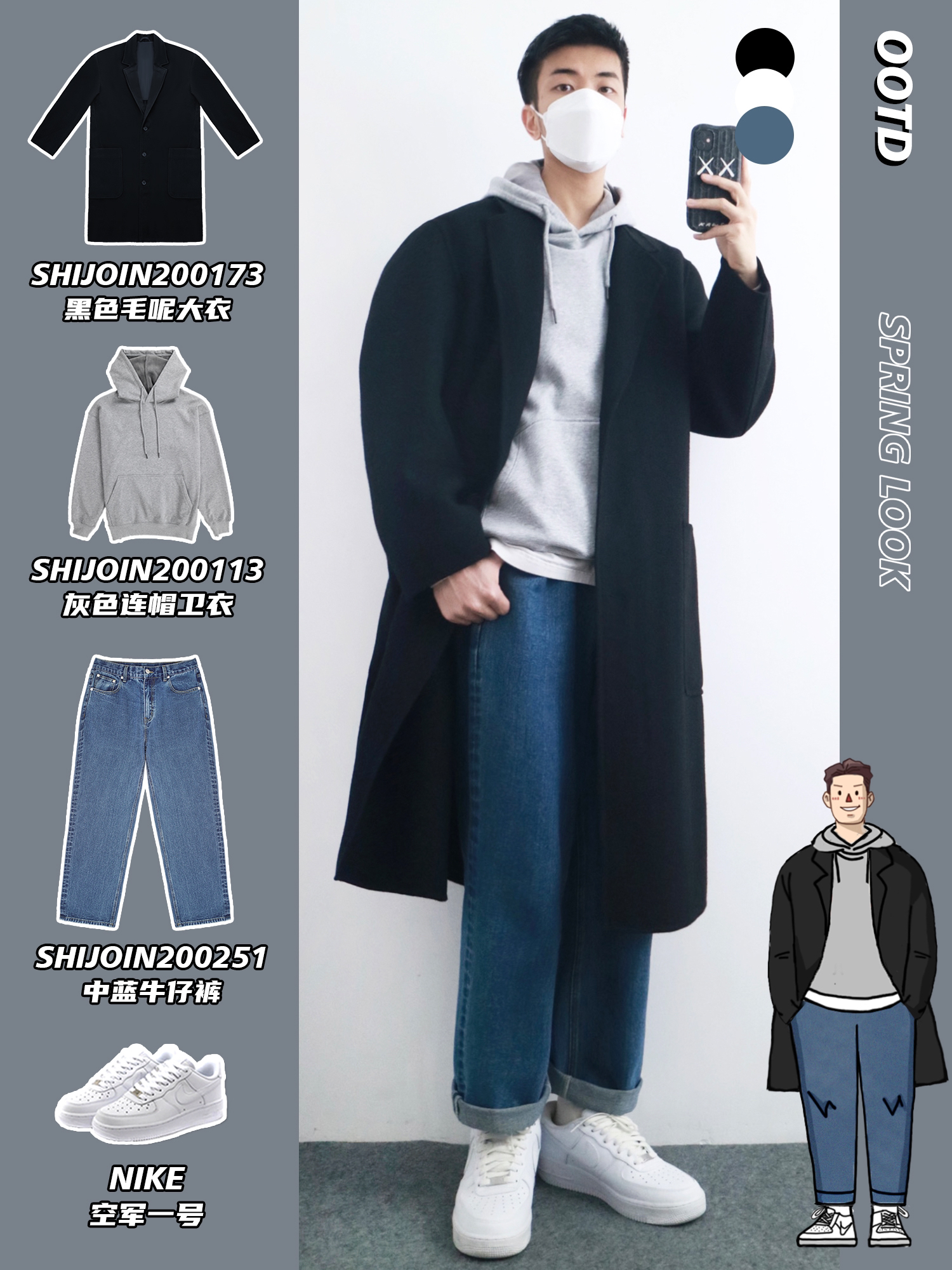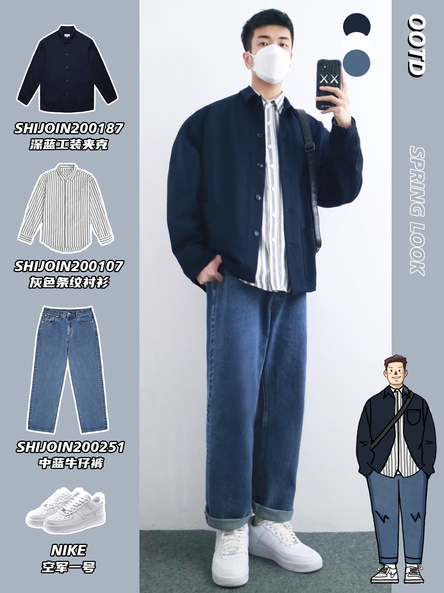 hello,穿衣显瘦脱衣有赘肉的小梁🙋来了! 春季的日常通勤单品👔可以选择基础简约的款式,是和叠穿〽️的季节当然要利用起来,本期小梁分享5️⃣套日常通勤穿搭,早八人的穿搭公式来了✅显高得体,简约又利落🔅 - look1️⃣ 深蓝工装夹克+灰色条纹衬衫+中蓝牛仔裤 look2️⃣ 杏色卫衣+浅蓝条纹衬衫+深蓝休闲裤 look3️⃣ 黑色棉服+灰色连帽卫衣外套+黑色束脚裤 look4️⃣ 黑色毛呢大衣...