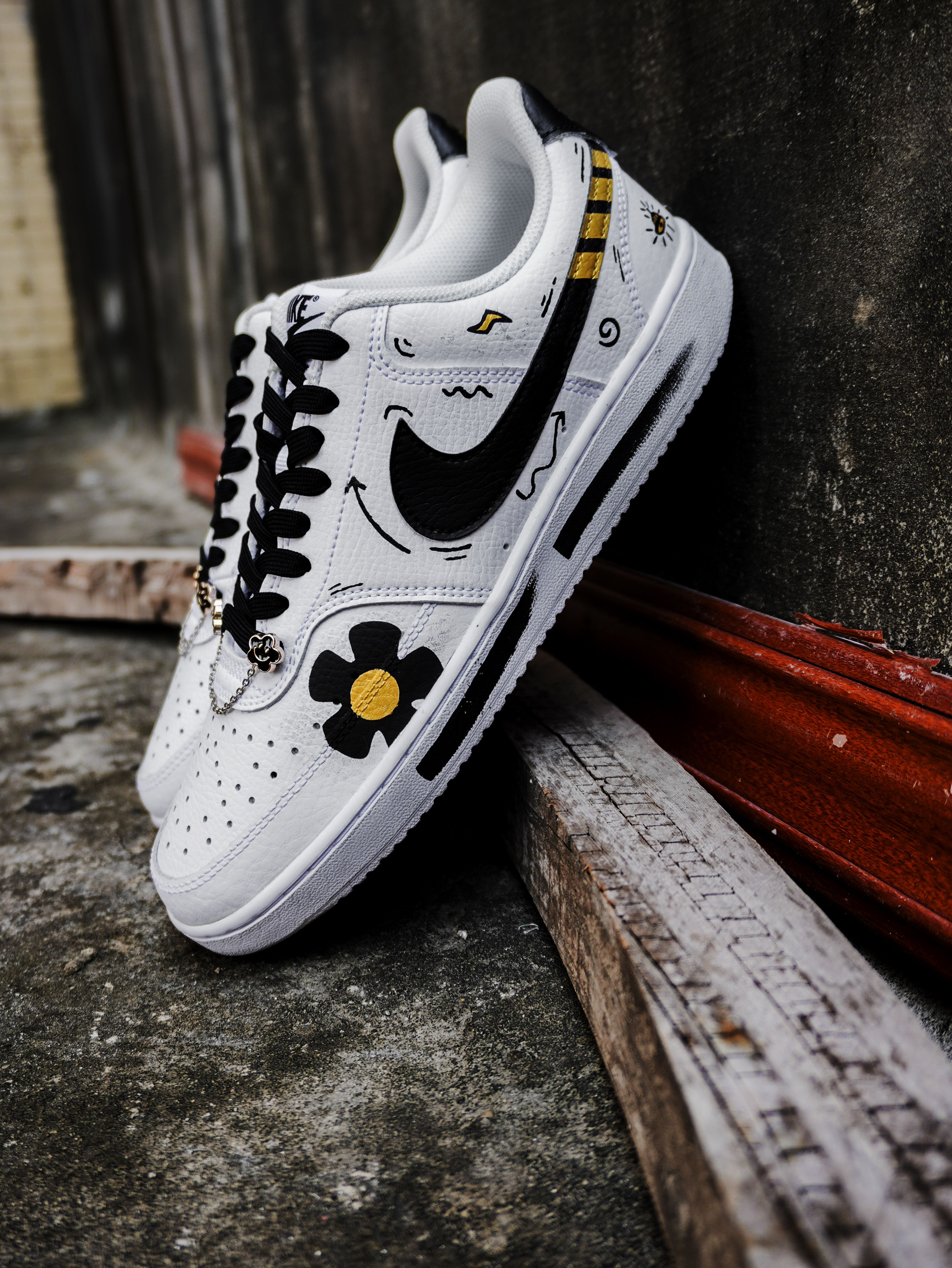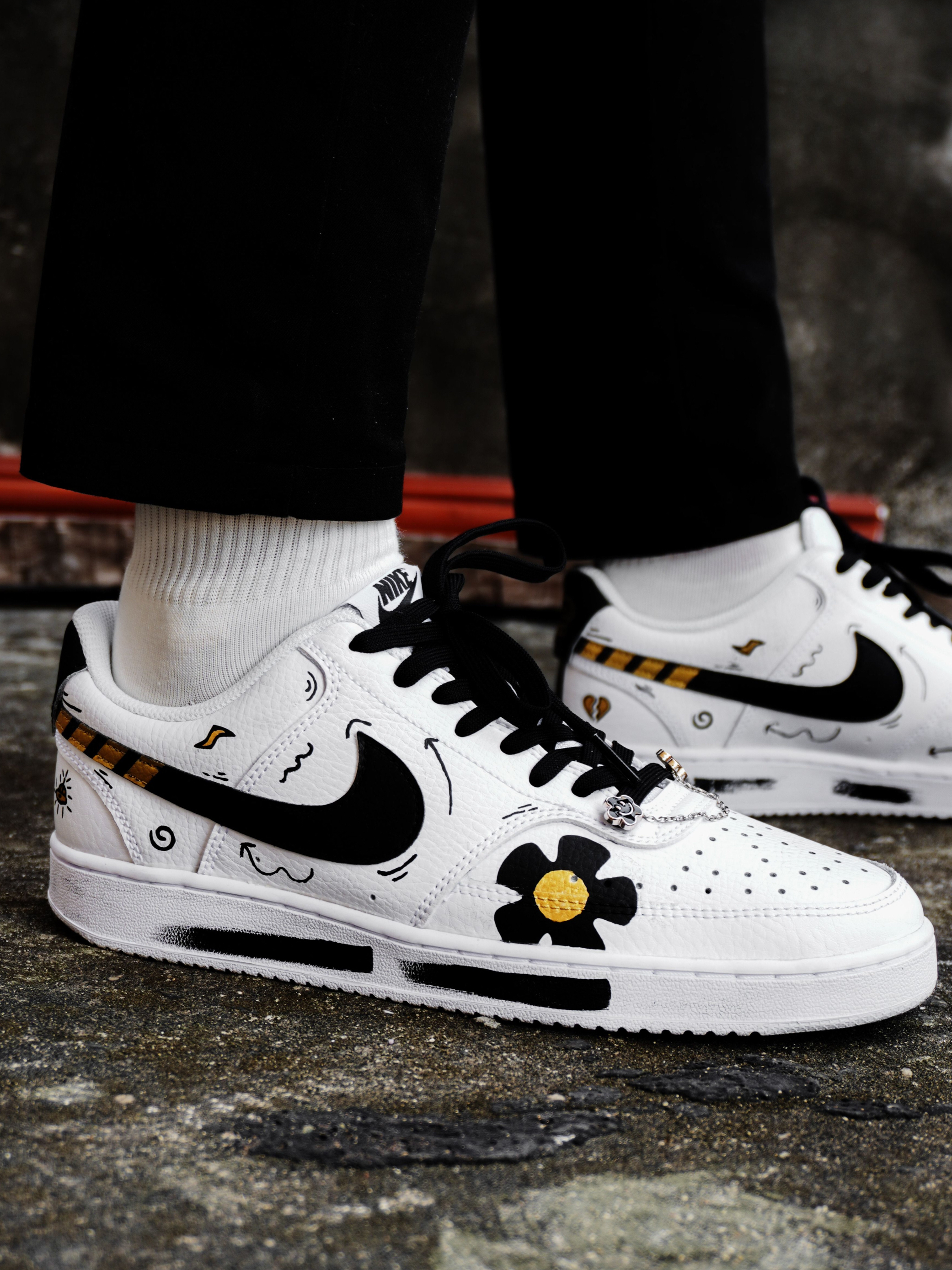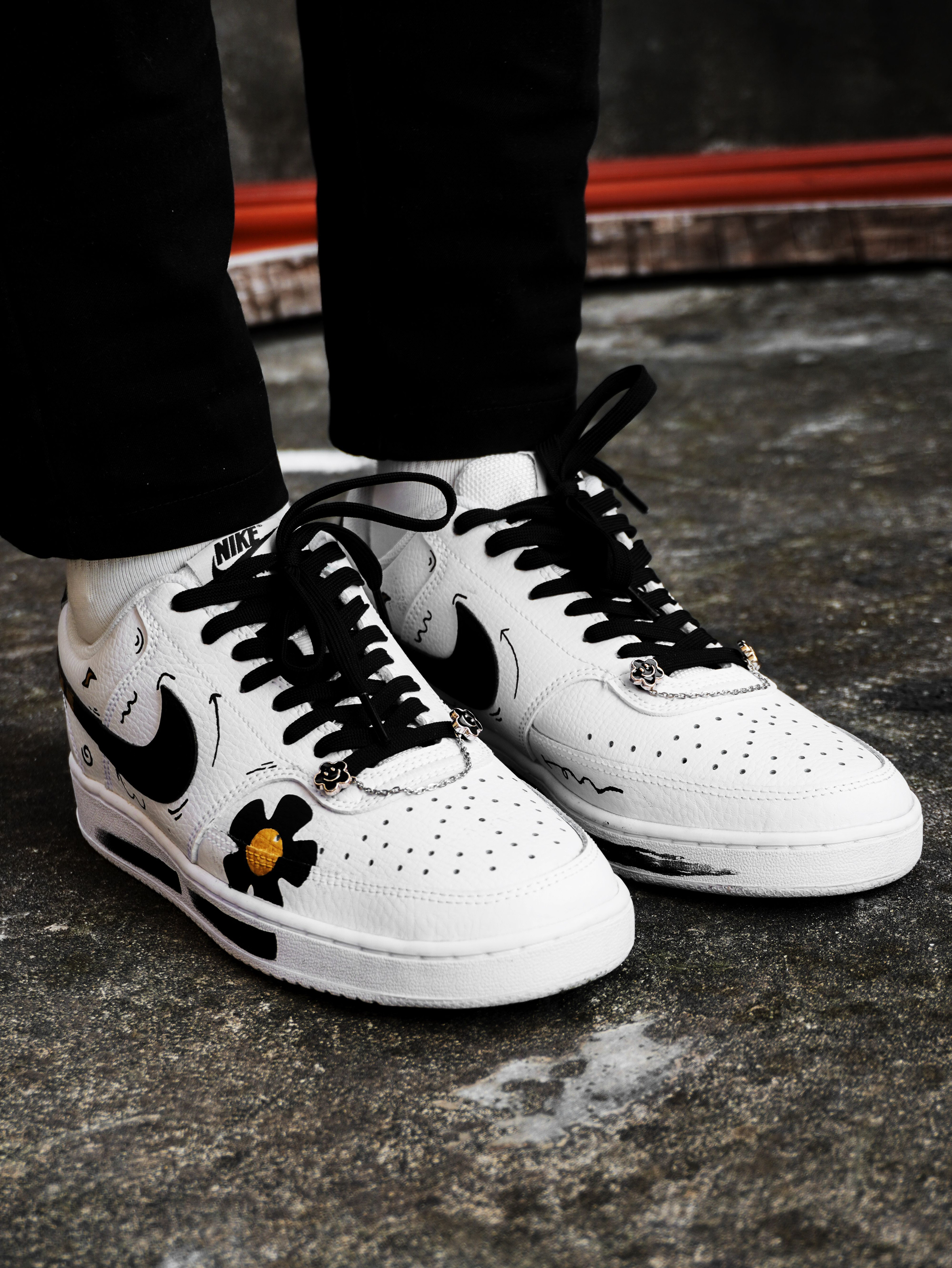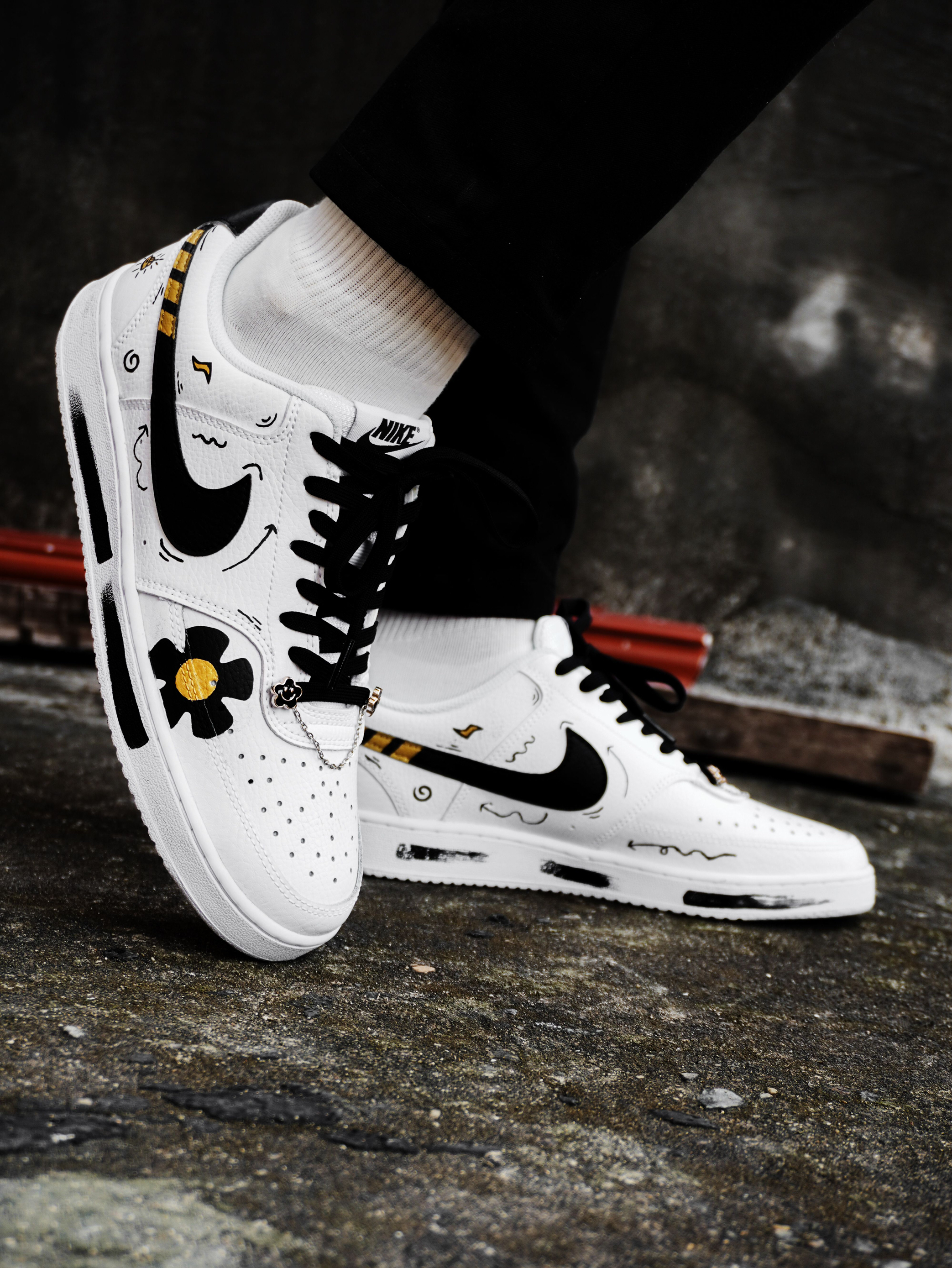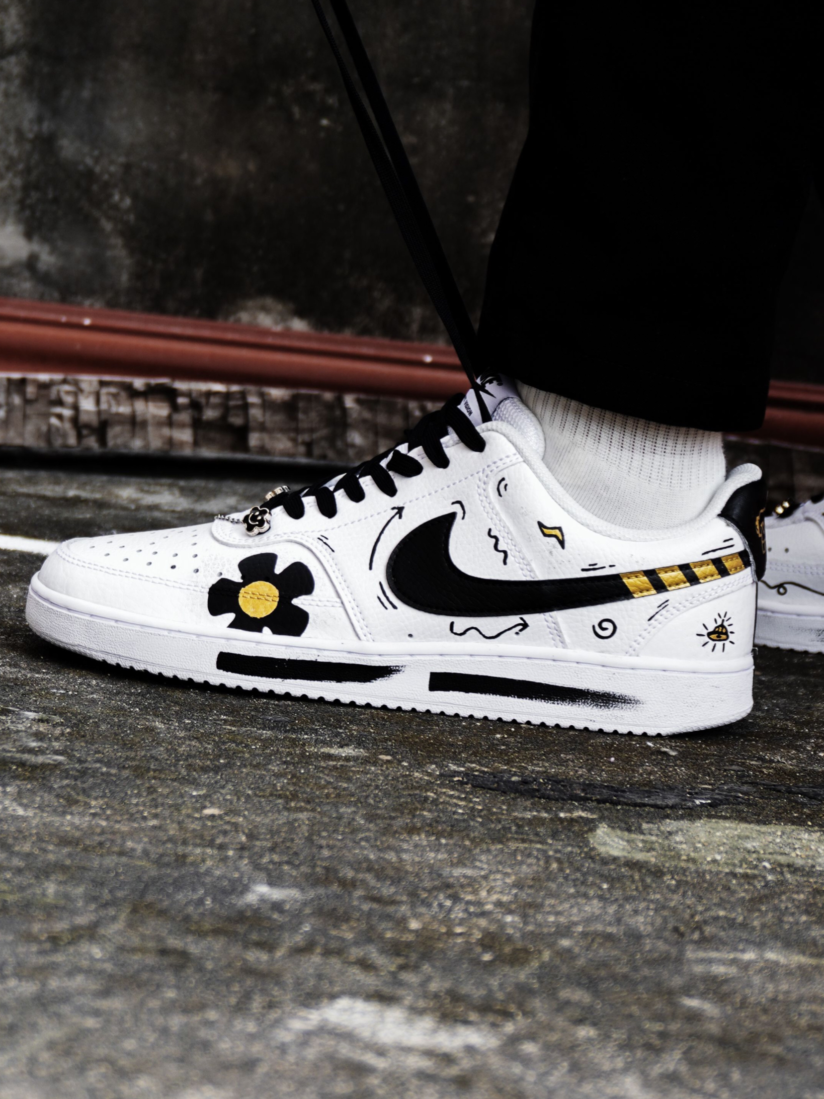 开箱即分享、今天为大家开箱一款高颜值自穿休闲好鞋!便是这款Nike Court Vision Low特殊定制版👀废话不多说、让我们一起来看一下: 鞋子采用了经典百搭的白黑配色并加了一些金色点缀、在鞋面上也是别出心裁的加入了梅花♣️、爱心💗、小图标⤵️⤴️等一些动漫彩绘涂鸦、鞋侧的Swoosh吸睛度也不错✨鞋带前面的太阳花锁链⛓也是一个靓点❤️后跟处也做了机器人🤖️的不对称设计、整体的外观颜值还是...