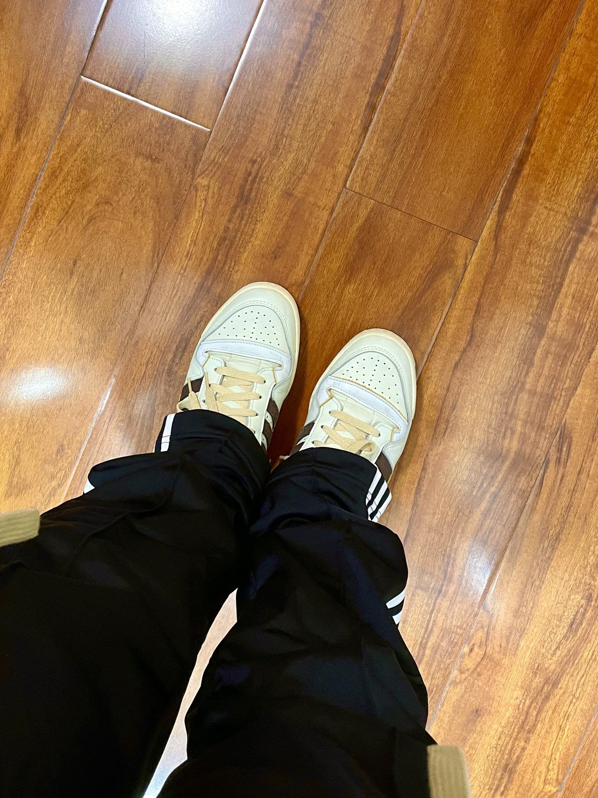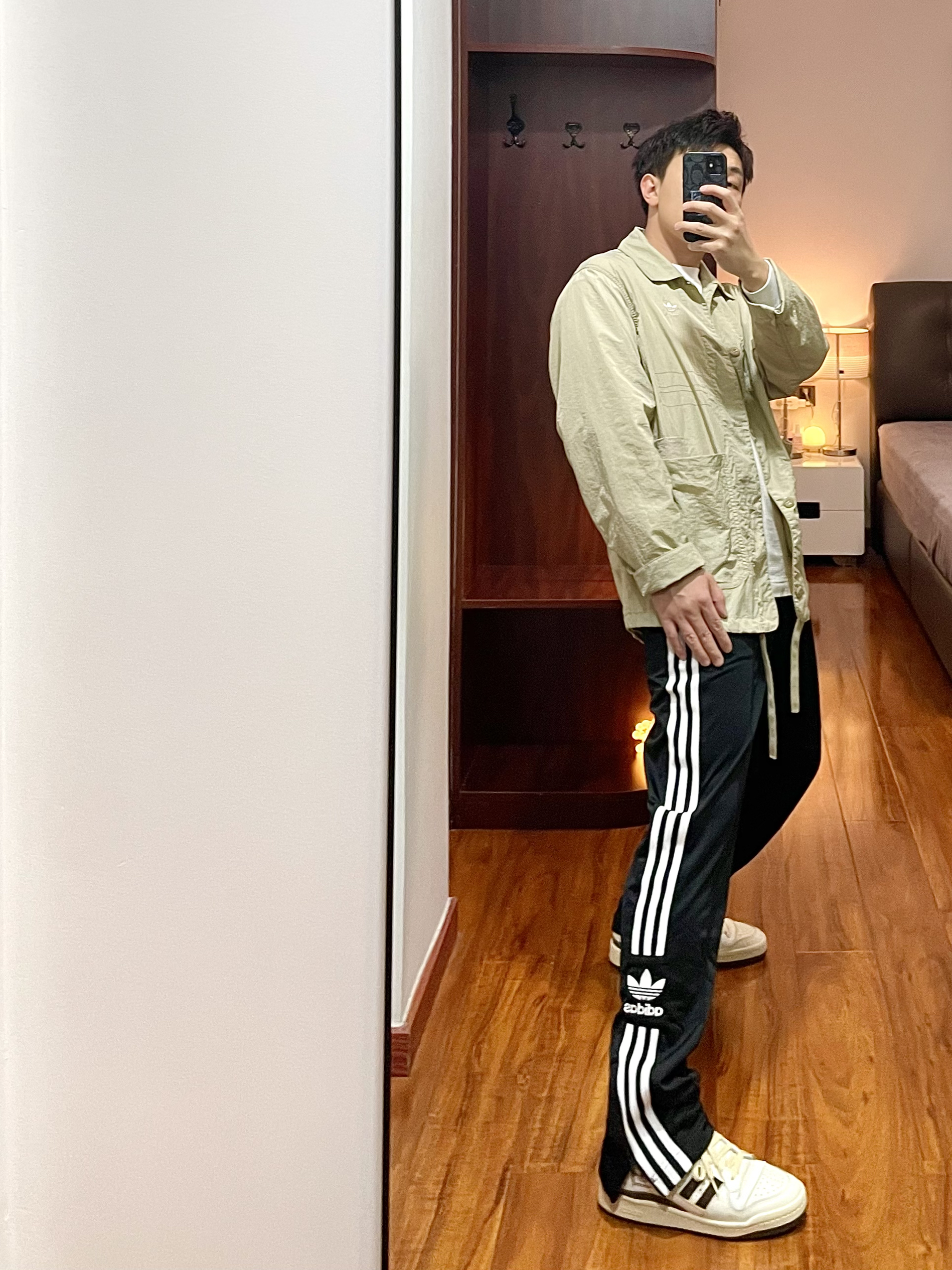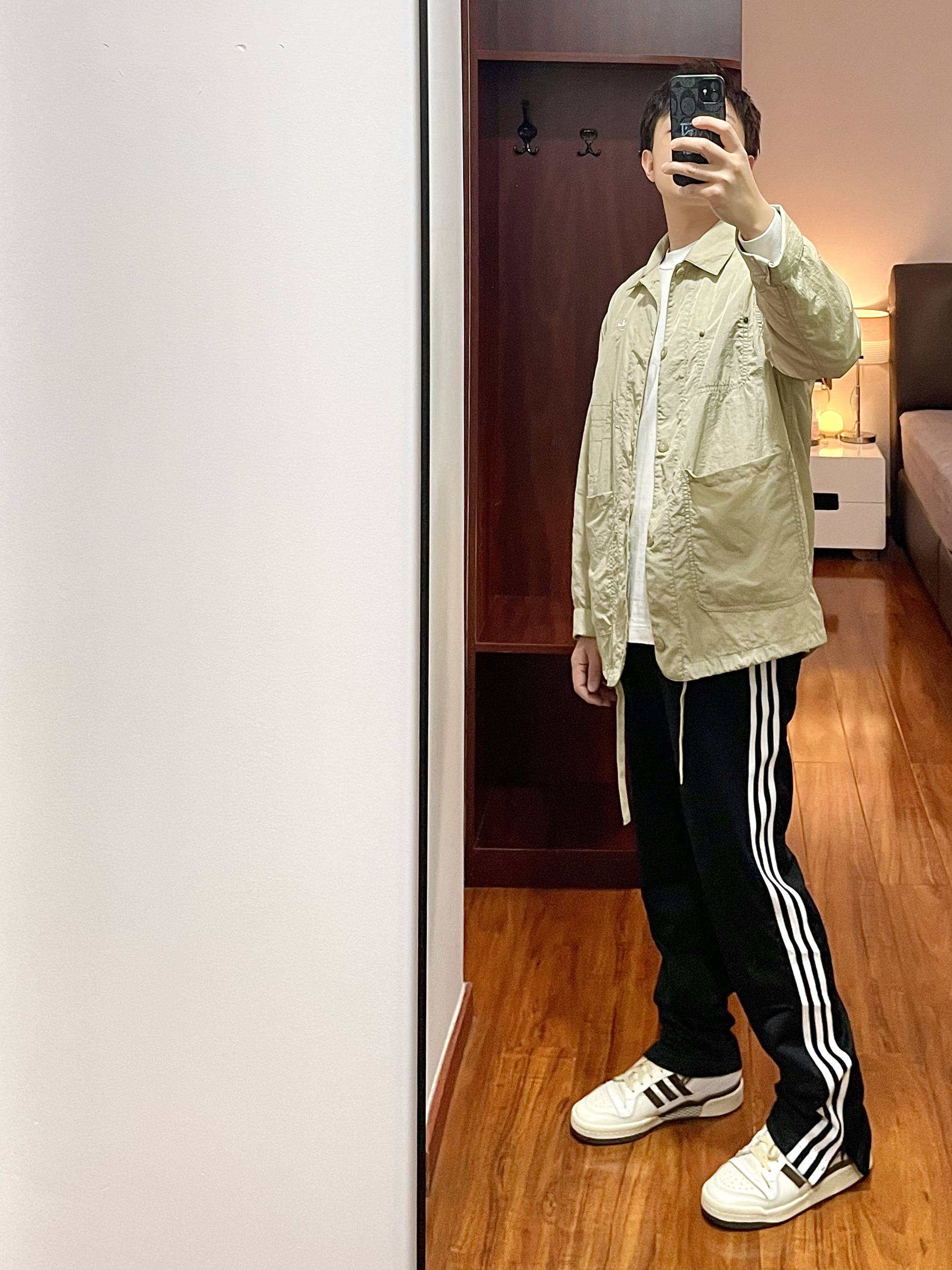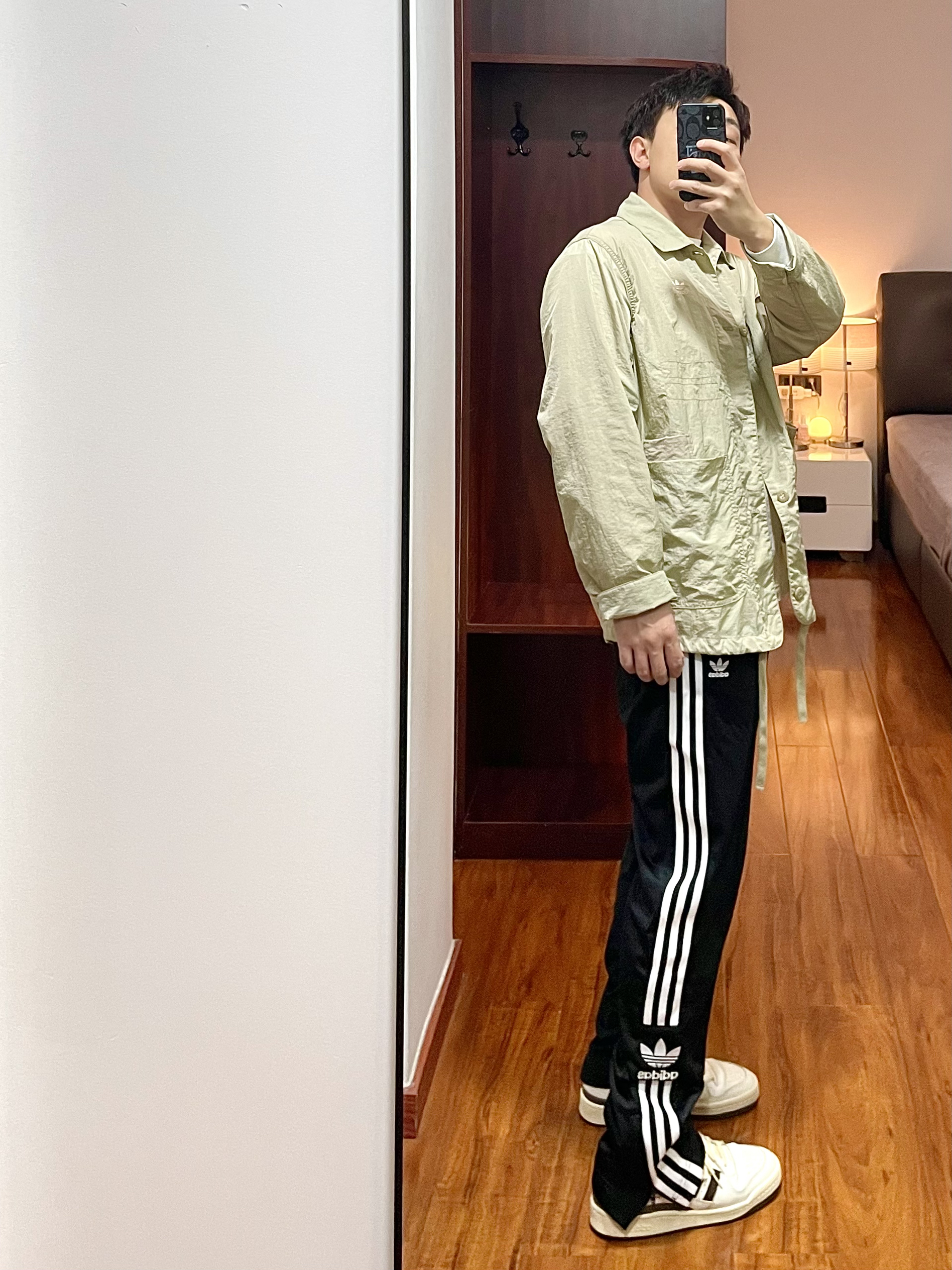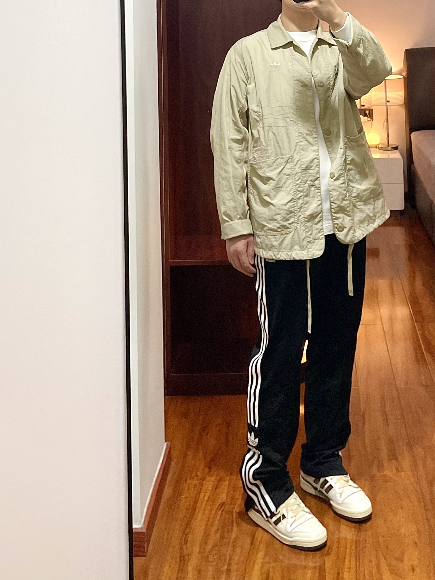 170/135斤 一个普通人的穿搭分享 👔:Adidas 运动夹克HM8015 S码 浅卡其色,面料是梭织的比较轻薄,通风透气现在回暖的天气内搭一件T恤就可以了,尺码是偏大的。 👖:Adidas 运动裤FU1733 XL码 裤子是女款,版型男女可穿,裤脚处有拉链有高街风的效果,侧边的边条logo很帅,面料不厚春季可穿。 👟:Adidas forum84 白棕色 41码 做旧泛黄白色鞋面,魔...