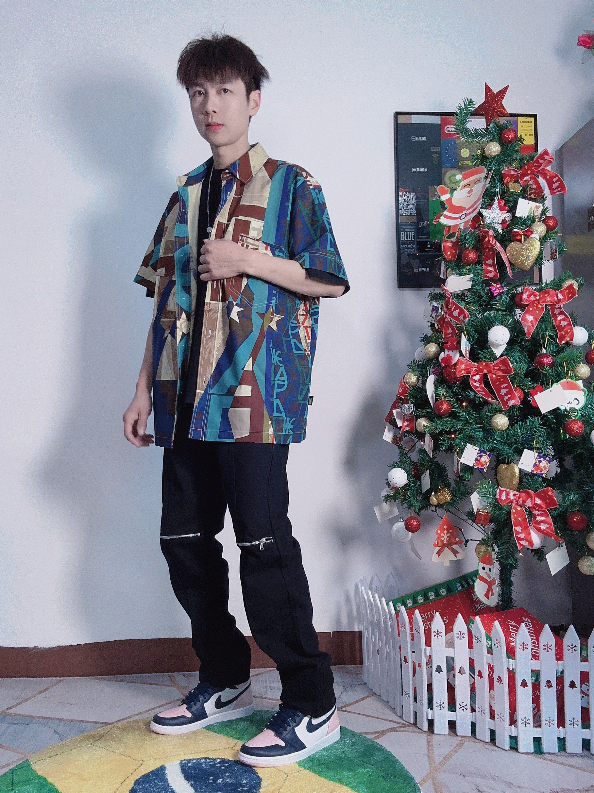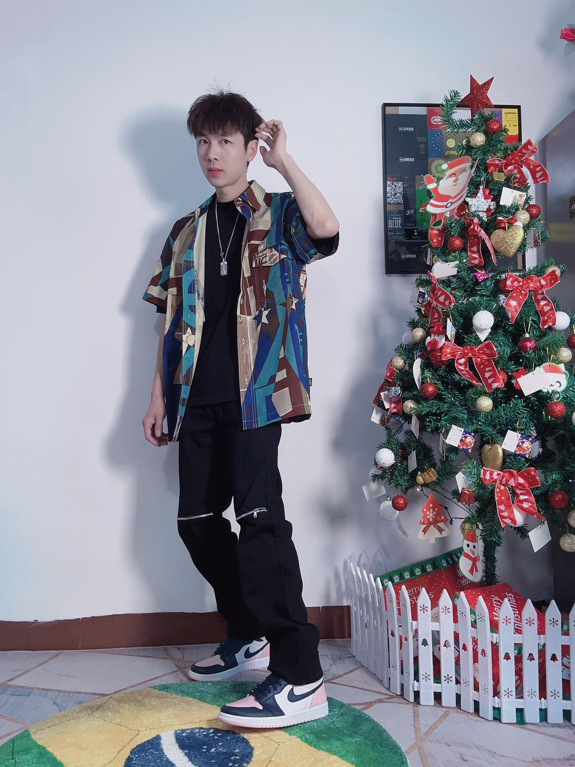 175cm/60kg 男孩日常穿搭😉 工装风➕黑色系get初春街头穿搭✌️ 今天分享这款细节与质感超棒的AJ1“泡泡糖”穿搭。 黑色T恤➕印花衬衫搭配黑色牛仔裤 这双鞋子本来很亮眼,所以来件印花衬衫色彩对撞😘 上下都有亮点……😘 今天的整体搭配能打几分❓