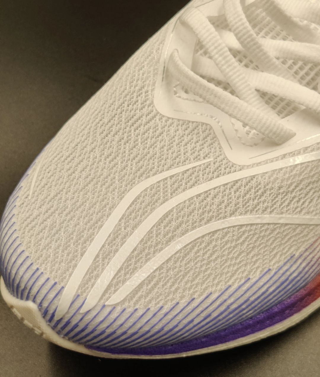 鞋子外观方面:颜色搭配显眼,侧边采用紫色,橙色,蓝色渐变处理,也是配色叫多巴胺的来源,鞋子整体成流线型,非常具有速度感,尺码正常选择。 鞋面:和赤兔5pro夏季版相似鞋面,轻薄透气,缺点是轻微强度不足,长时间穿着可能会破损 中底:开放式全掌靐加后掌LU材料,缓震足够。 大底:从TUFFRB更换为GCU止滑大底,兼顾防滑和耐磨 赤兔6pro最为最新的一版赤兔,全面做了升级,并且上市就来到了300价格...