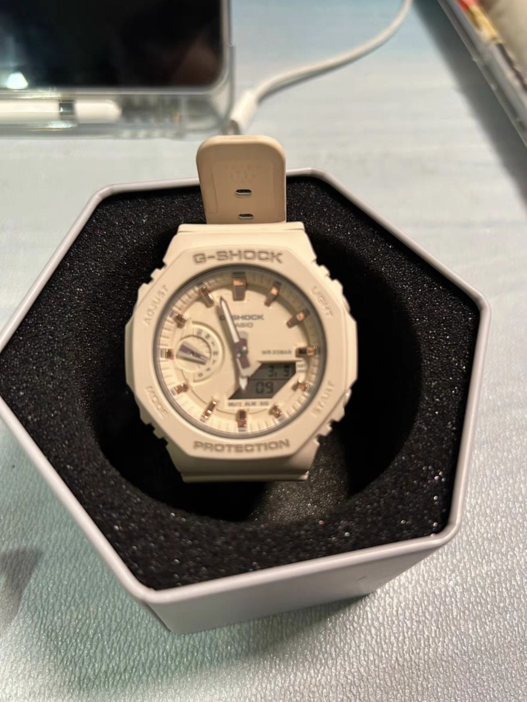 本篇笔记关联了Casio/卡西欧 树脂表带八角农家橡树时尚运动防水防震石英情侣对表 黑色+粉色 GA-2100-1APR+GMA-S2100-4APR等商品,为用户提供真实的使用体验和购买参考。