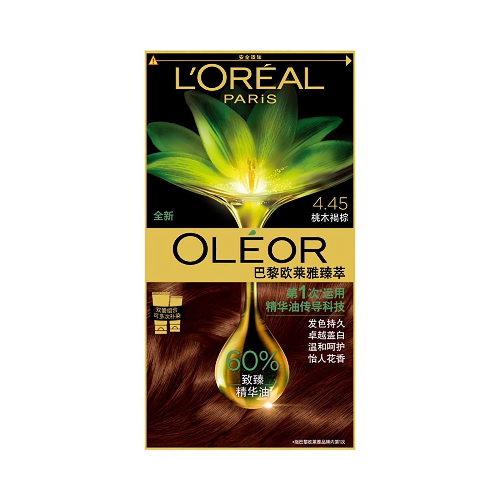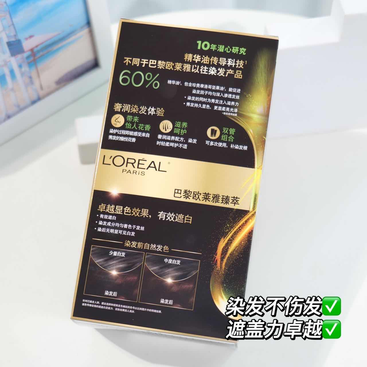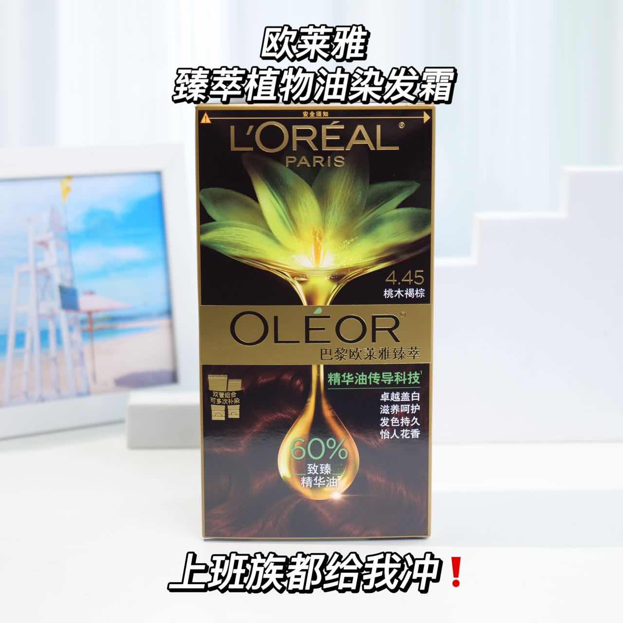 本篇笔记关联了L'OREAL/欧莱雅 臻萃染发膏 精华油天然植萃遮盖白发 4.45桃木褐棕等商品,为用户提供真实的使用体验和购买参考。