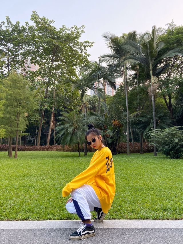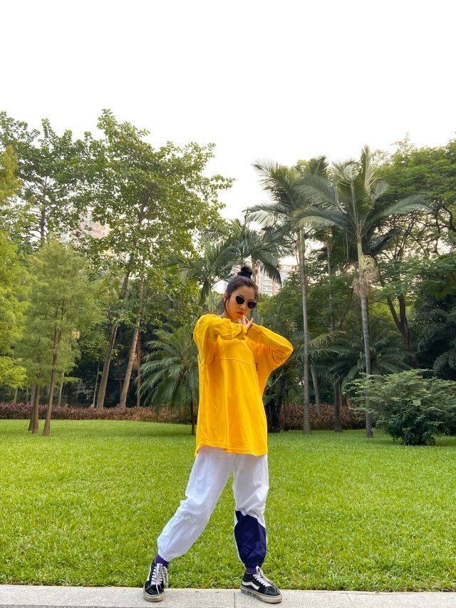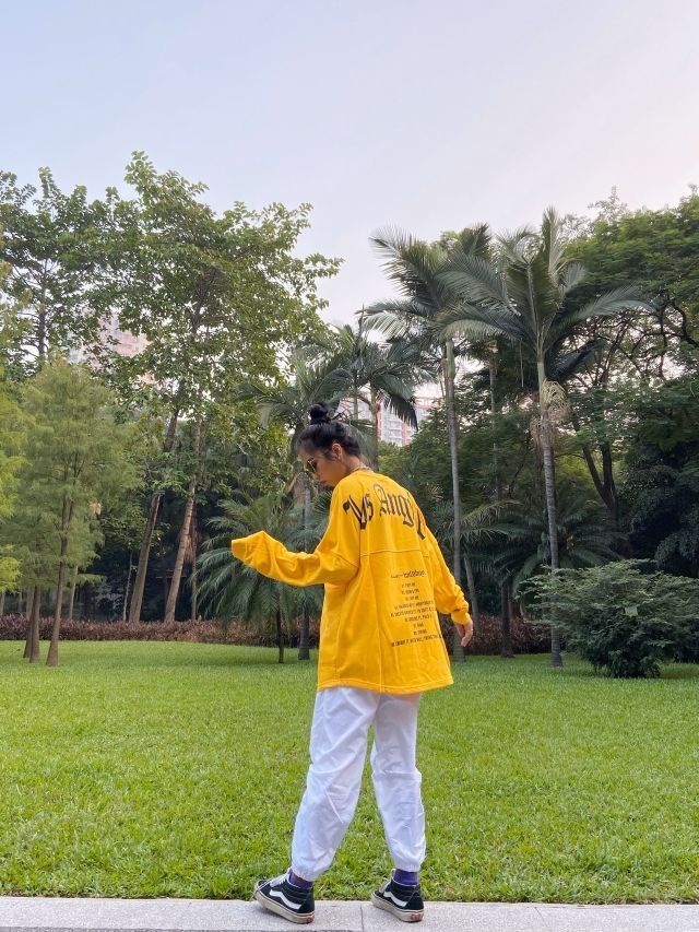 OOTD/秋天的公园里最亮眼的我🍯🍯 👕:饥饿的女儿 👖:饥饿的女儿 👟:vans sk8 mid 明亮的黄色总能带给我好心情,简单的衣服就是我简单的生活态度,卫衣的正面只有一点小印花,亮点在背后,整个花体字非常抓我眼球。 白色的运动束脚裤比黑色灰色甚至更百搭,只有裤腿处有一点点简单的设计,让我更加喜欢💕 鞋是vans sk8 mid,每一个玩滑板的都喜欢vans,这无须多言啦😈😈😈