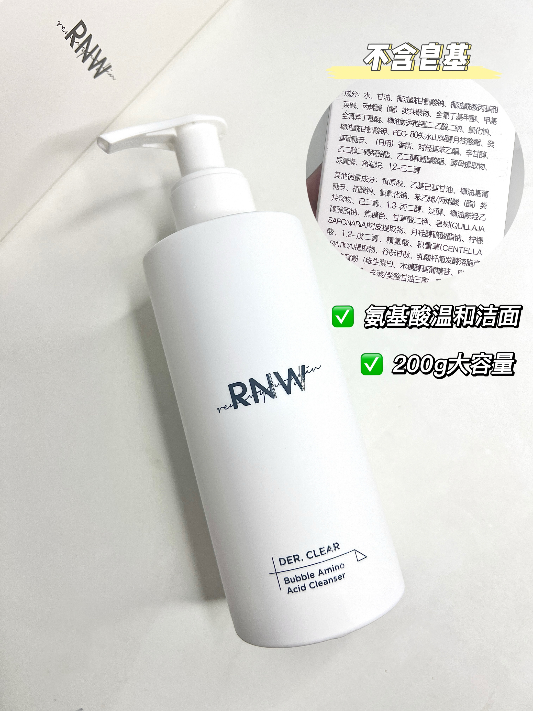 平时洁面都是卸妆油+洗脸奶 自从入了 RNW 洗面奶 卸妆+洁面二合一 简直不要太轻松!🧚♀️ 因为我是干性肤质 不能用带皂基的 这款成分就挺温和的 天然的椰油氨基酸+APG双重表活 日常的淡妆和防晒都能卸✅ 它还能自动起泡 挤一泵干手干脸就能搓出很多泡沫 洗完脸上清清爽爽✨ 一点也不会觉得紧绷~ 超大一瓶也很实惠 懒人洗面奶选它就对了❗️
