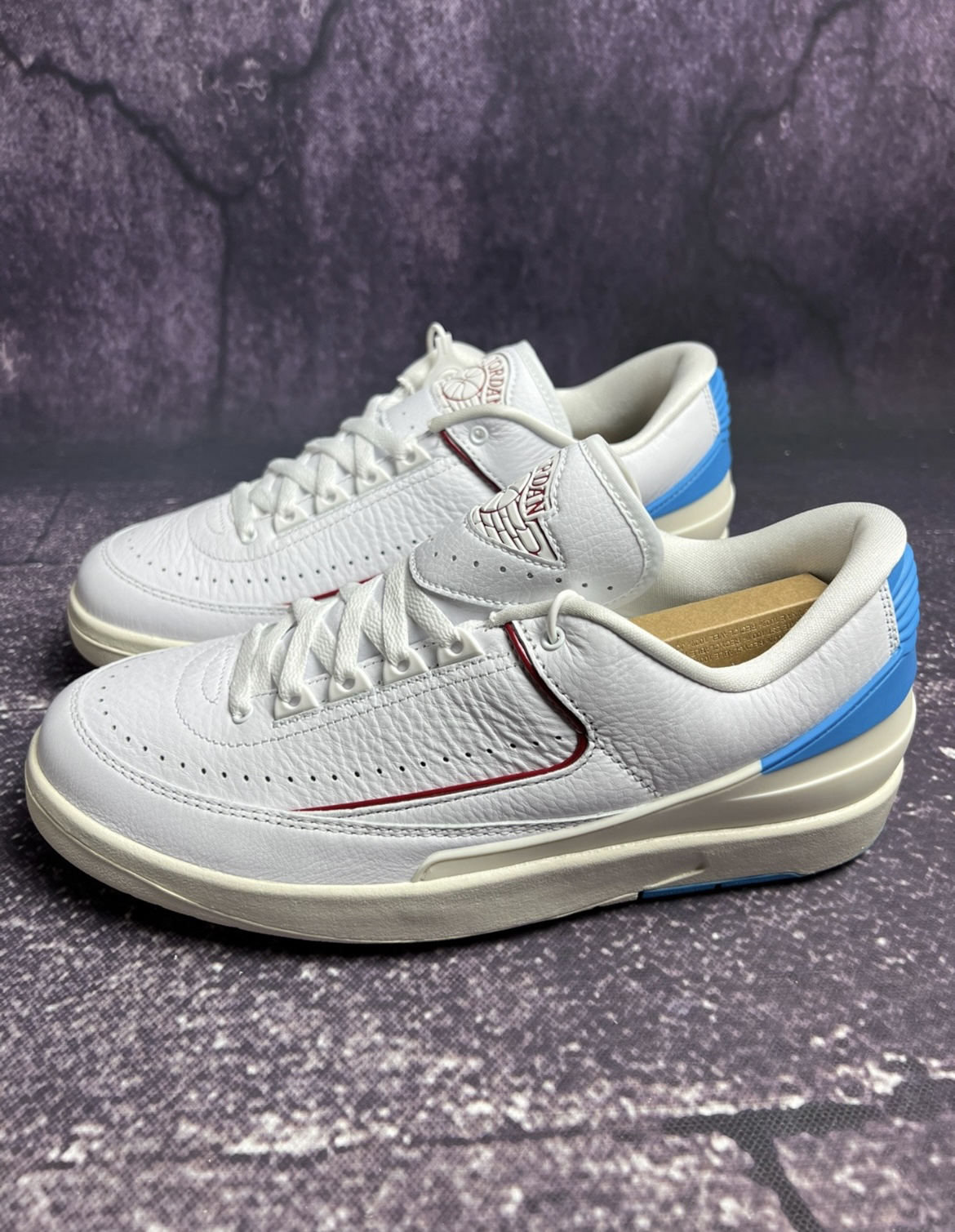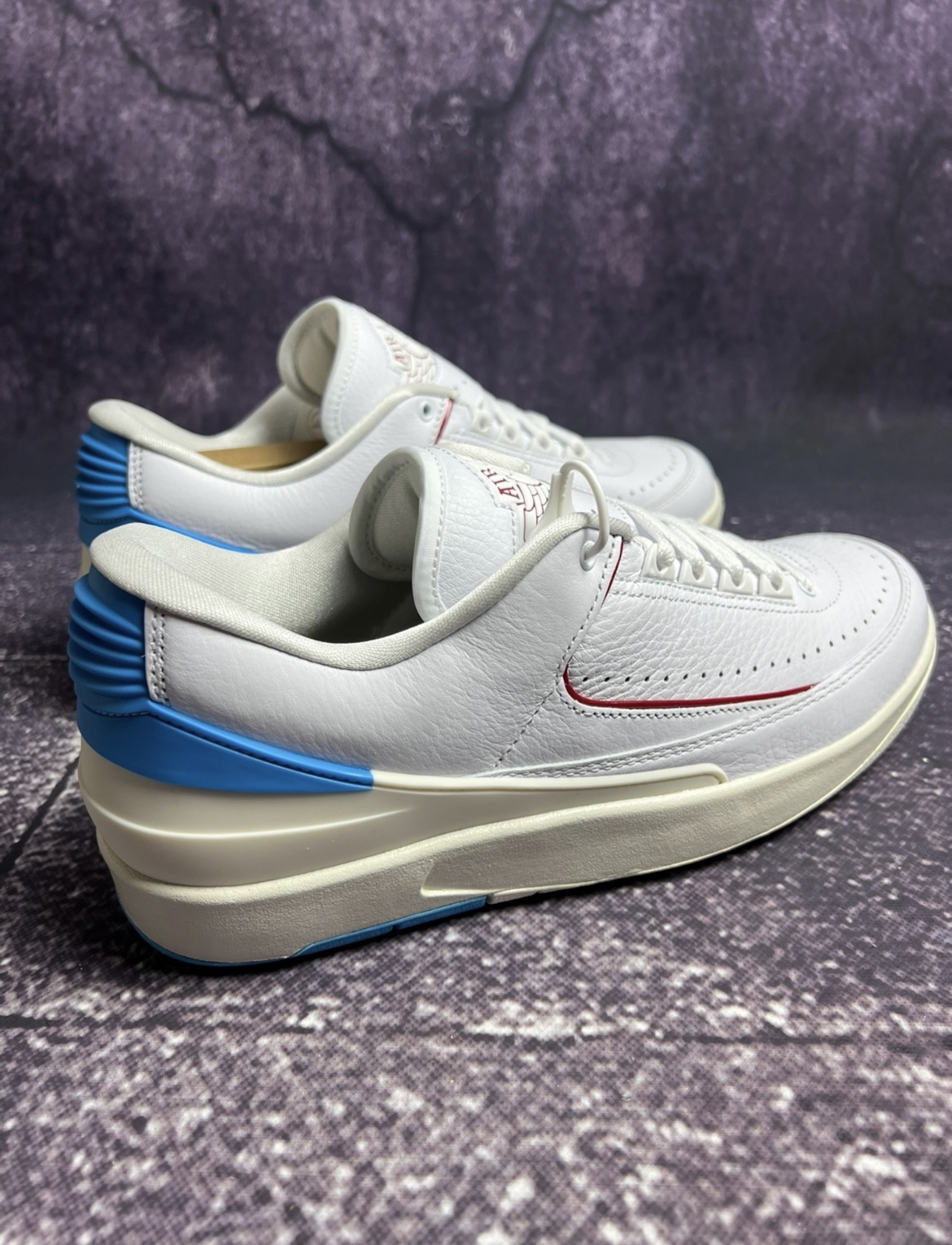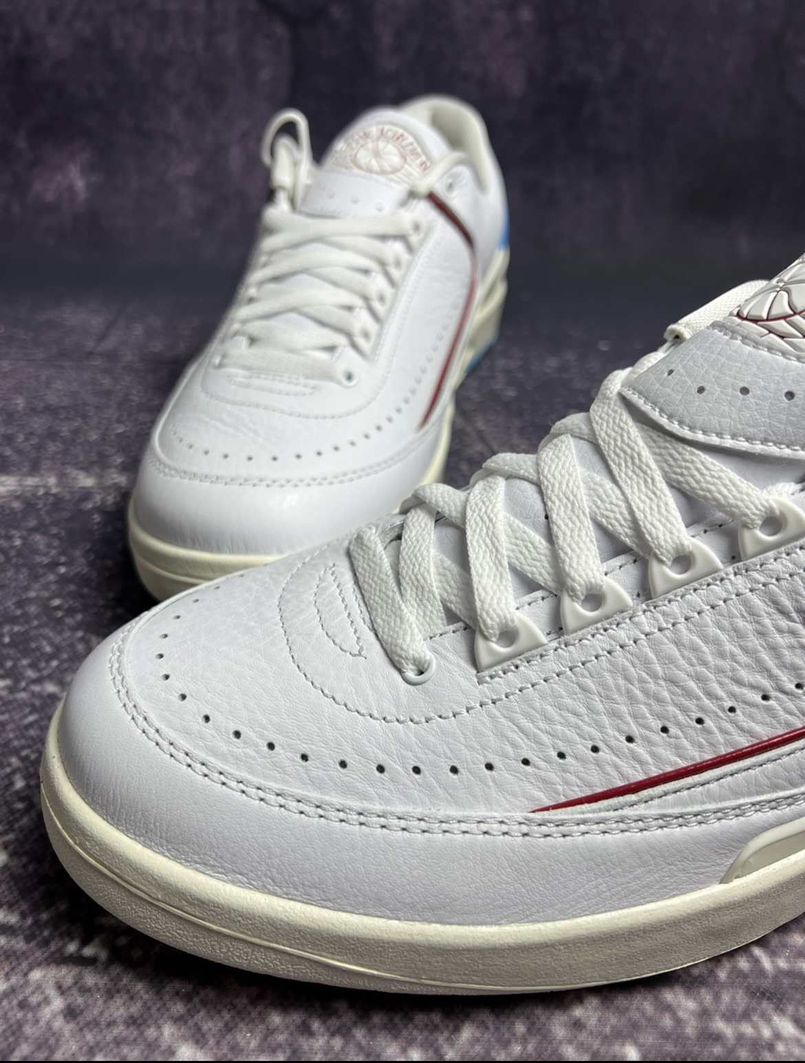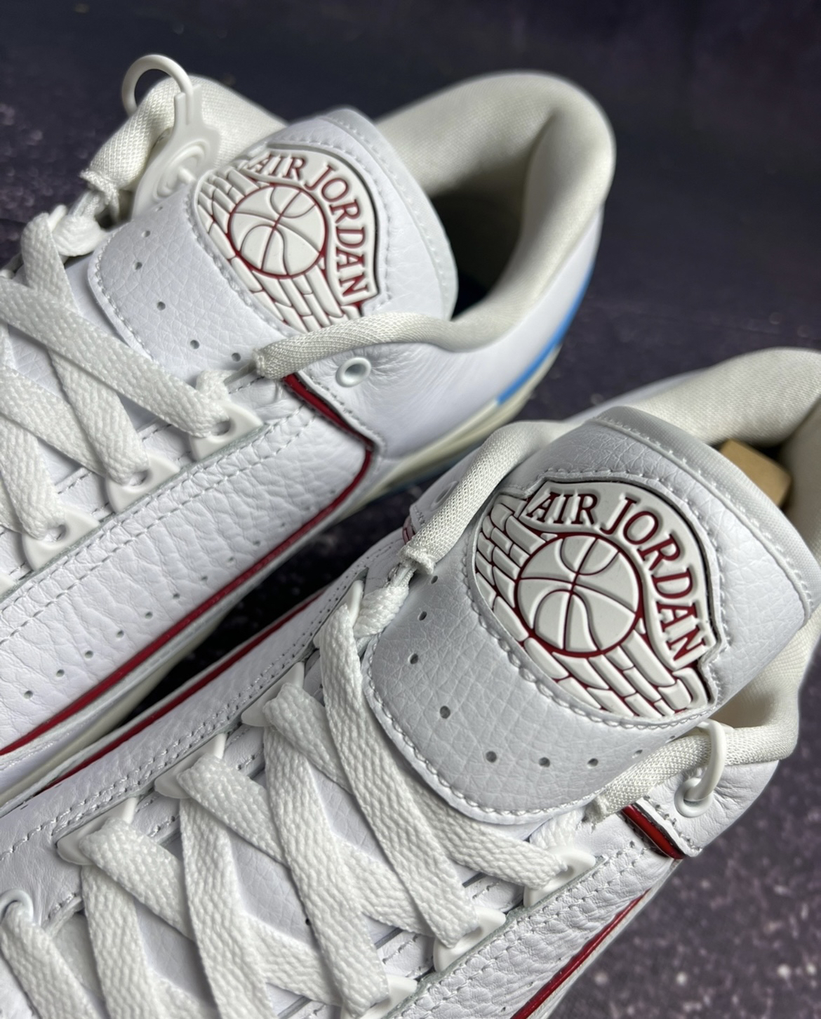 Jordan Air Jordan 2 Low "Gym Red andDark Powder Blue"" 减震防滑 耐磨 低帮 复古篮球鞋 女款白色 非常漂亮的白蓝色AJ2,北卡蓝配色的后跟非常 亮眼,搭配纯白色的皮革鞋面质感很棒哦!低帮 设计很适合春夏穿搭!女孩子穿起来特别好看, 性价比很不错!