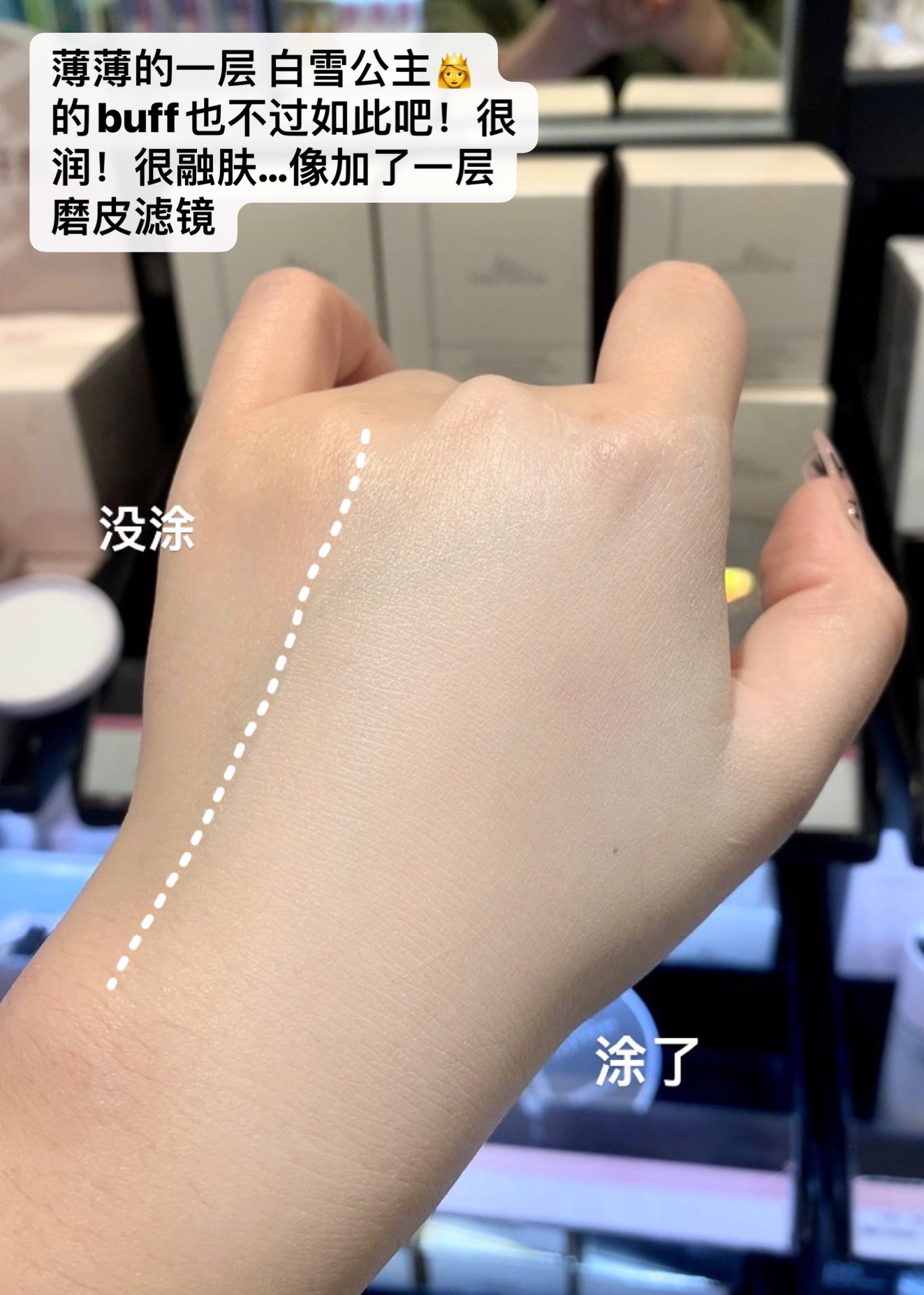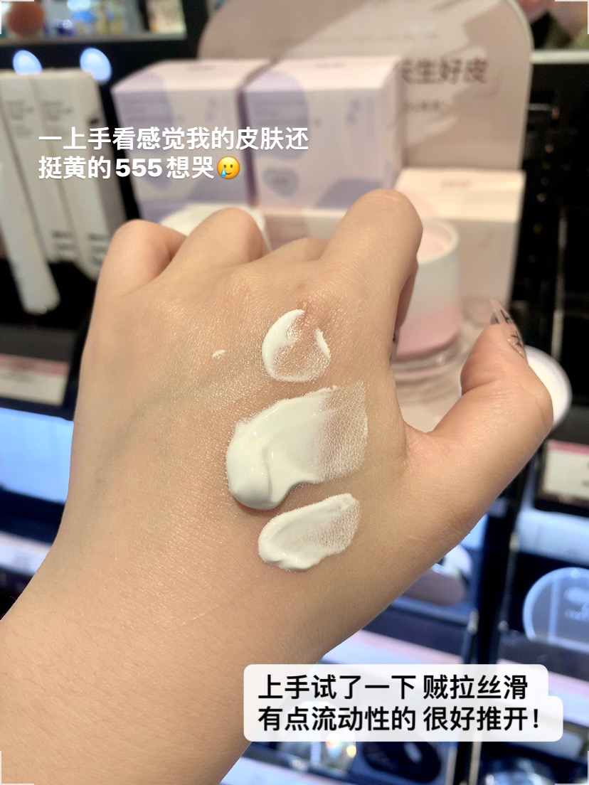 去三福逛无意间被颜值吸引, 粉粉紫紫的真的很piu亮! 赶紧试用装上手试了一下, 它是牛奶一样丝滑的乳液质地, 呲溜就化开了,不黏腻也没啥粉感, 完全涂匀后就亮白好几个度! 像自己的原生皮肤一样~ 搜了一下看好多姐妹都说好用果断拿下! 早八人又能多睡十分钟了笑哈哈😄