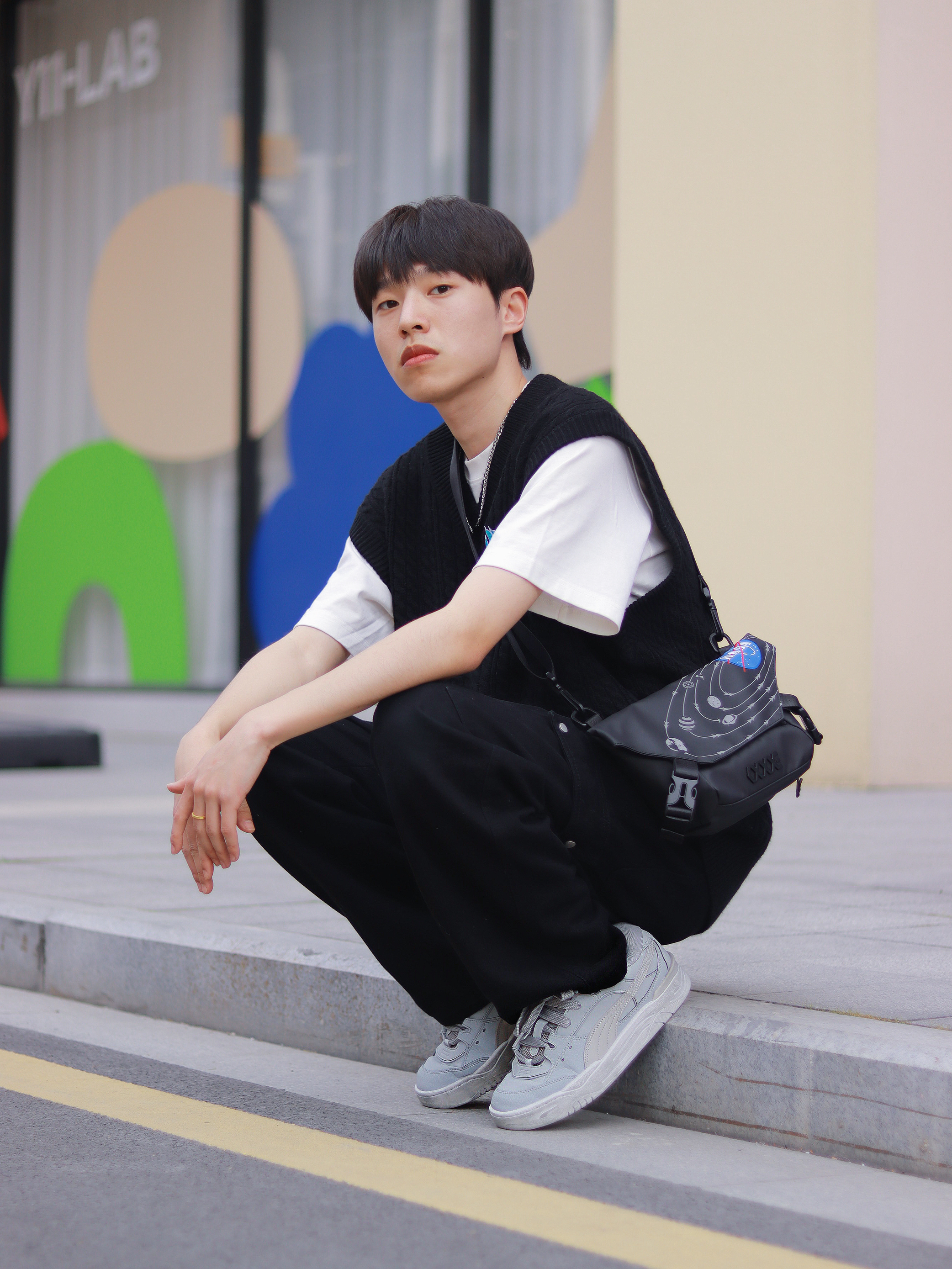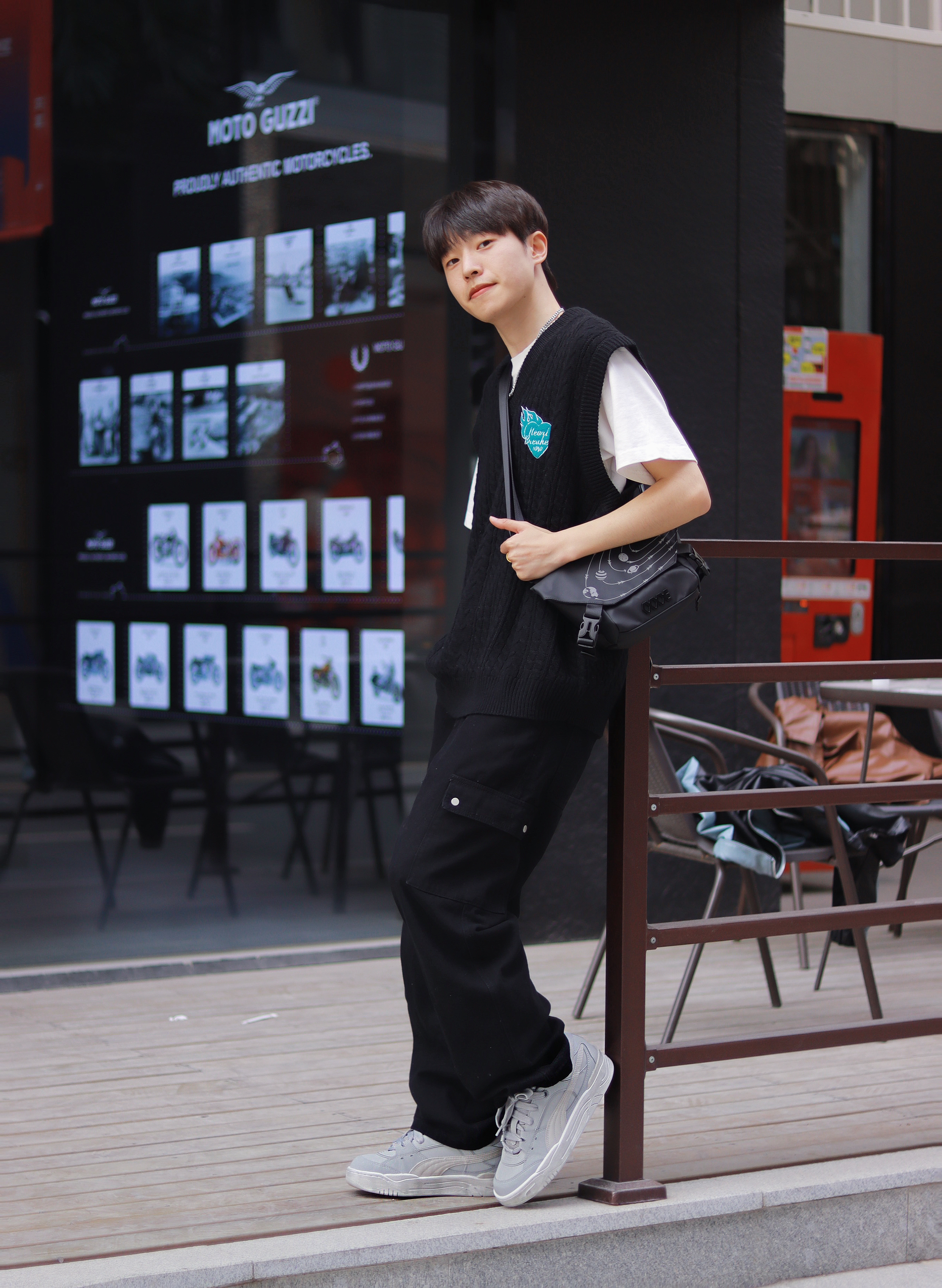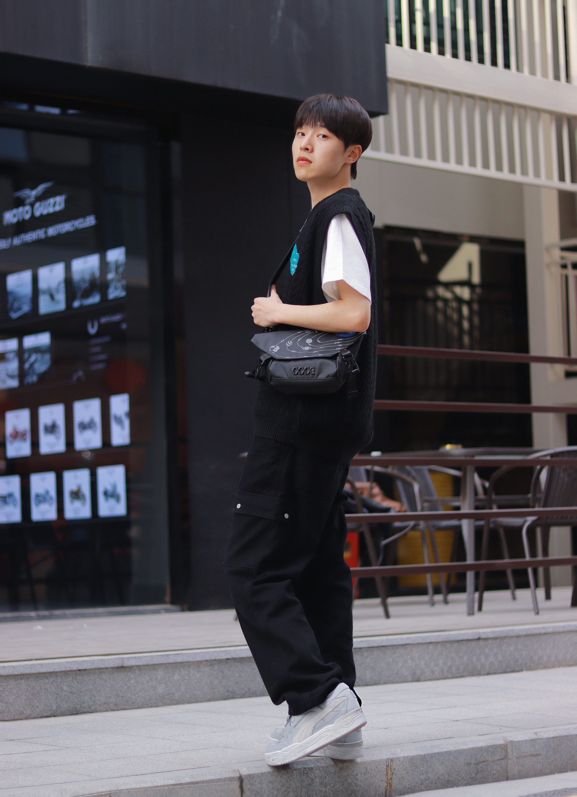 谁懂!真的好喜欢这种简简单单的基础款叠穿,百搭!不容易出错!还有点酷。 - 白T+黑色针织马甲很经典,特别是马甲上的蓝色刺绣,整体看起来超抢眼的! 新入手的PUMA180面包鞋最近很喜欢,中性灰色的低帮板鞋也算是百搭时尚单品了,经典板鞋的设计配上这简约的色彩,而且采用的还是防滑耐磨的材质,上脚很舒适时尚。 - 最后就是我新入手的一款联名包包了。 休闲胸包的设计比我想象中更个性创意一点,复古神秘黑的...