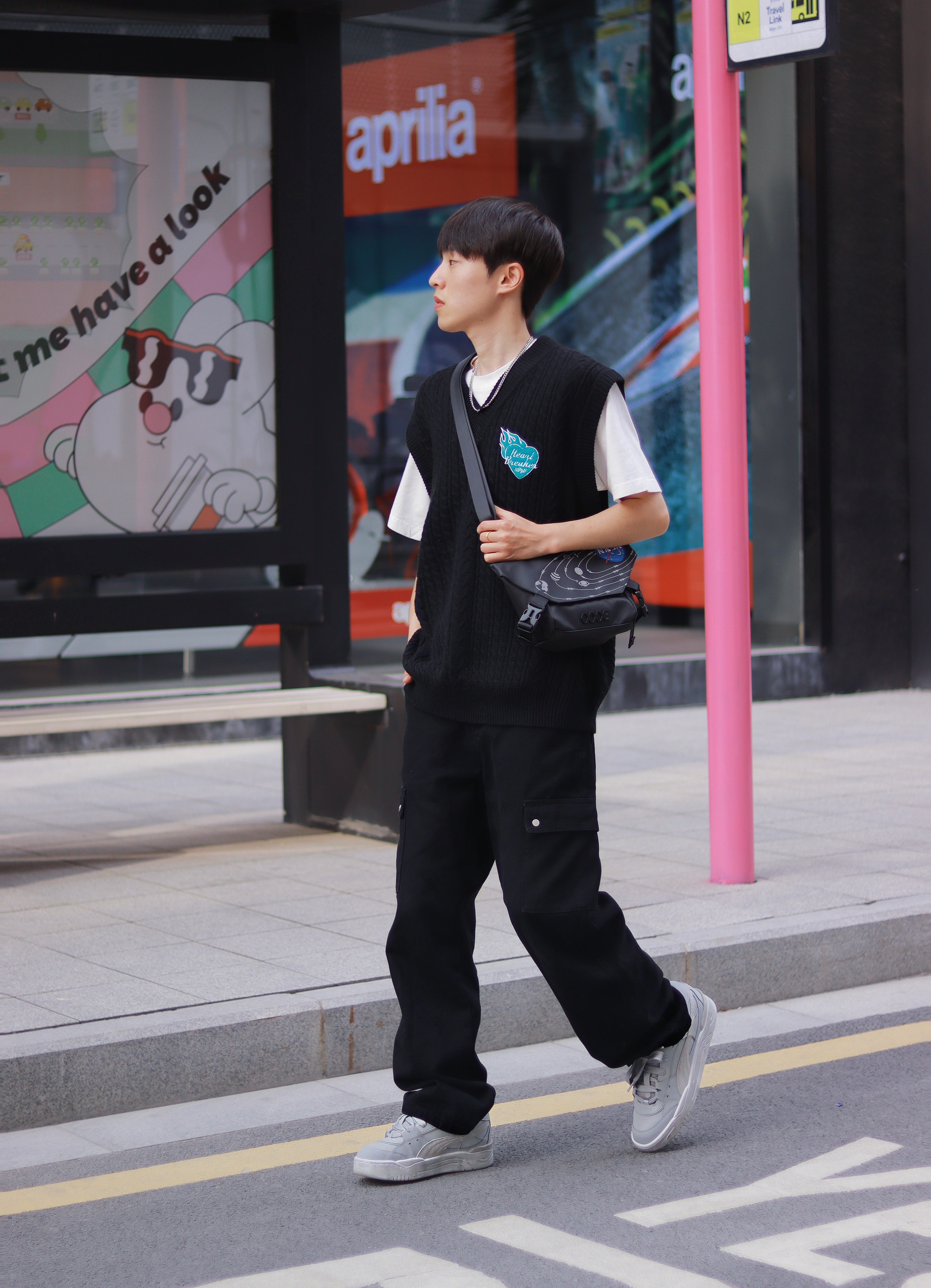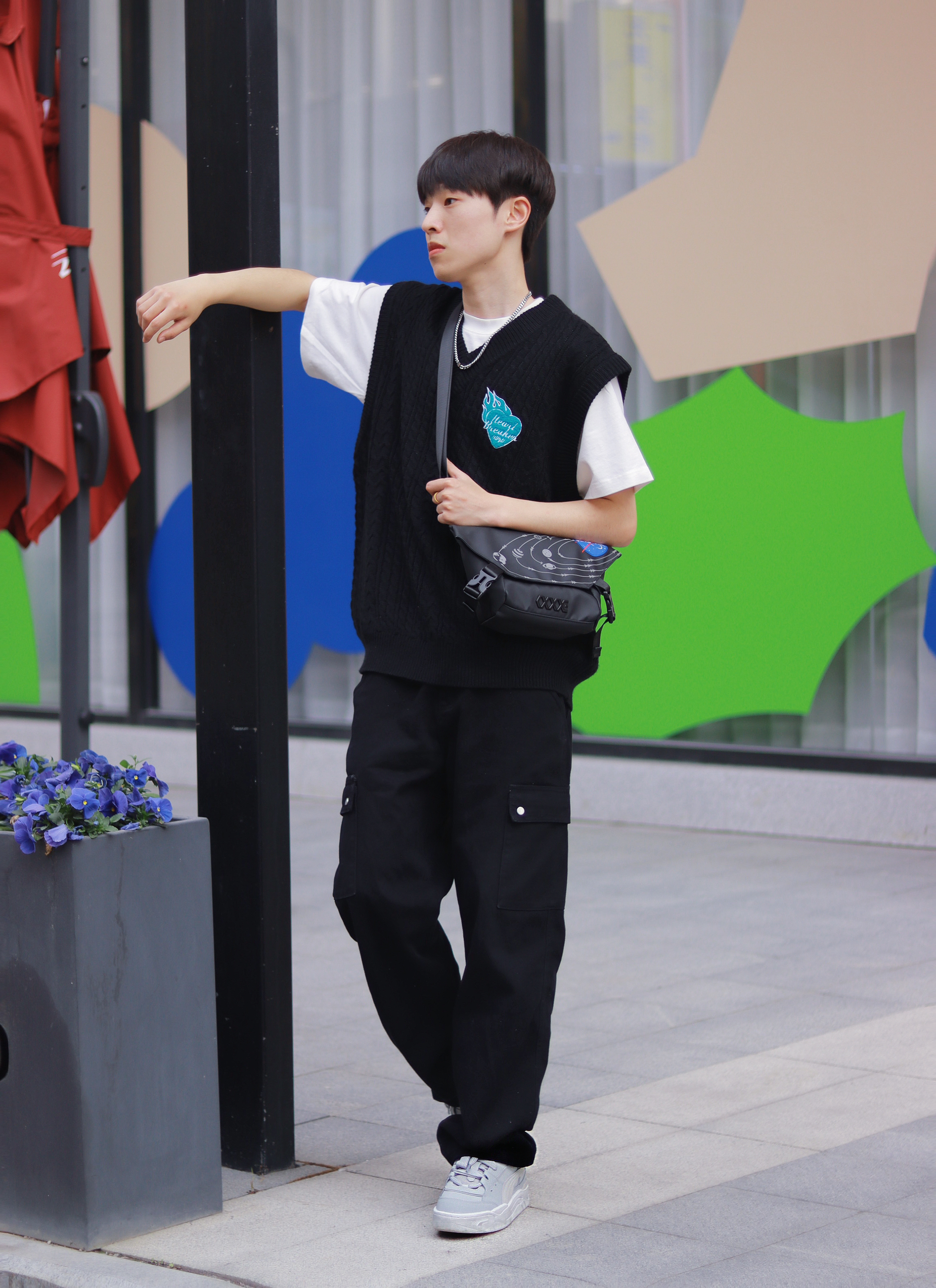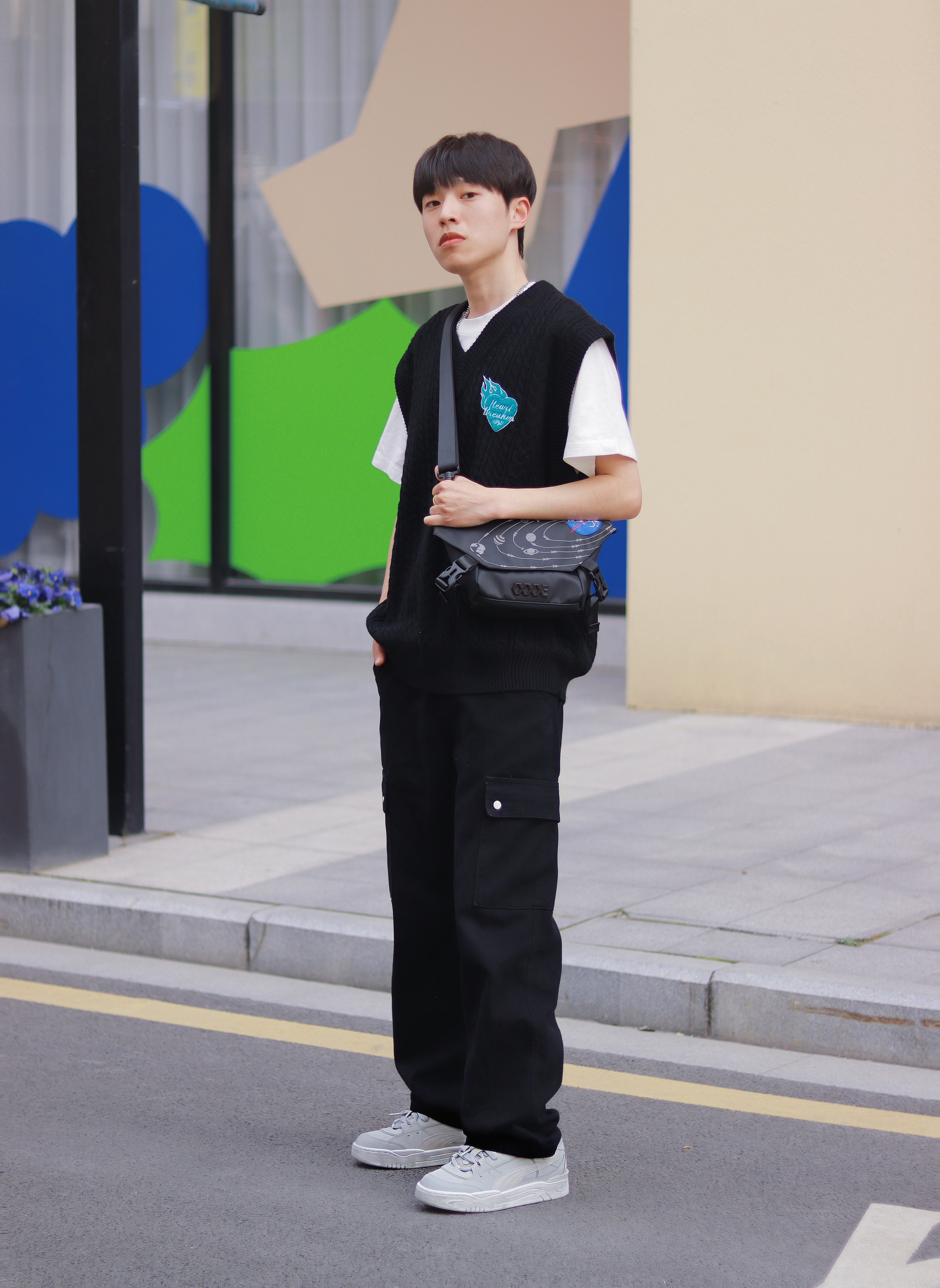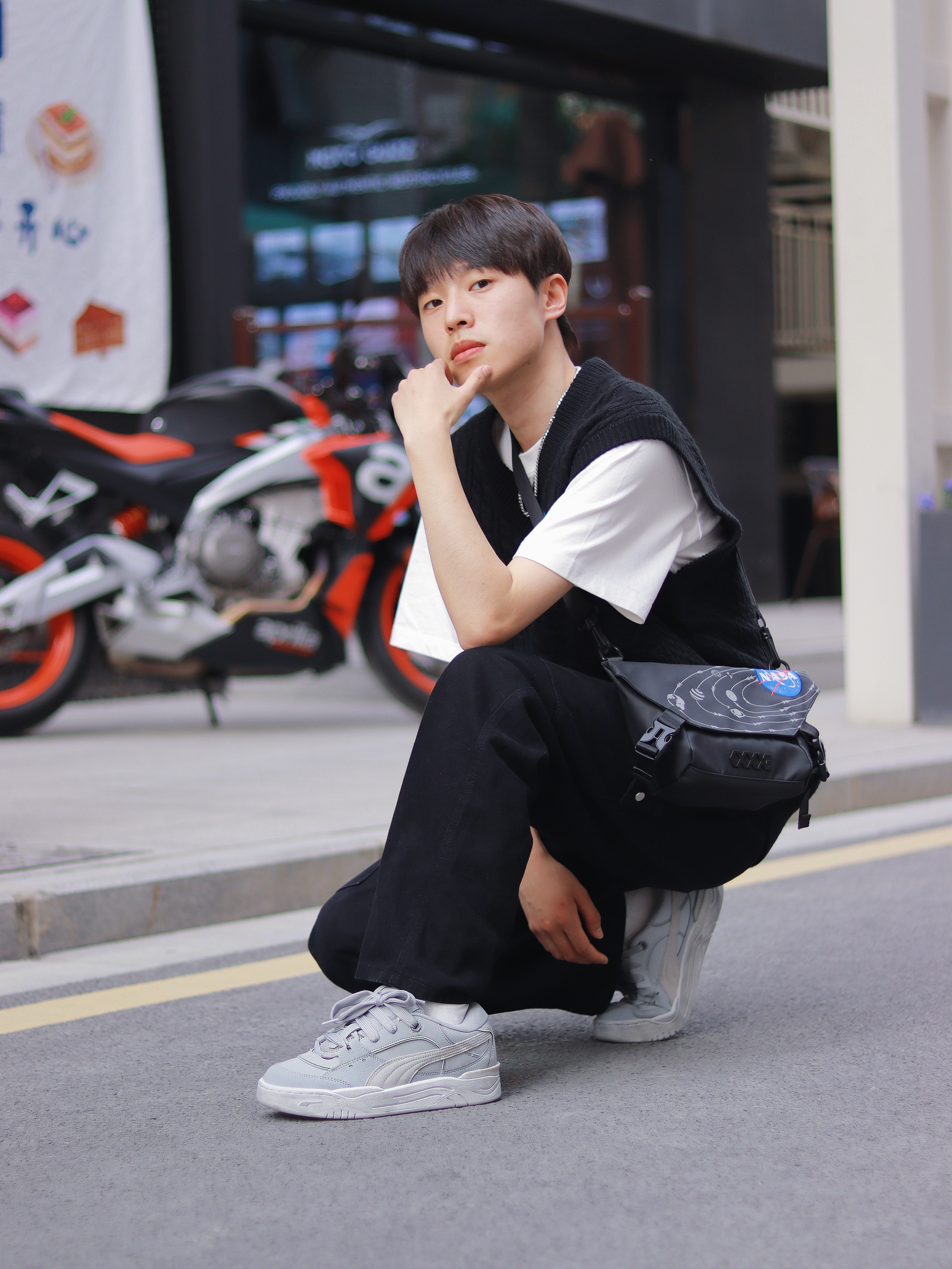 谁懂!真的好喜欢这种简简单单的基础款叠穿,百搭!不容易出错!还有点酷。 - 白T+黑色针织马甲很经典,特别是马甲上的蓝色刺绣,整体看起来超抢眼的! 新入手的PUMA180面包鞋最近很喜欢,中性灰色的低帮板鞋也算是百搭时尚单品了,经典板鞋的设计配上这简约的色彩,而且采用的还是防滑耐磨的材质,上脚很舒适时尚。 - 最后就是我新入手的一款联名包包了。 休闲胸包的设计比我想象中更个性创意一点,复古神秘黑的...