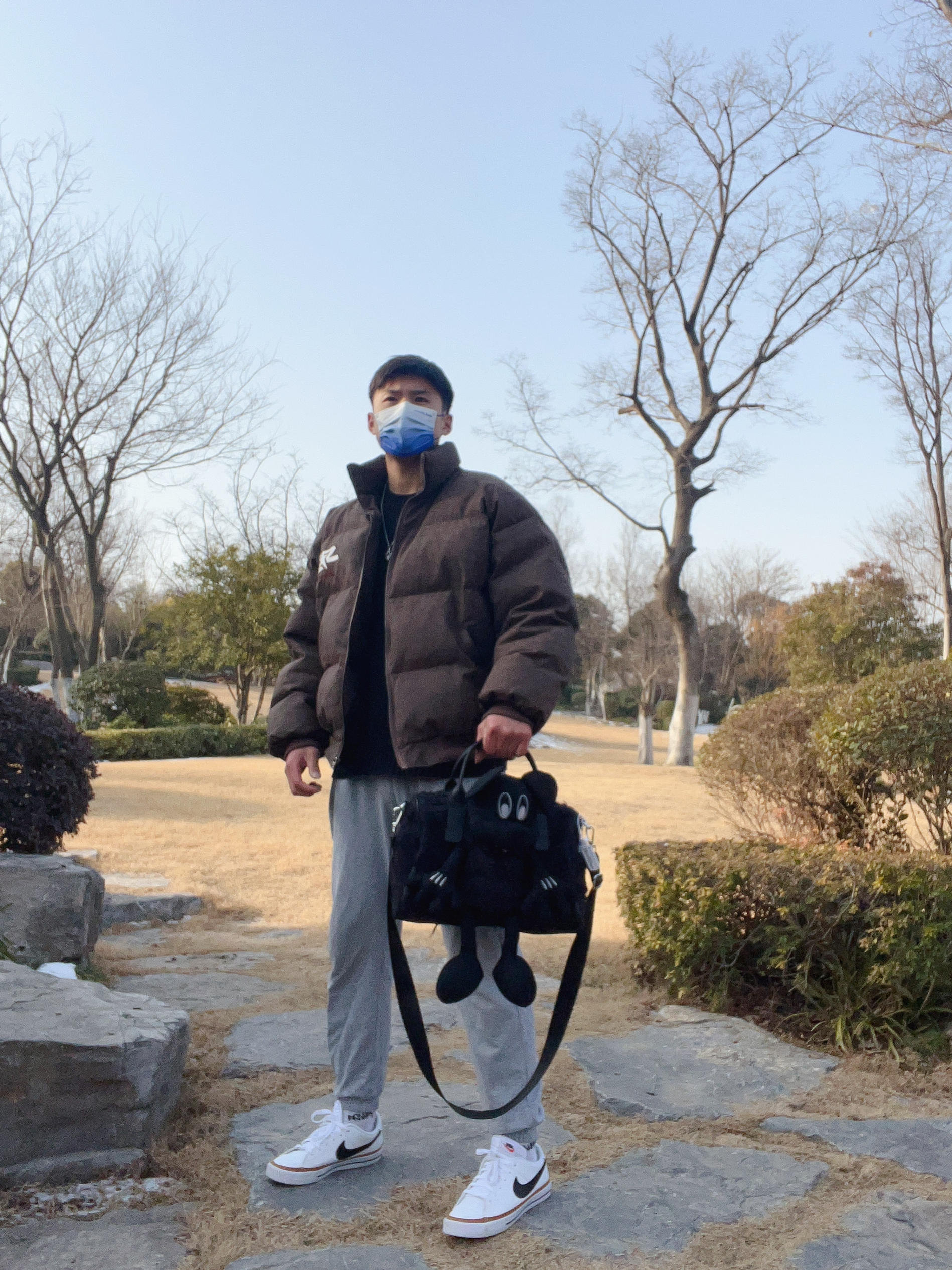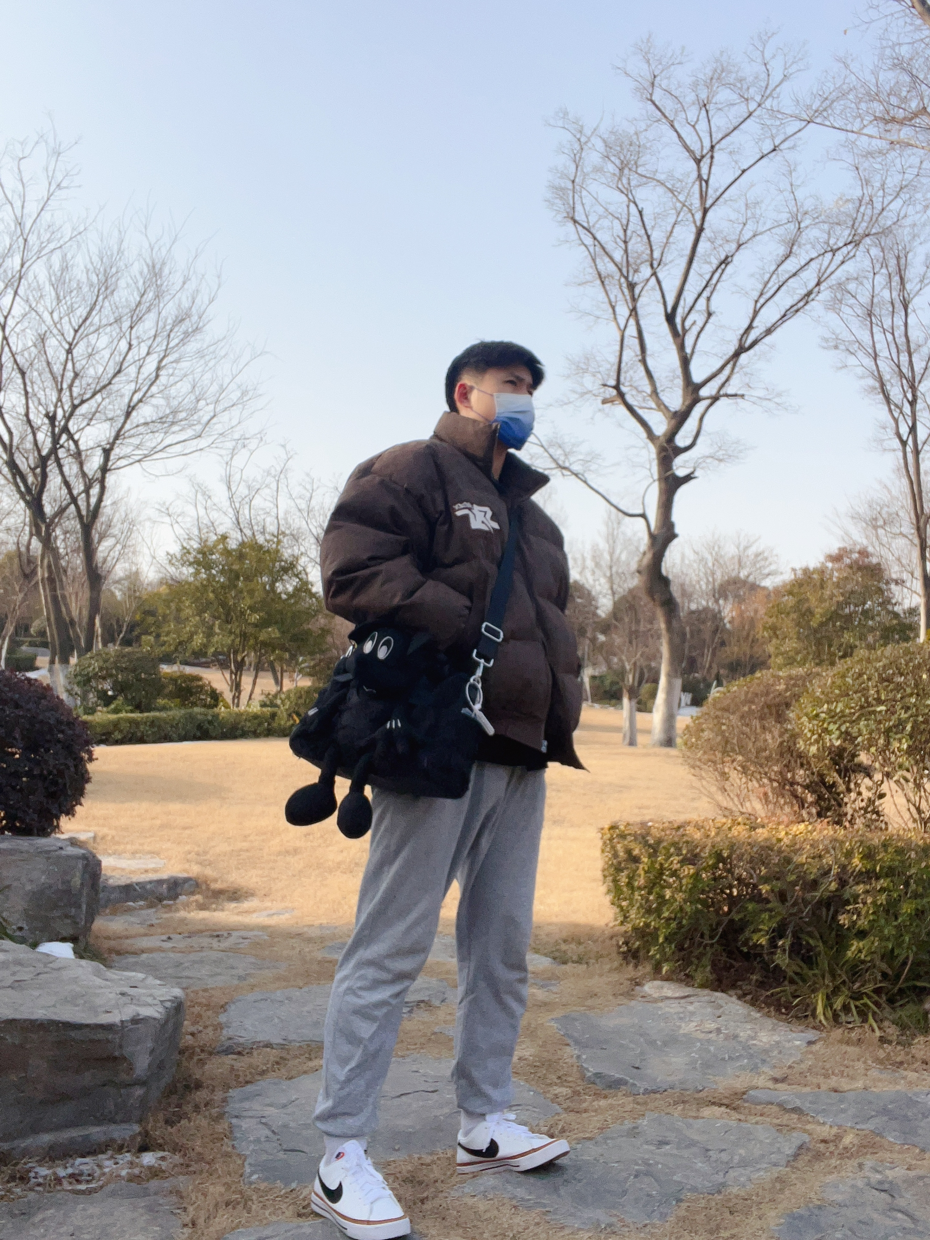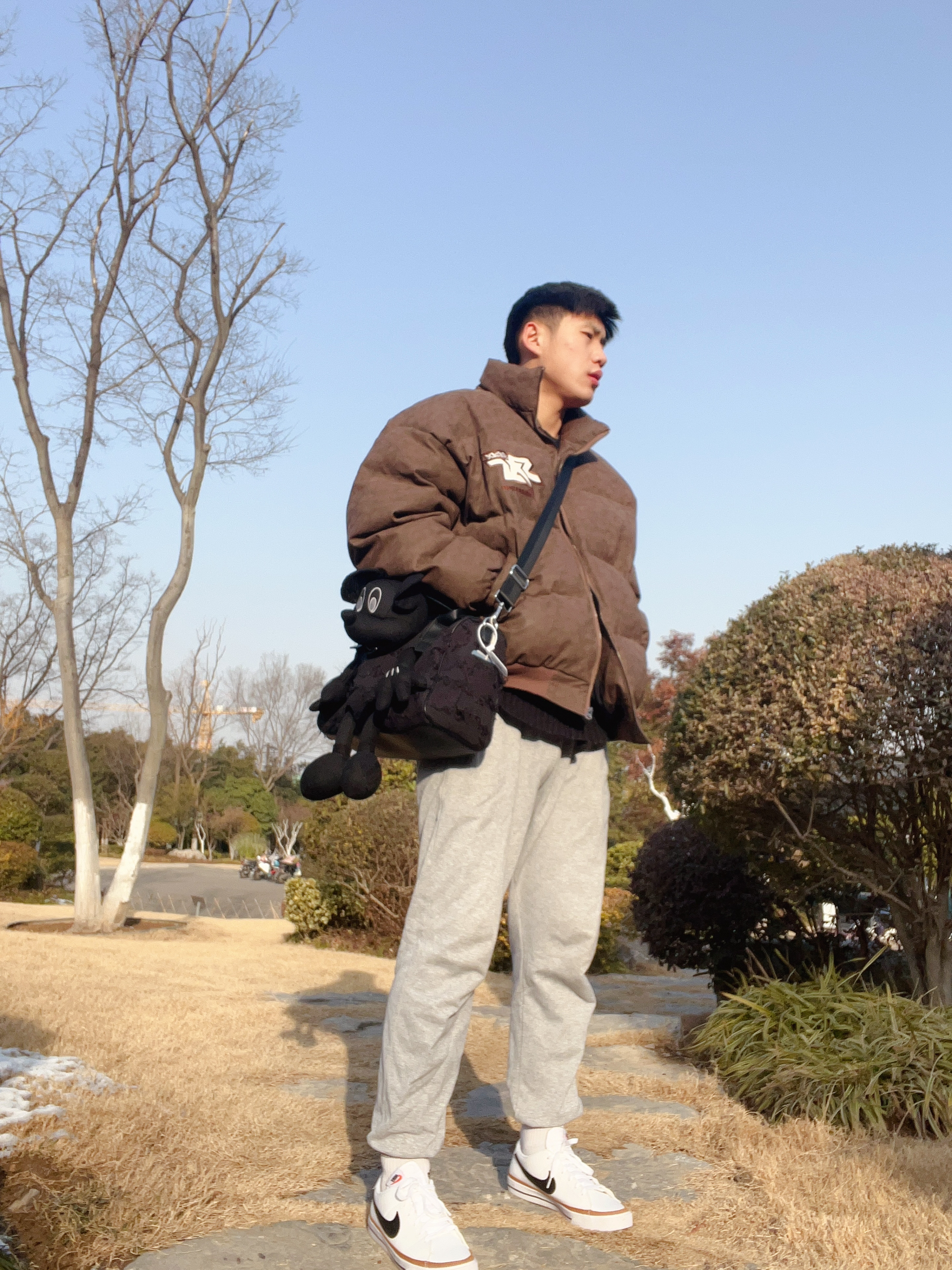 身高|体重:183|170 🧍♂️ 穿搭风格:阳光休闲穿搭 👔 上衣:宽松棕色棉服 👖 下装:灰色运动休闲裤 👟鞋子:(出游季】Nike Court Legacy 低帮小白鞋 休闲运动板鞋 男女同款 白黑 👟推荐这款鞋子,合成革的鞋面质感很不错。 鞋面白色为主要颜色,棕色黑色进行点缀,颜值很高很容易搭衣服。整体鞋子舒适时尚。橡胶大底耐磨防滑。