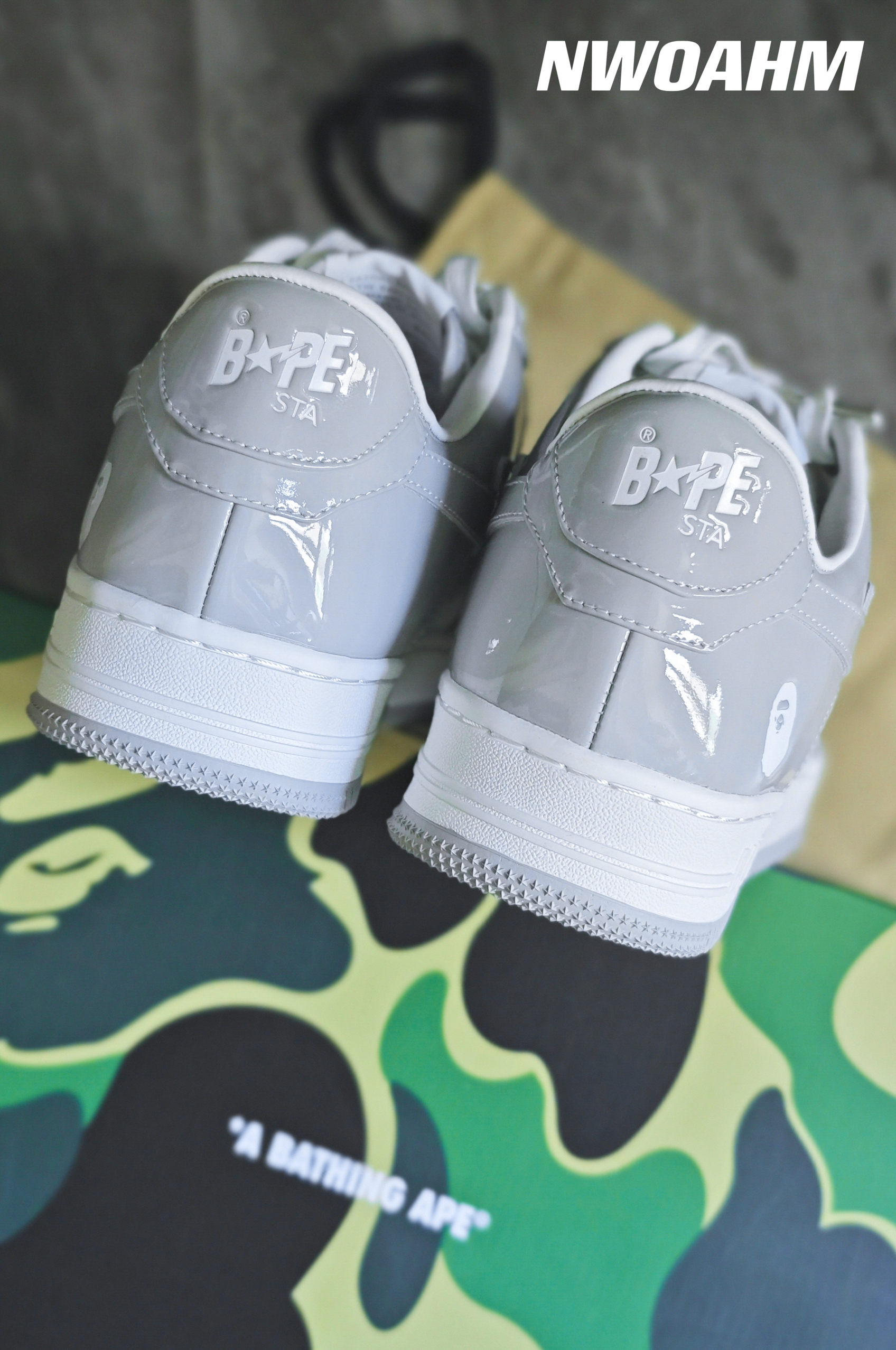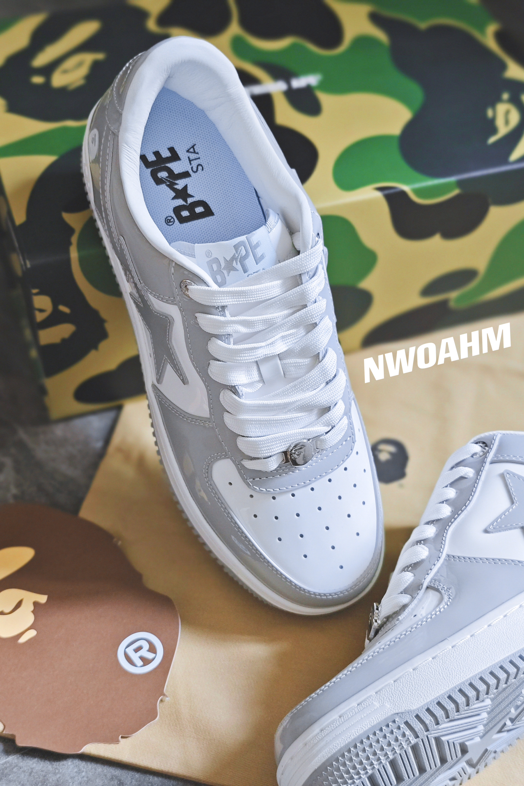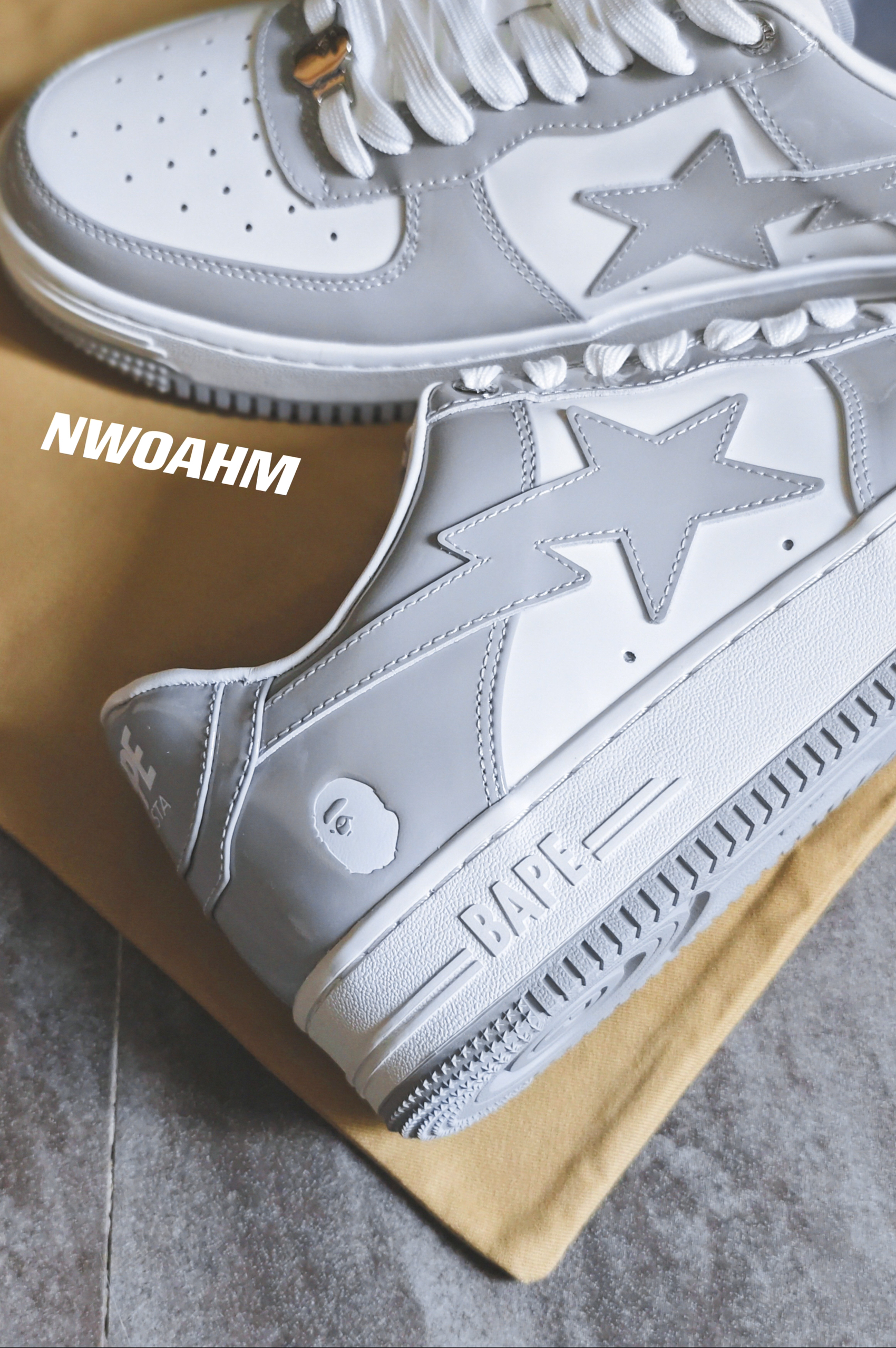 Bape的STA系列板鞋近年也是挺火,各种配色层出不穷,不过有些简单的配色还是耐看,例如黑白,白绿和这双灰白。❤️ 前几年的Dior联名AJ1将灰白这个配色带火,几乎每个鞋型都有好几个累似的灰白配色,也难怪,这个配色确实好看啊!🌚 这个STA板鞋跟空军十分相似,不过皮质和做工却要好很多,尤其漆皮的加成,整个高级感就出来了!男女适用,上脚百搭,回头率拉满! 尺码标准,正码入手即可。👀