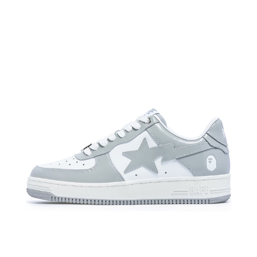 本篇笔记关联了Bape Sta 板鞋 拼接舒适皮革防滑耐磨系带圆头时尚简约复古百搭牛皮压纹平跟徽标星星图案 浅灰/白色等商品,为用户提供真实的使用体验和购买参考。