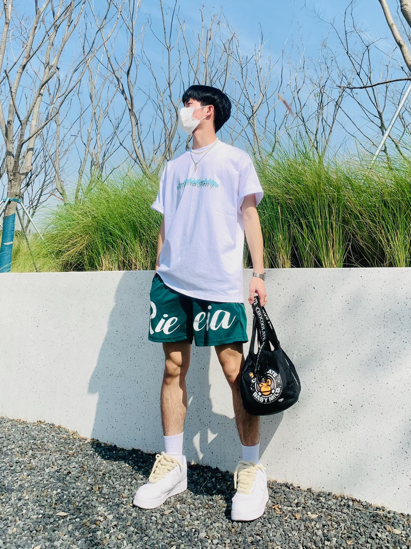 今天穿搭分享⬆️火焰字母印花短袖➕⬇️字母印花美式短裤➕⚪️空军纯白搭配/🔘GOTO运动拖鞋,短袖我来先来穿 👕: 第76人类 🩳: Rieeia休闲夏季美式篮球短裤男潮牌高街复古宽松速干运动健训练裤➡️tb🔍 👟:Nike Air Force 1 🩴:GOTO星豚 📿:cooraree ⌚️:Casio