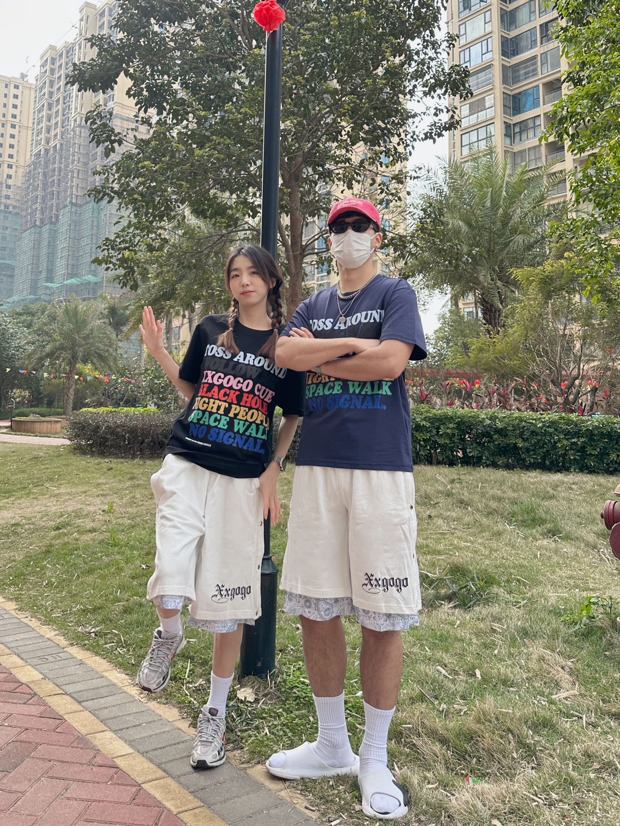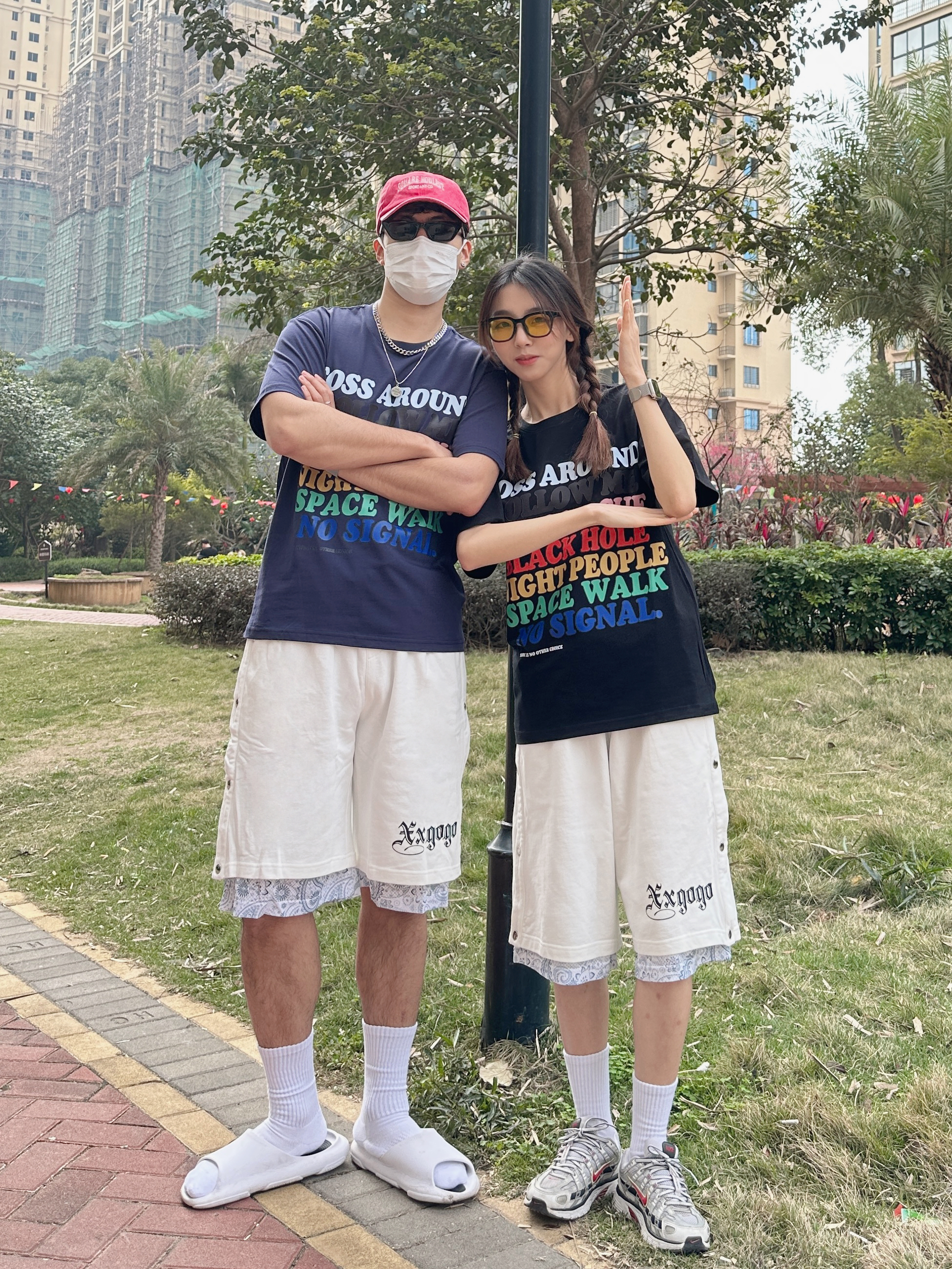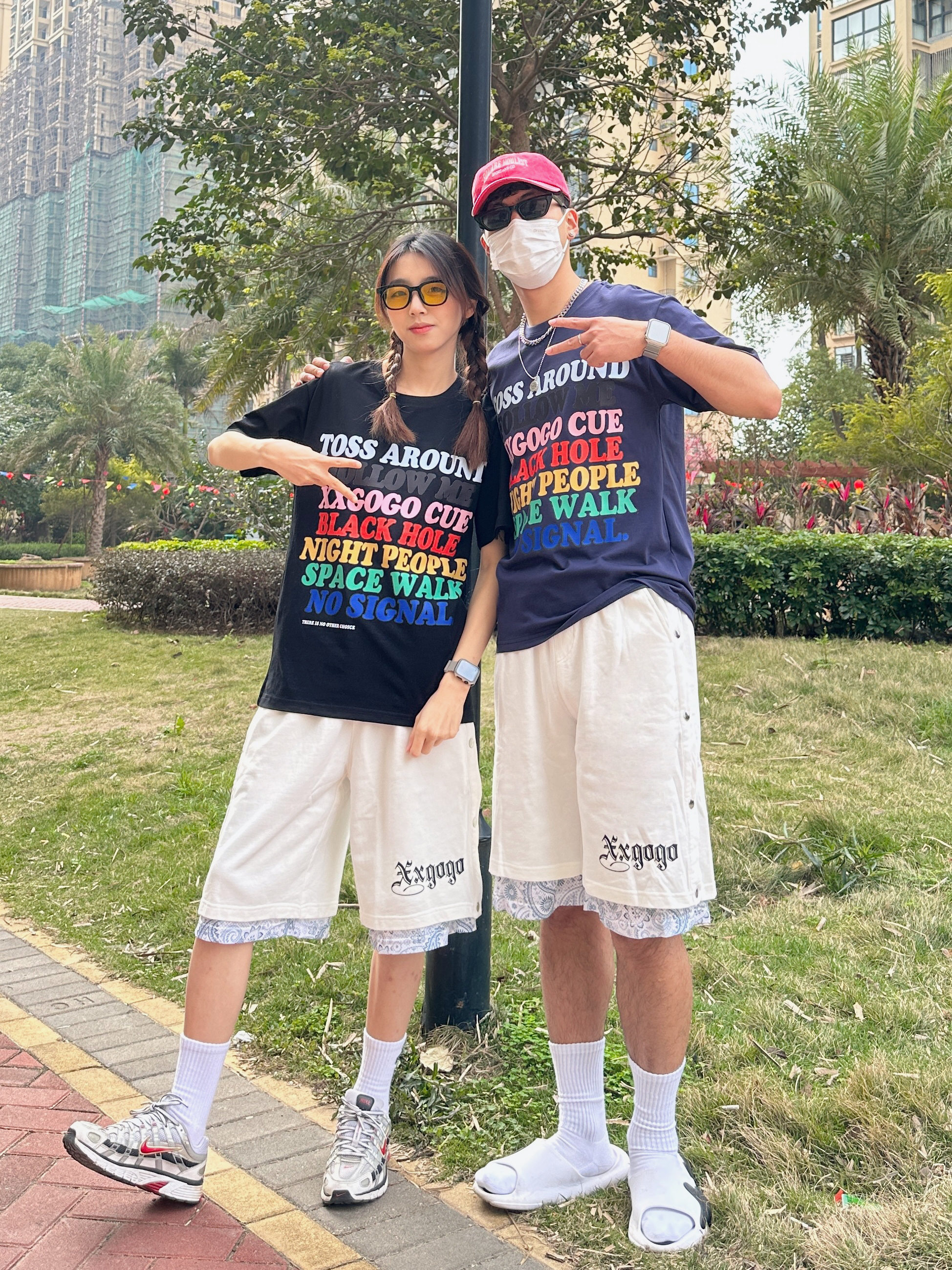 欢迎来到小铭宗宗情侣穿搭频道📺 👧:168/44 穿M 👦:182/70 穿L 春夏就很喜欢穿有色彩的衣服~ 把7种颜色的印花穿在身上还挺特别🎨 再搭配白色运动短裤🩳 拼接的腰果花有点意思 这不就是夏日的穿搭公式嘛 👻👻 男生可以搭配篮球拖鞋🩴➕白袜 女生可以搭配复古运动鞋👟 一整套有色彩 活力满满的穿搭I get !!!