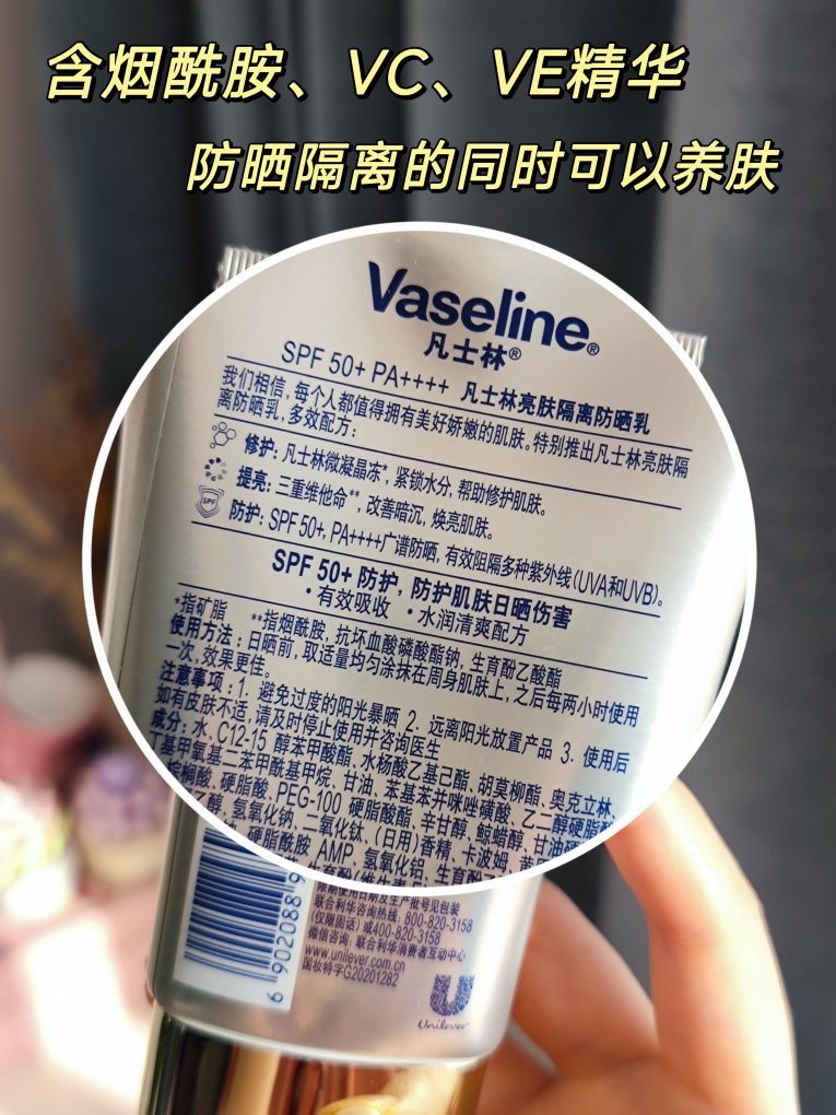 🌸随着春天的到来,气温也慢慢升高,我们这边近来都是大晴天,太阳晒得不要不要的😭,是时候要开始做好防晒功课啦~分享这个凡士林亮肤隔离防晒乳,我最近每天都在用👌🏻,日常通勤或运动都OK,不怕晒黑晒伤~ 🌸这个防晒霜是SPF50+、PA++++的高倍防晒🌞,而且是物理+化学双重阻隔的配方,能很好地防晒隔离,同时不会太过厚重~里面含🈶VC、VE精华、烟酰胺等成分,挤出来是轻盈乳霜质地,涂抹开来比较温和滋...