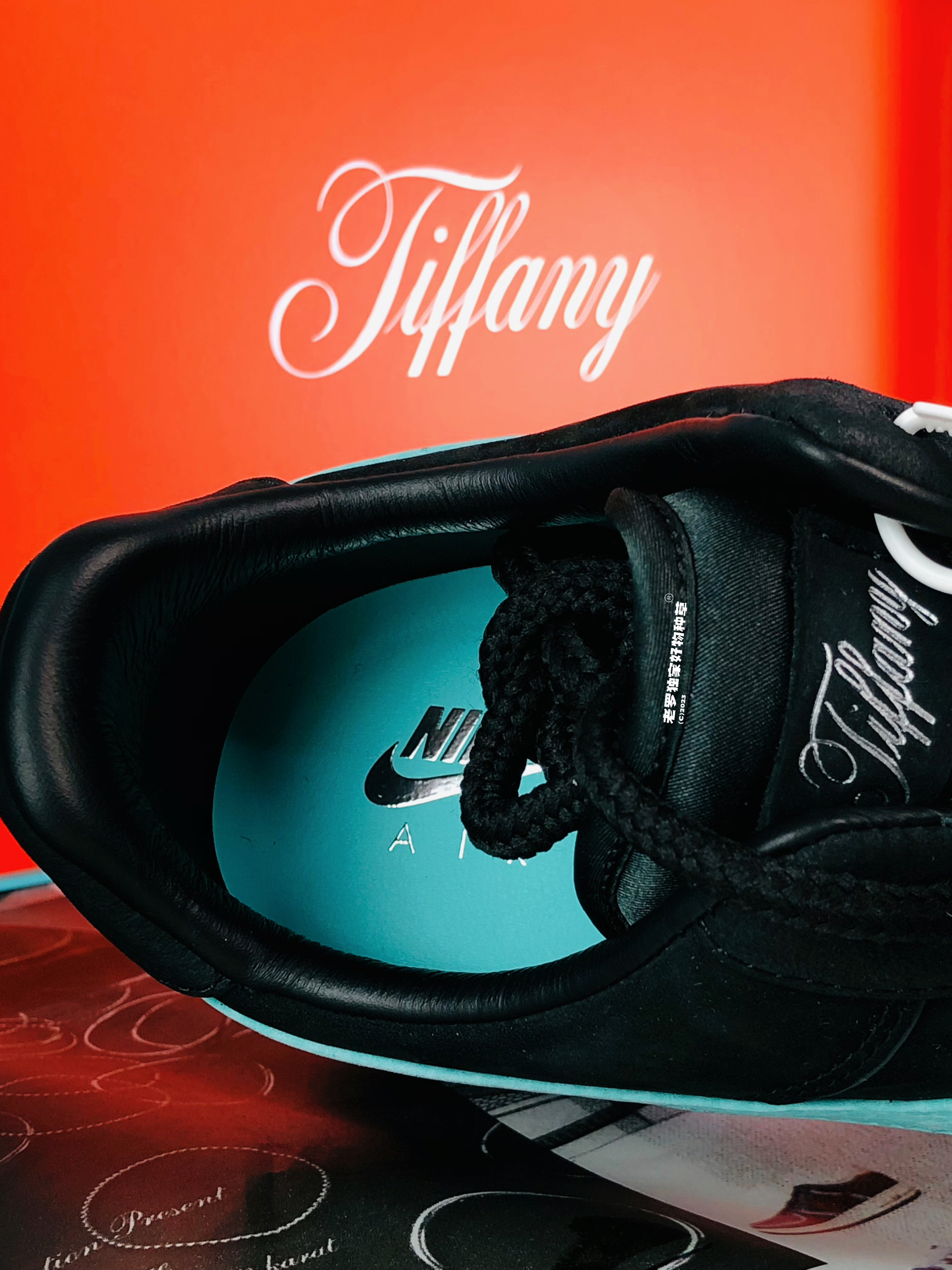简单的 蒂芙尼配色 swoosh 和 鞋底两个圈 就已经证明了它与众不同 黑色系 全牛皮才是内帮 规格 搭配 蒂芙尼鞋标 后跟 “925小银块” 配件鞋带 分别是 白 黄 蒂芙尼绿 的扁头规格 自带黑色鞋带 则是 圆型编织 配上金属鞋带扣 包装盒 远看 极简 细看 大头内容 白色 swoosh ☑️ 配上蒂芙尼配色 全部是密密麻麻 联名logo 隐藏其中 尺码方面 属于常规 ...