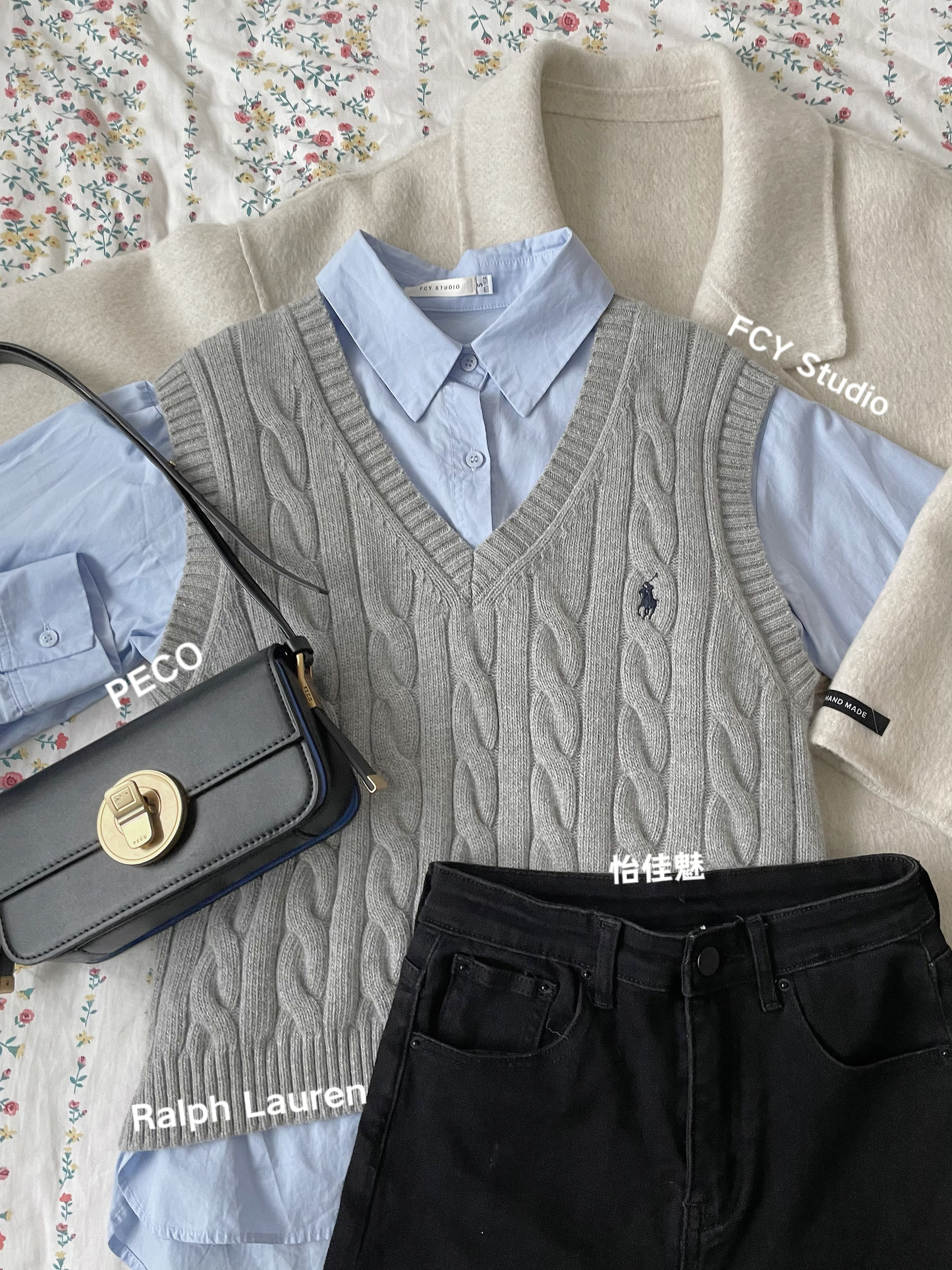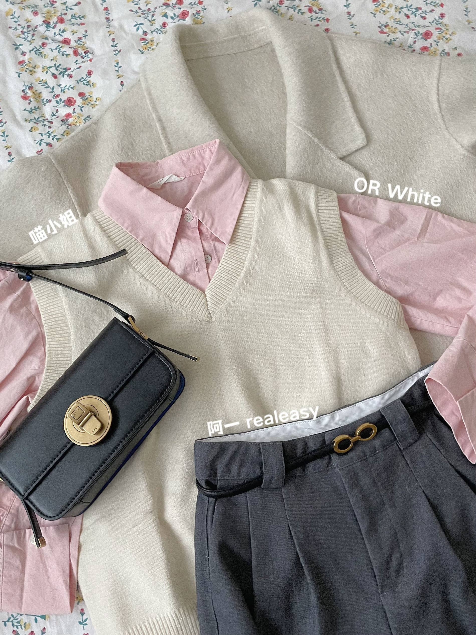 整理出了白色大衣的叠穿内搭 衬衫➕背心或毛衣都可以利用起来 室内脱下外套也好看~