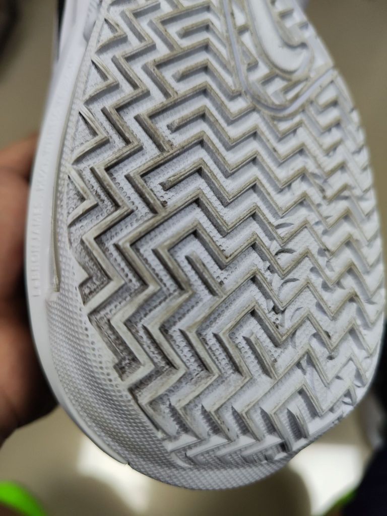 买这双鞋的主要目的是为了纪念老詹得分突破纪录,当天看完直播就直接下单买了。 我体重85公斤,穿了这双鞋,打了四场内场的养生局,现在来谈谈感受。 先说说脚型适配吧,这双鞋脚型适配非常的宽广,我的脚是典型的宽脚,并且是宽在足中段的,可以穿,一点问题都没有。穿普通袜子平常耐克穿美码九码半的,这双鞋也是穿美码九码半的,脚尖离鞋头大概有半个大拇指的距离。7代在商场也试过,九码半就...