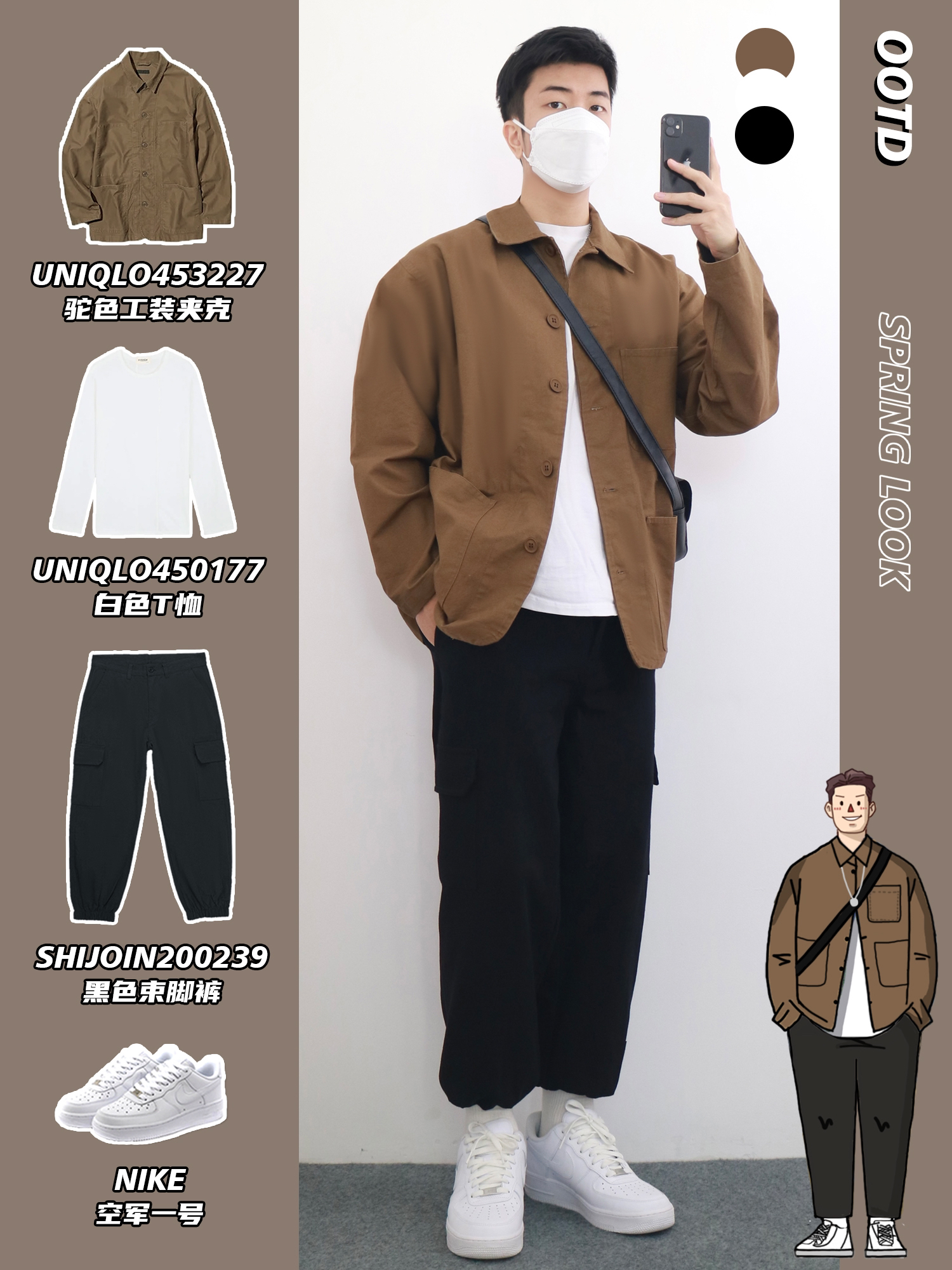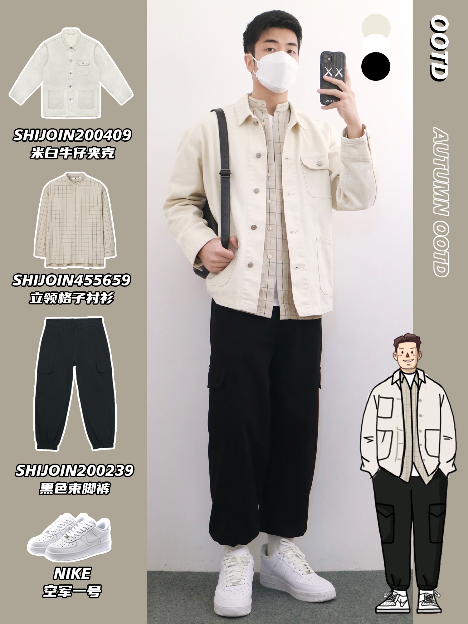 hello,穿衣显瘦脱衣有赘肉的小梁🙋来了! 打工人的一周穿搭👔也要精致利落 简约干净的通勤穿搭在职场真的很加分‼️ 工装通勤混搭很适合作为日常上班💼穿搭 本期小梁分享5️⃣套通勤工装风穿搭 利落得体挑战一周不重样🔅 - look1️⃣ 米白工装夹克+卡其格子衬衫+黑色束脚裤 look2️⃣ 驼色工装夹克+白色T恤+黑色束脚裤 look3️⃣ 蓝色牛仔衬衫+白色T恤+灰色束脚裤 look4️⃣ 军...