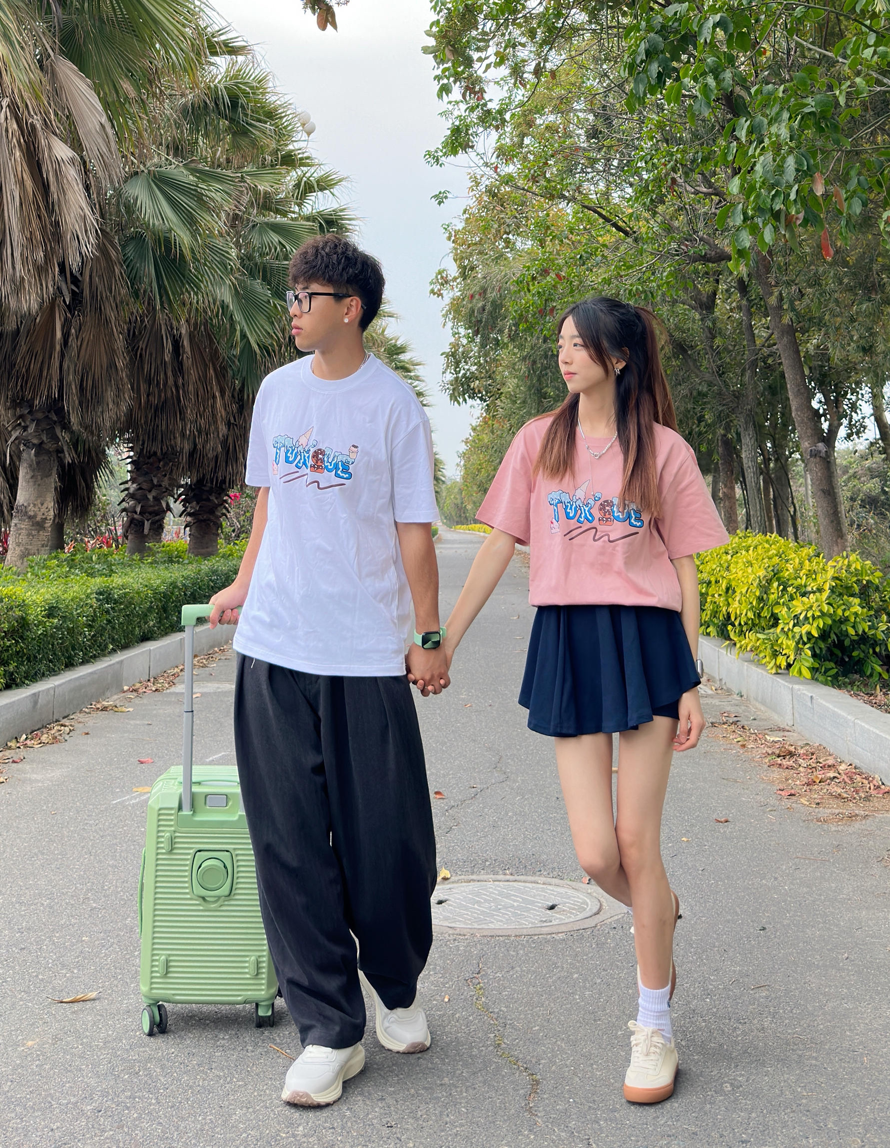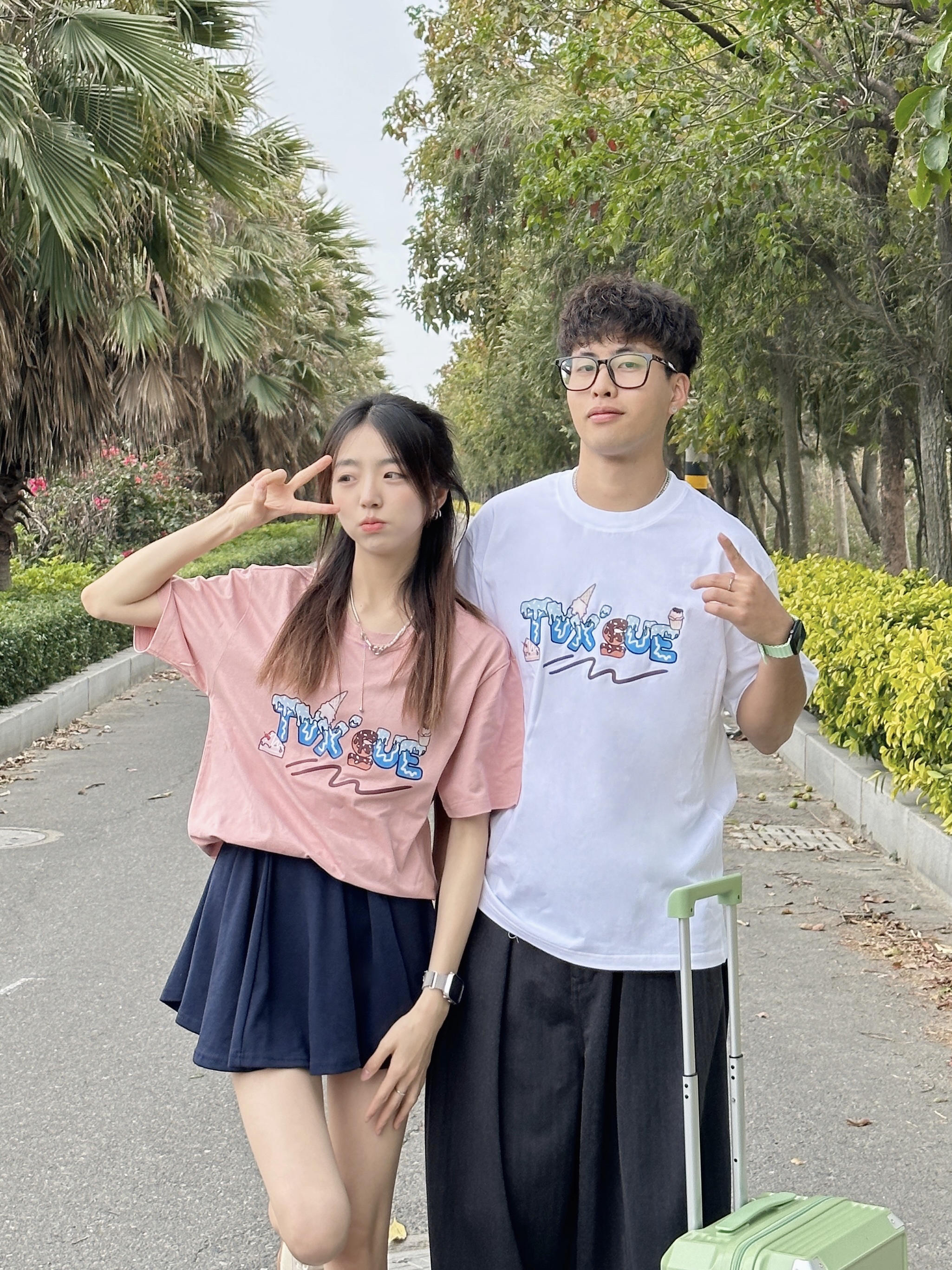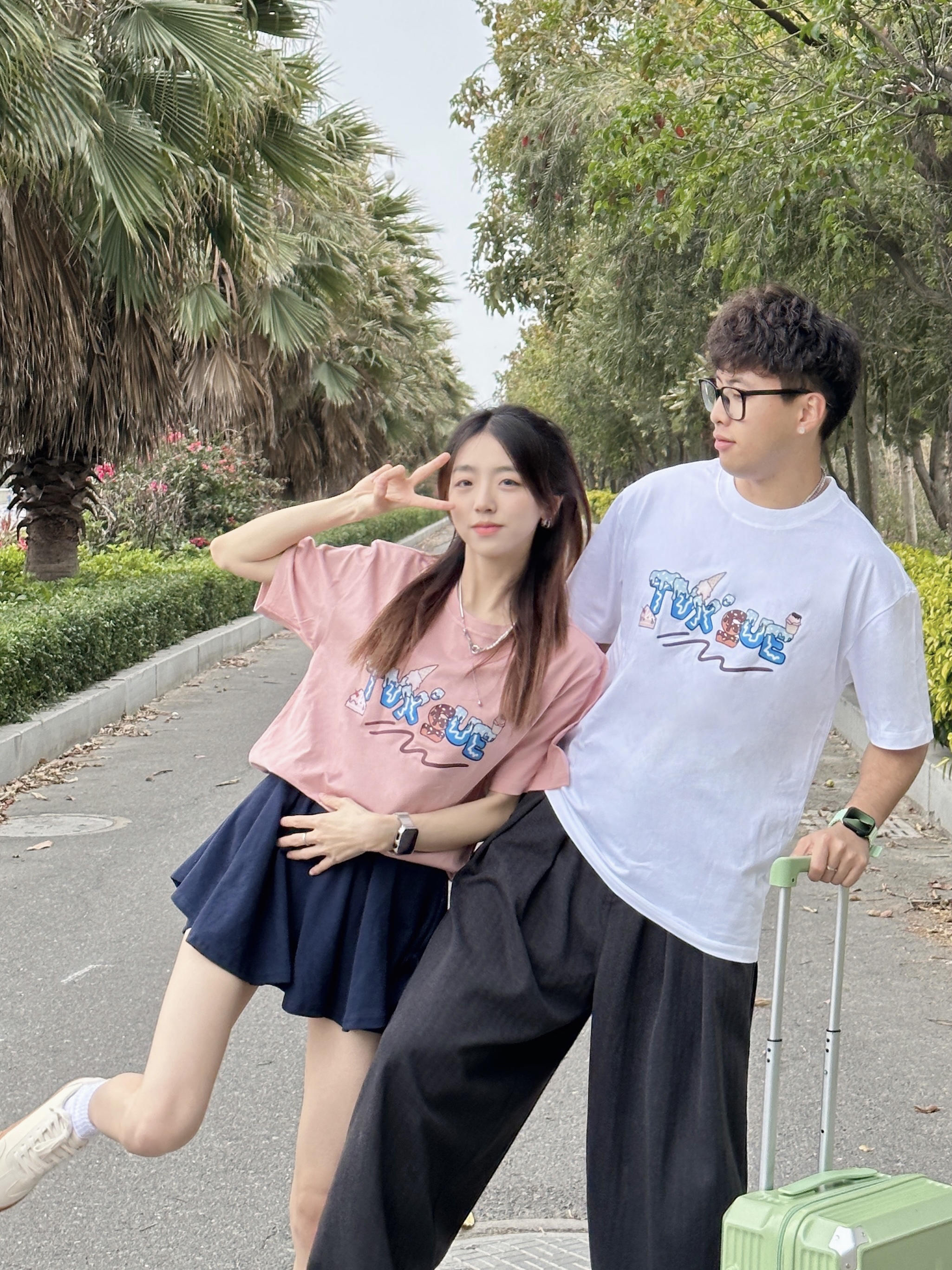 哈喽~小铭宗宗版夏日穿搭来咯~ 👧:168/44 m 👦:182/70 xl 白粉调调的情侣短袖!太适合清爽的夏天啦! 穿上就感觉很有爱呀,而且质地也很舒适~ 搭配🥑牛油果行李箱,出门旅行吸睛搭配✌️ 💡更重要的是,牛油果行李箱带有一个专属use口,不用再为充电问题烦恼啦! 👍还有超级贴心的装水杯的架子,随时想喝水直接拿起来就行啦!