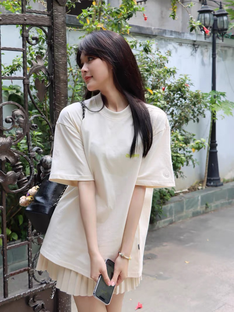 夏天出门的时候不用可以去打扮和搭配直接穿着一件百搭的T恤,就可以出门了,随便搭配一条短裤或者牛仔裤都很好看 而且这种纯白的T恤有一种温温柔柔的感觉,比较好搭配的一个款式 女孩子穿上真的也太甜美了!夏天穿起来真的会超好看 (图源来自网络)