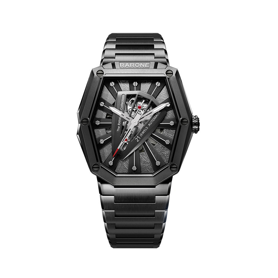 本篇笔记关联了RARONE/雷诺 骑士系列 潮酷精钢硬派酒桶形硬朗镂空防水自动机械男表 黑铠甲等商品,为用户提供真实的使用体验和购买参考。