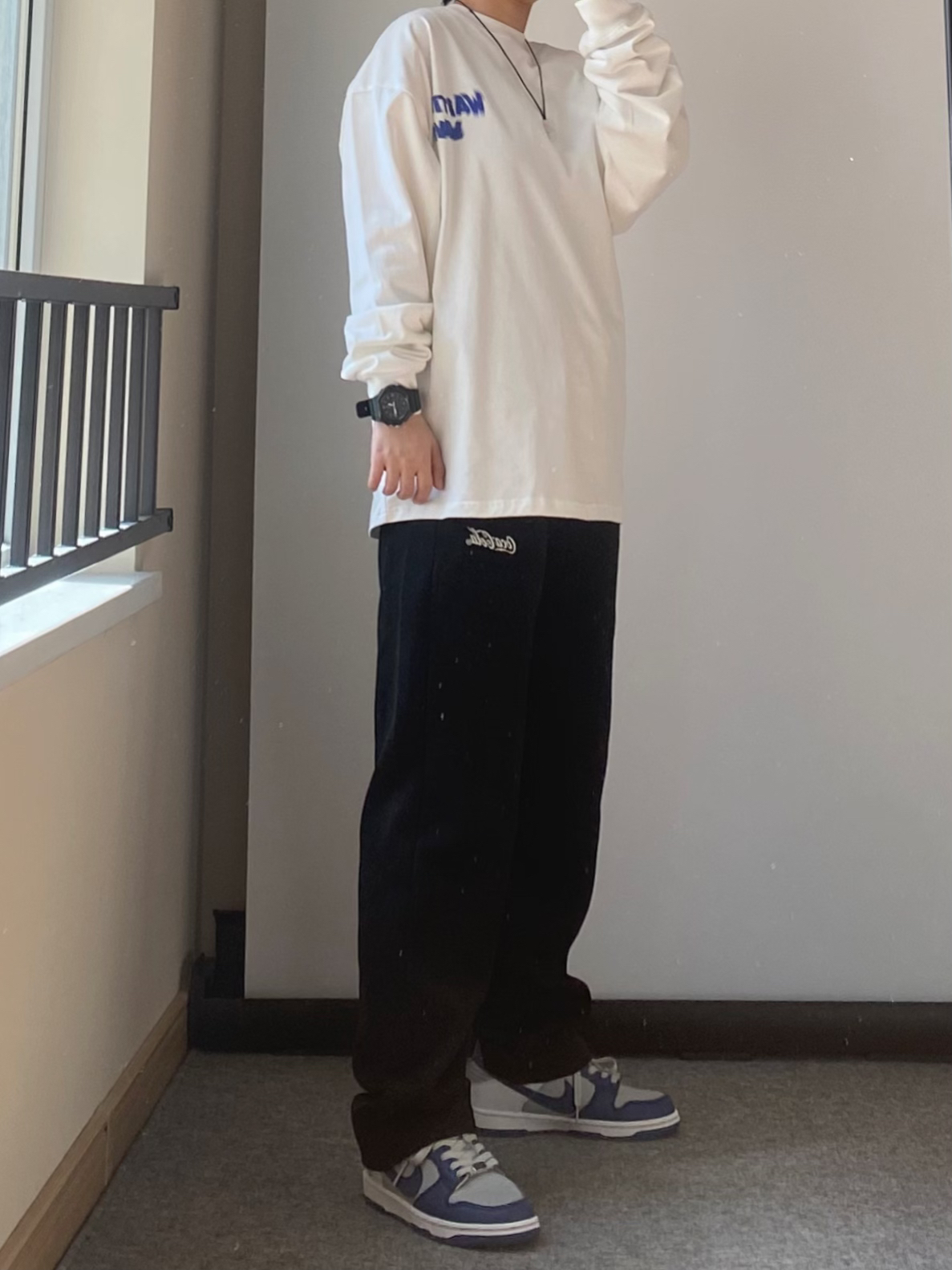 春天太适合穿这种长袖T恤啦~ 前身简单的蓝色字母印花 背后抓眼球的大印花设计 不是特别薄的那种面料有一定的厚度 ⌚️SKMEI时刻美大岳丸系列石英表 黑色春夏男生佩戴超级 COOL 金属表盘十树脂表带的配置 上手很舒服 搭配一条百搭的黑色直筒休闲裤 就可以出街啦~ 👔Waitingwave候浪 👖Coca Cola