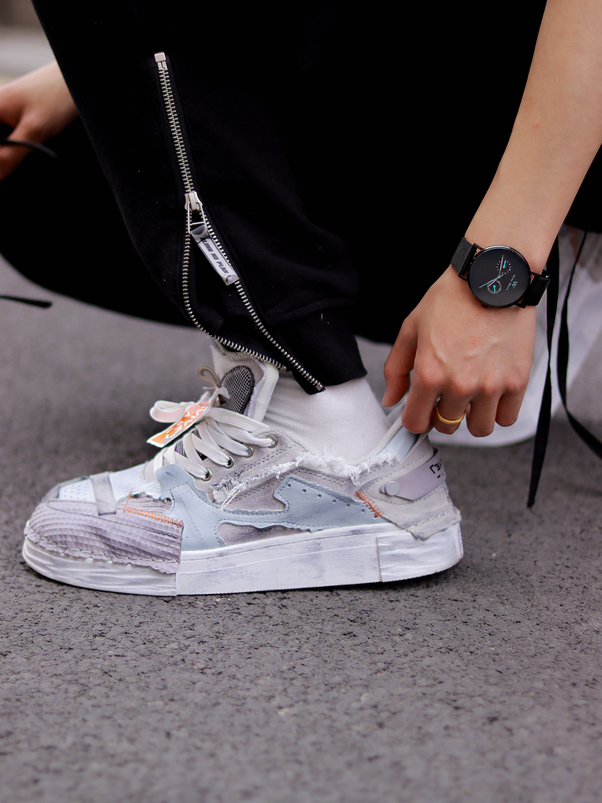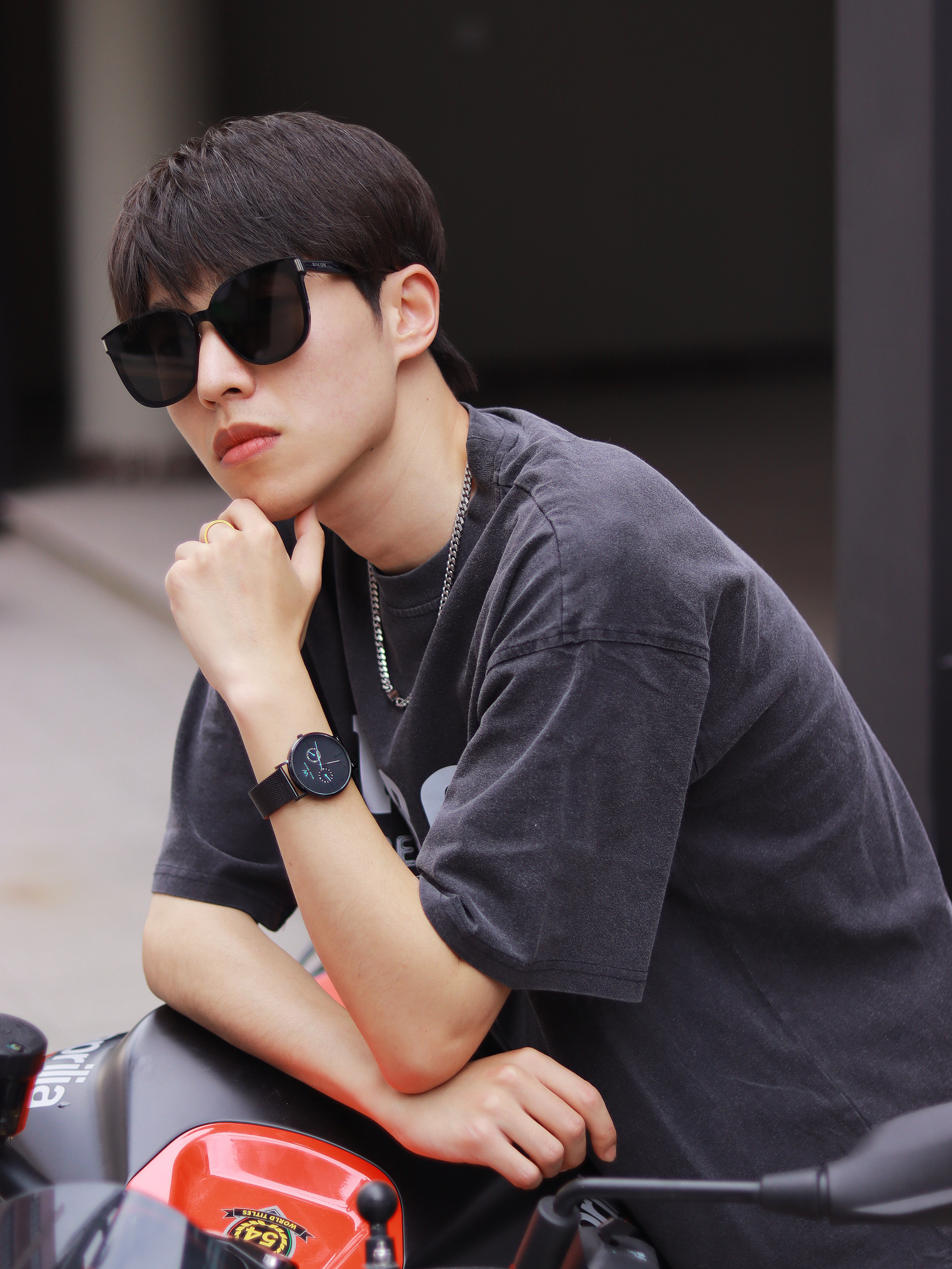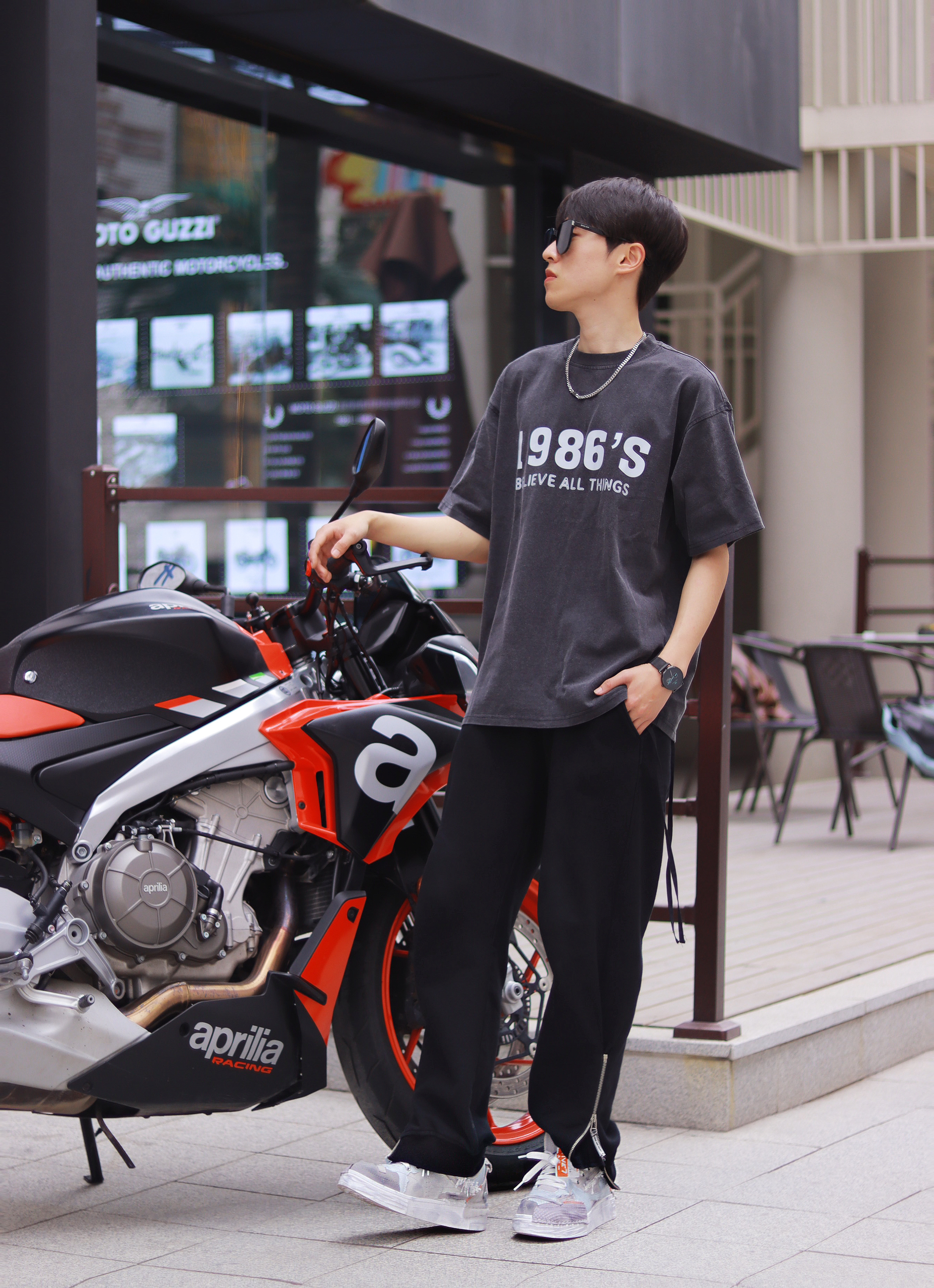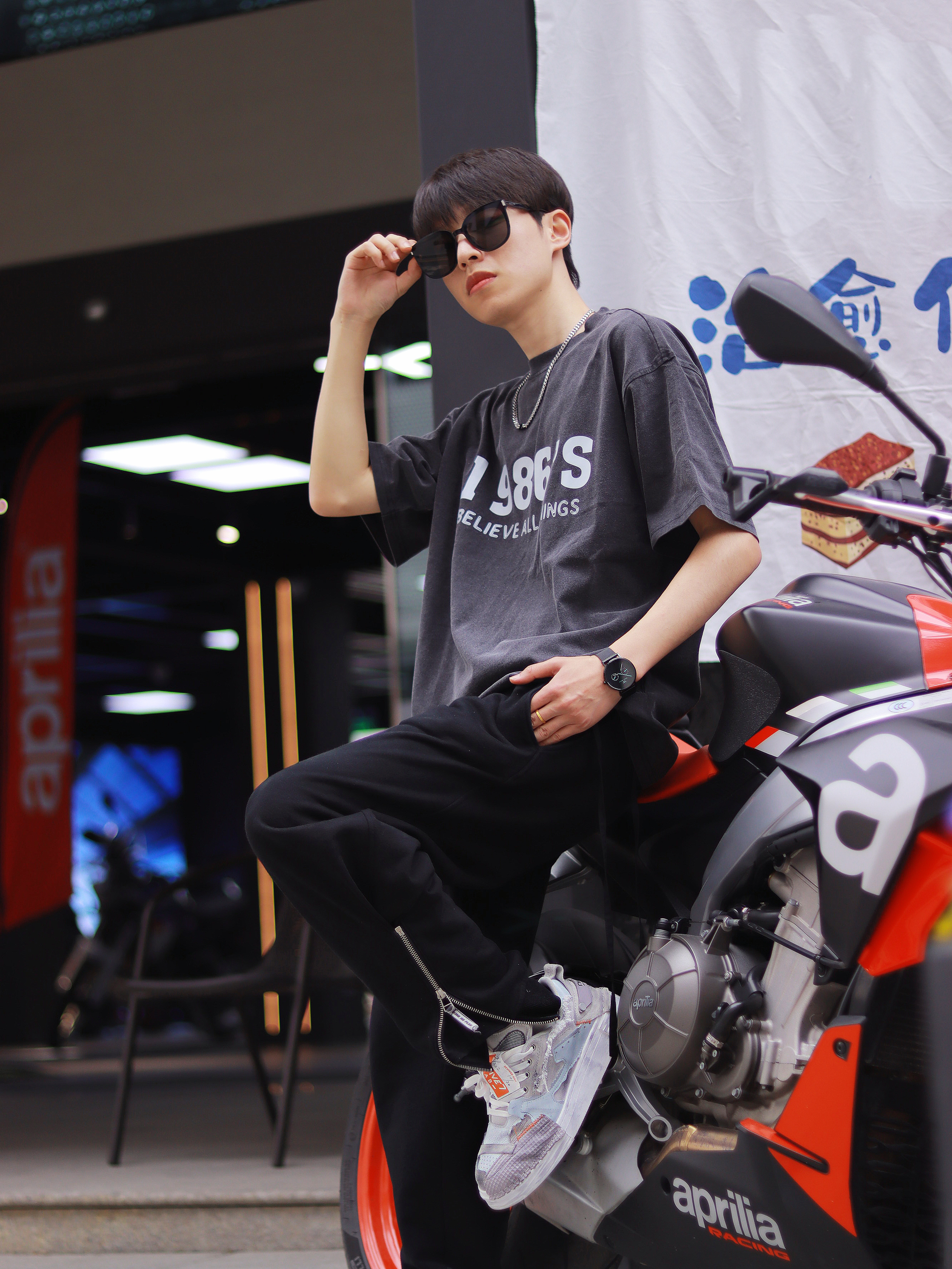 这种基础款混搭真的就是为男高两声定做的好吗? 简约T恤搭配休闲长裤清爽十足!解构风的灰色鞋子是它的运动时尚源泉,拼接撞色的鞋面设计个性感很浓郁,加上防滑耐磨的大底和解构风元素的融合,真的承包我出街的时尚感了! - 个性的潮流腕表是日常搭配的灵魂。 极简风的表盘设计很有未来科技感,配上logo和纯色精钢编织表带,日常搭配的适配度超高的! - 最后就是我新入手的墨镜啦! 新款墨镜框架超大的,用的还是板...